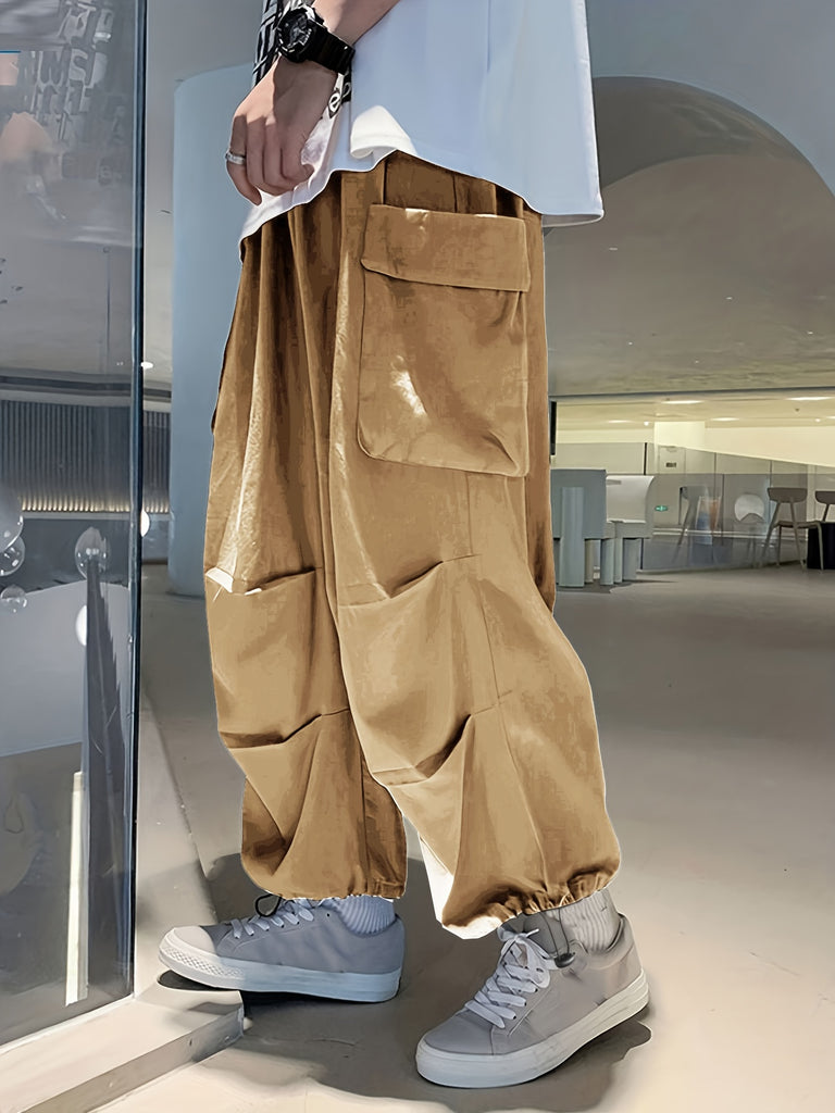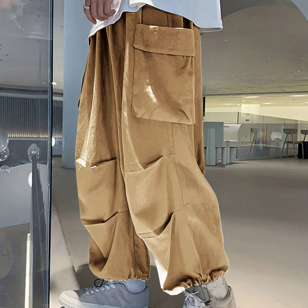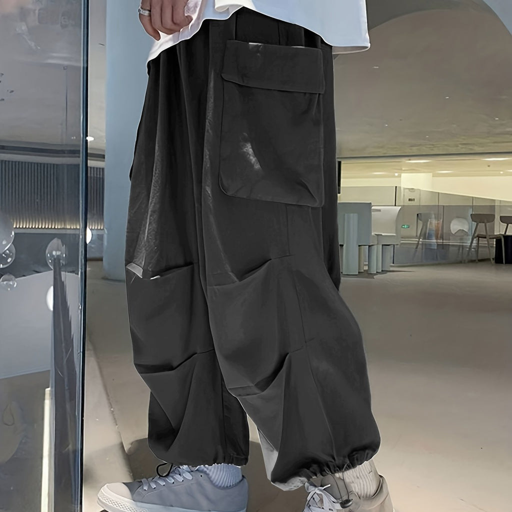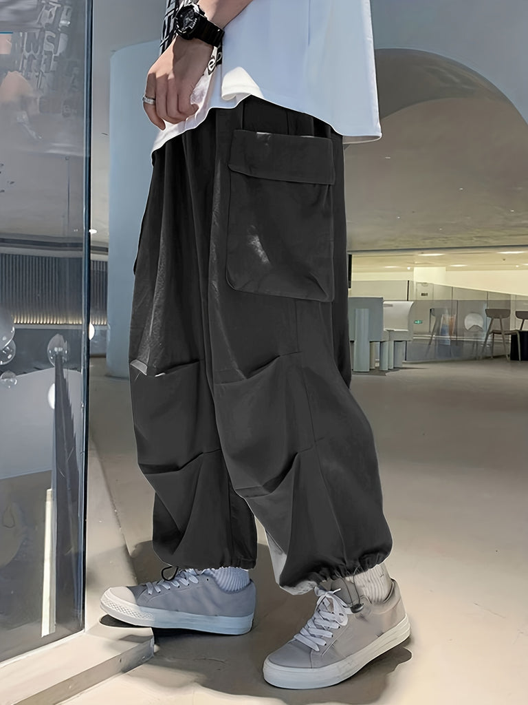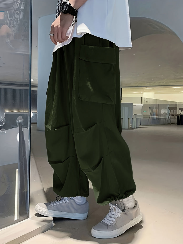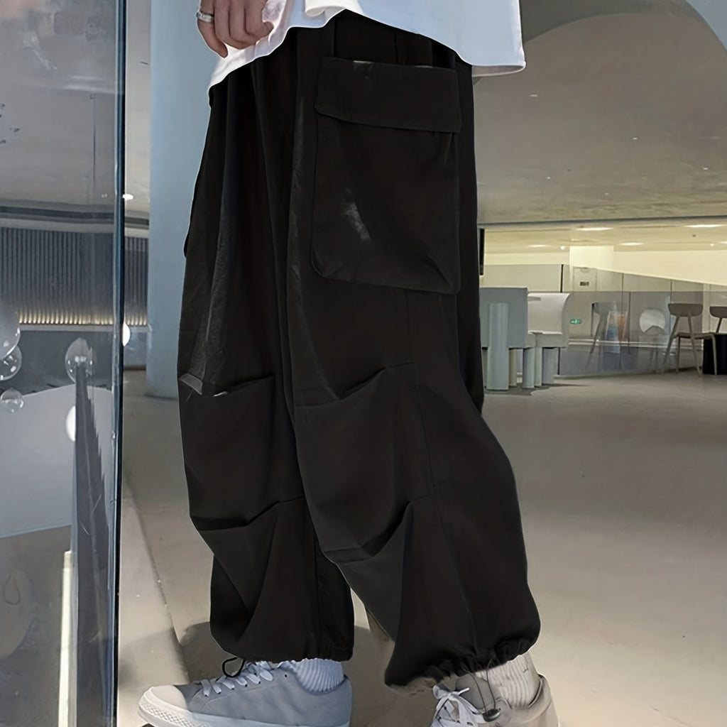 kkboxly Men's Loose Fit Multi Pocket Trousers, Casual Street Style Baggy Pants