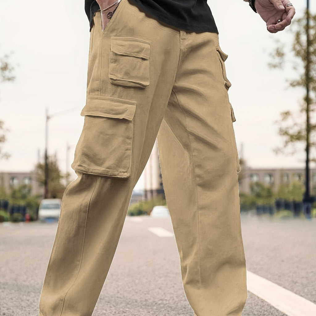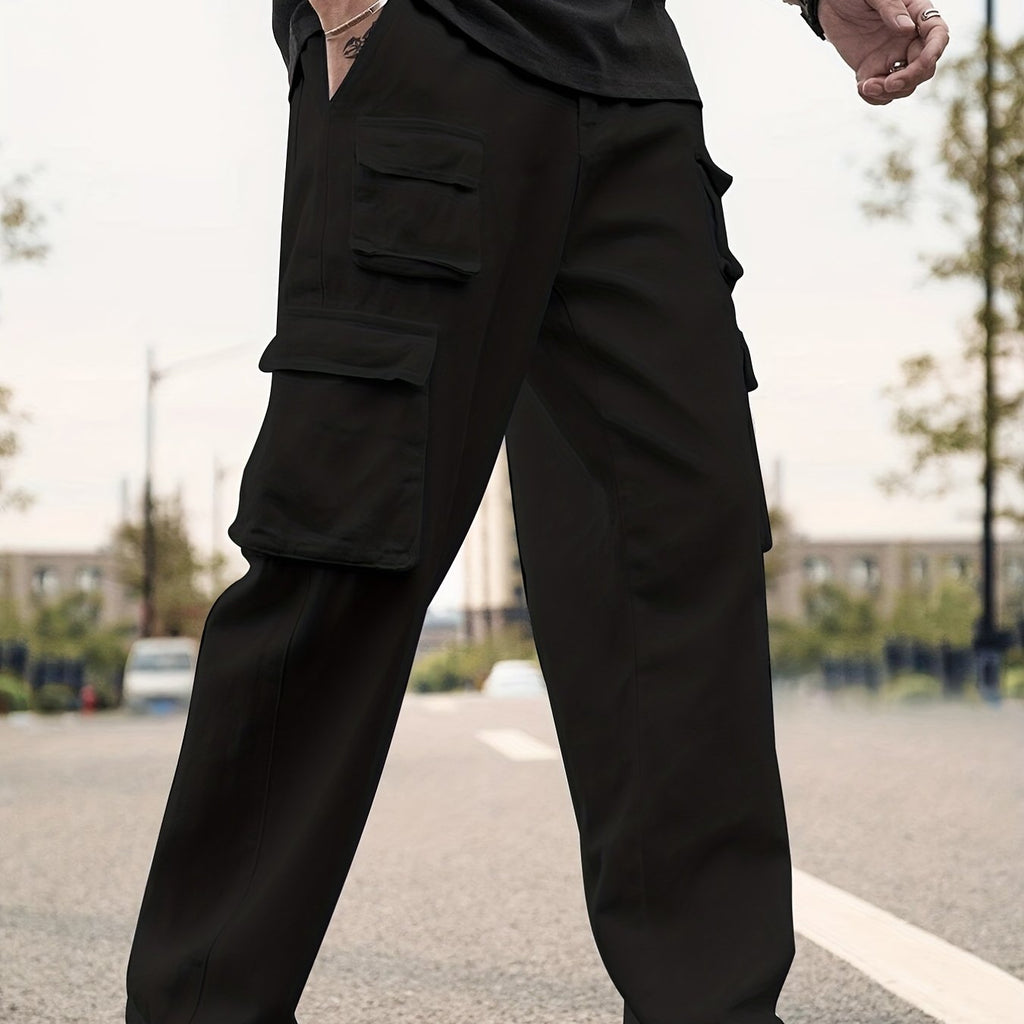 kkboxly Men's Multi Flap Pocket Cargo Pants, Loose Trendy Pants