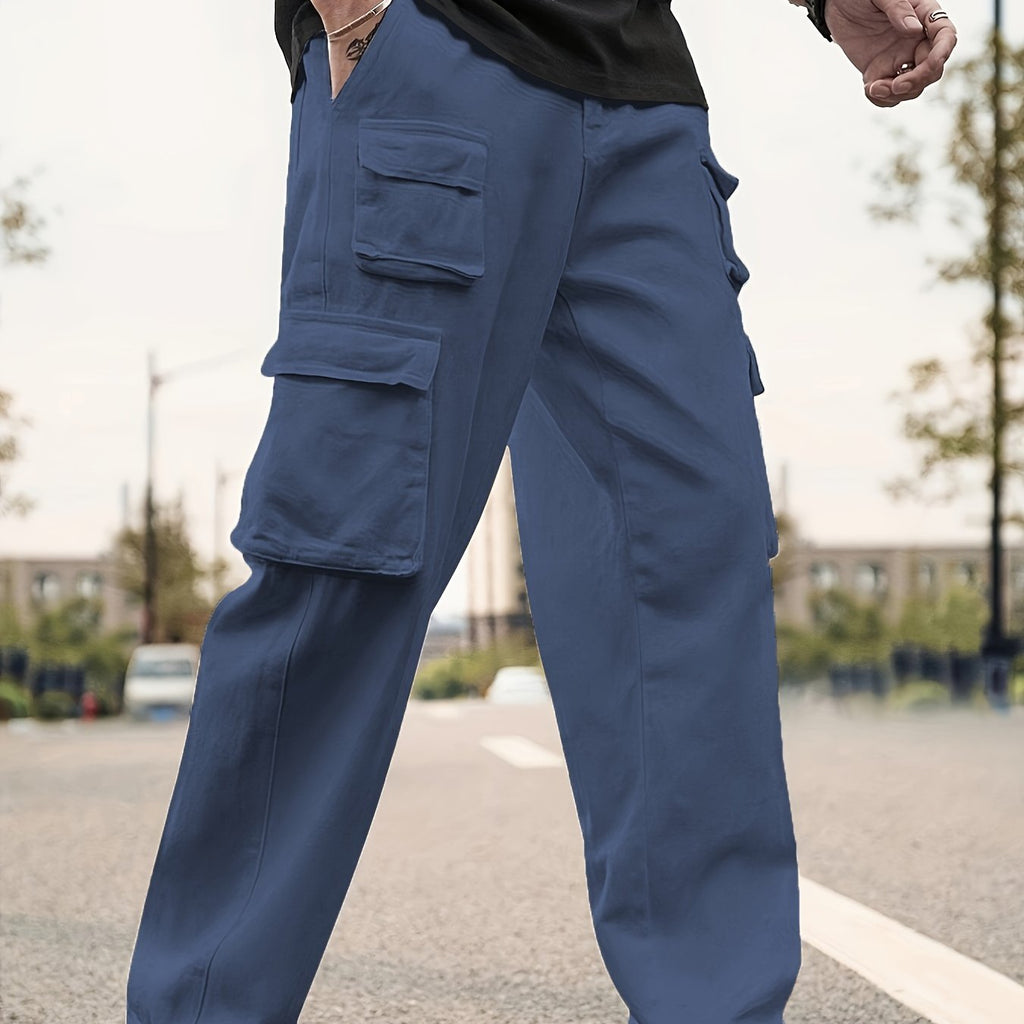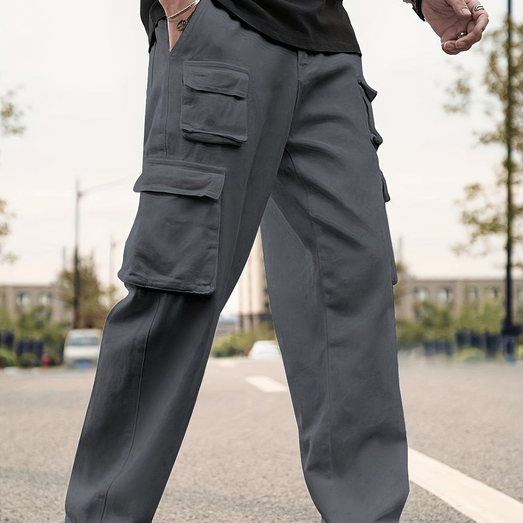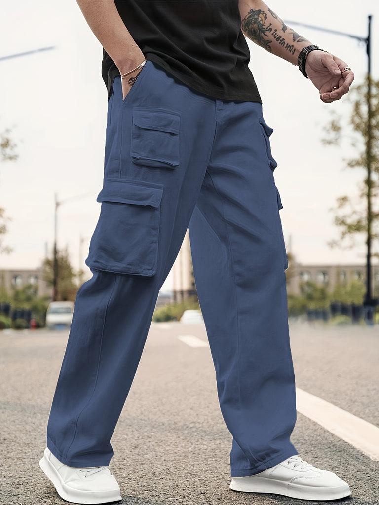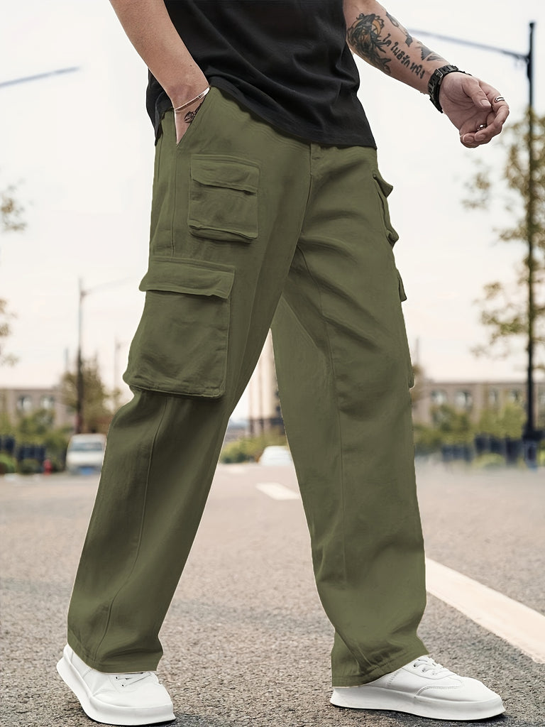 kkboxly Men's Multi Flap Pocket Cargo Pants, Loose Trendy Pants