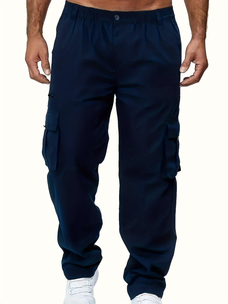 kkboxly Men's Multi Pocket Loose Fit Straight Leg Casual Trousers