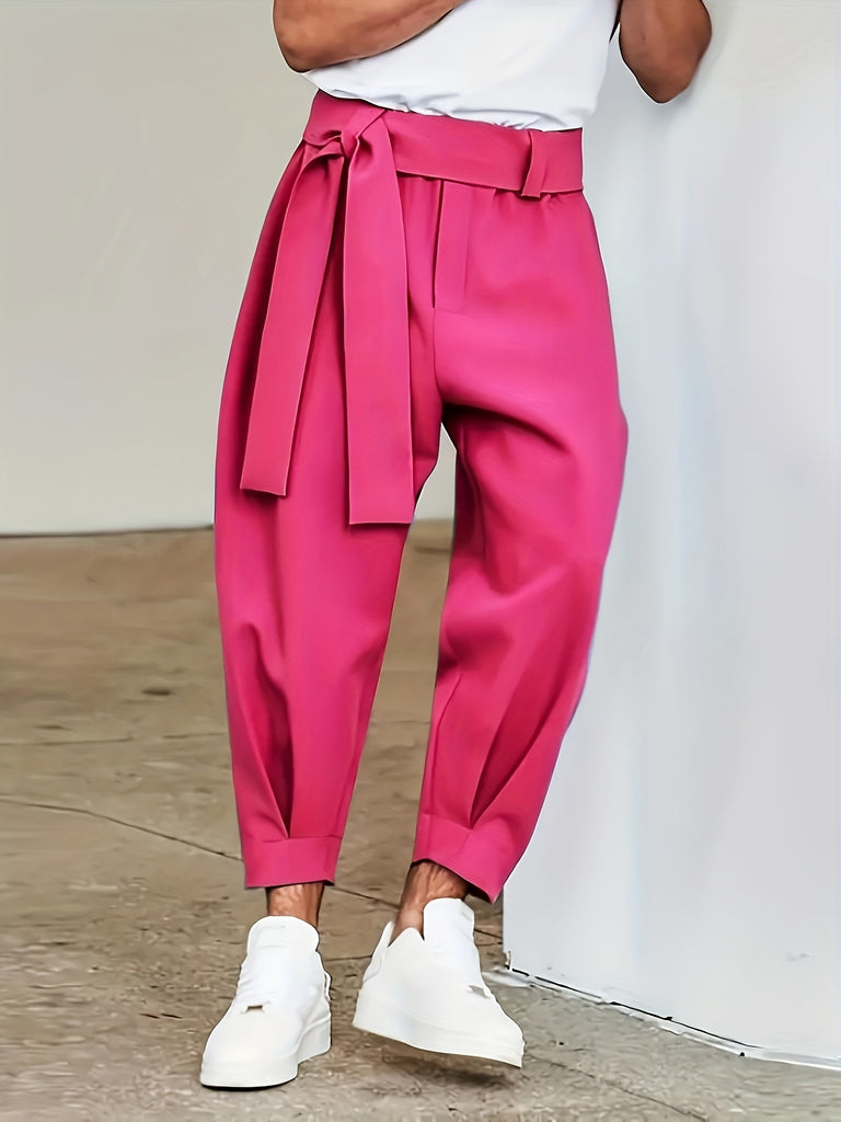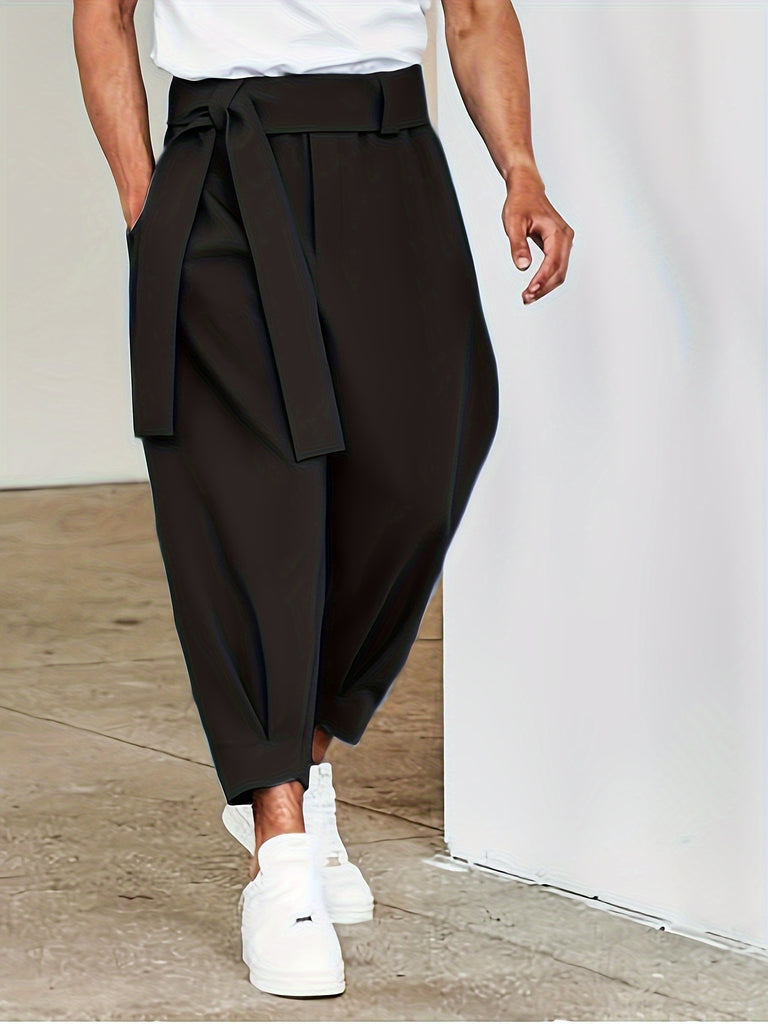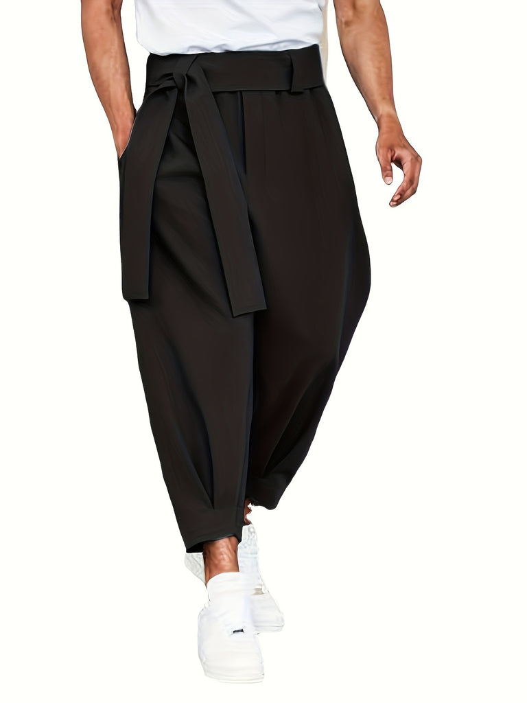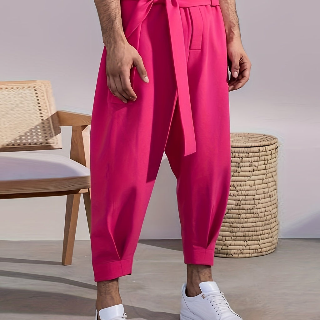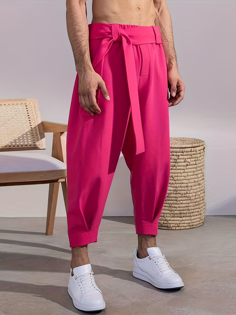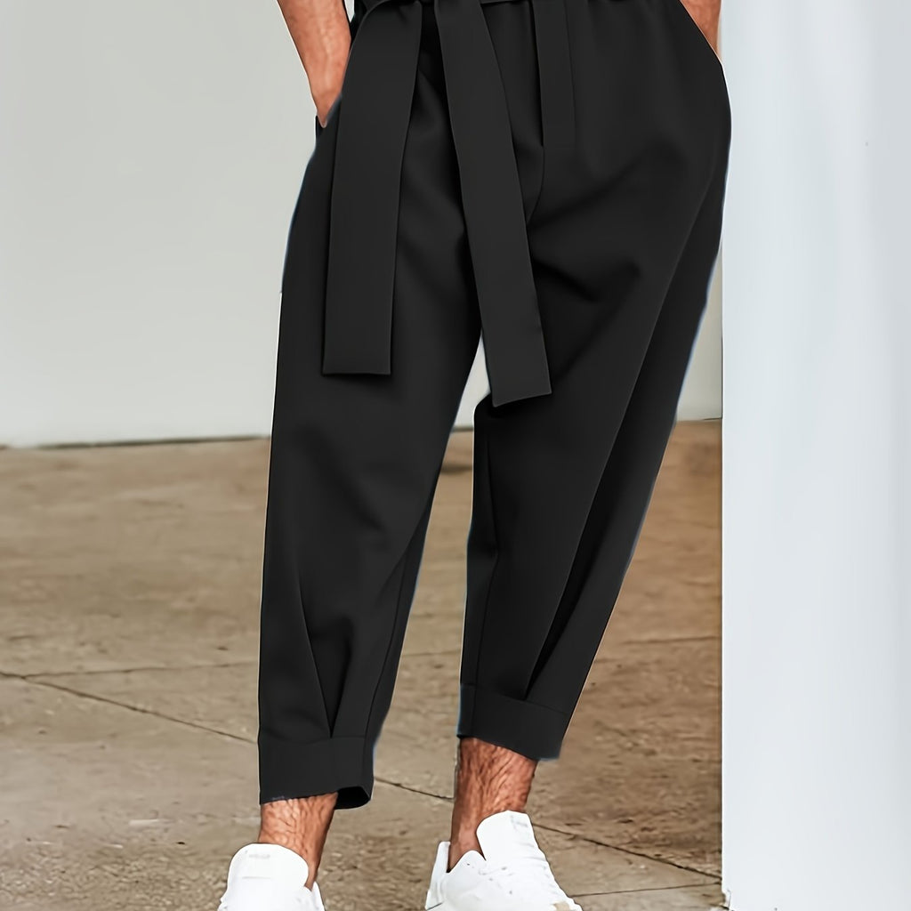 kkboxly Men's Solid Color Cropped Pants, Waistband Casual Comfy Loose Pants For Autumn