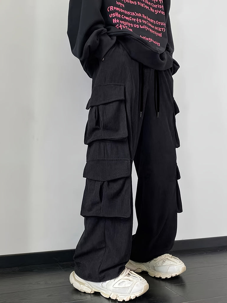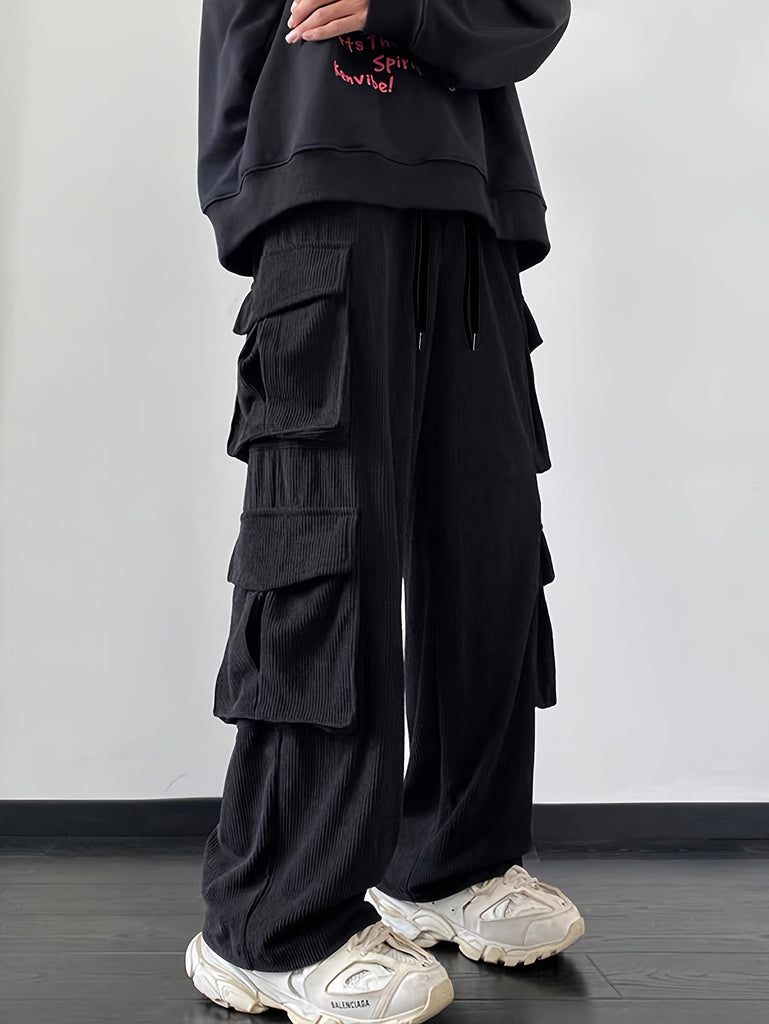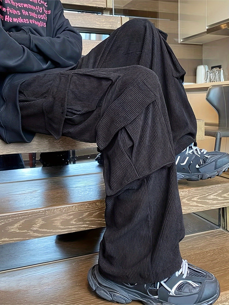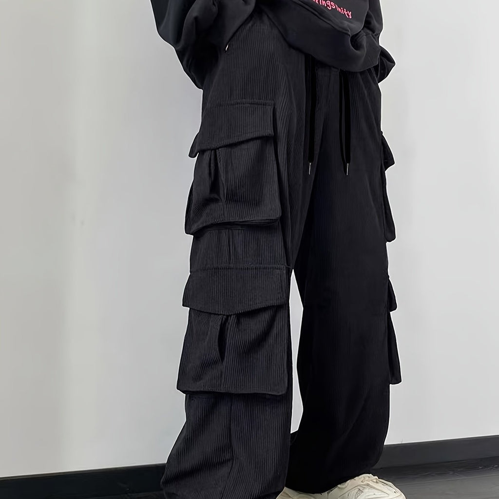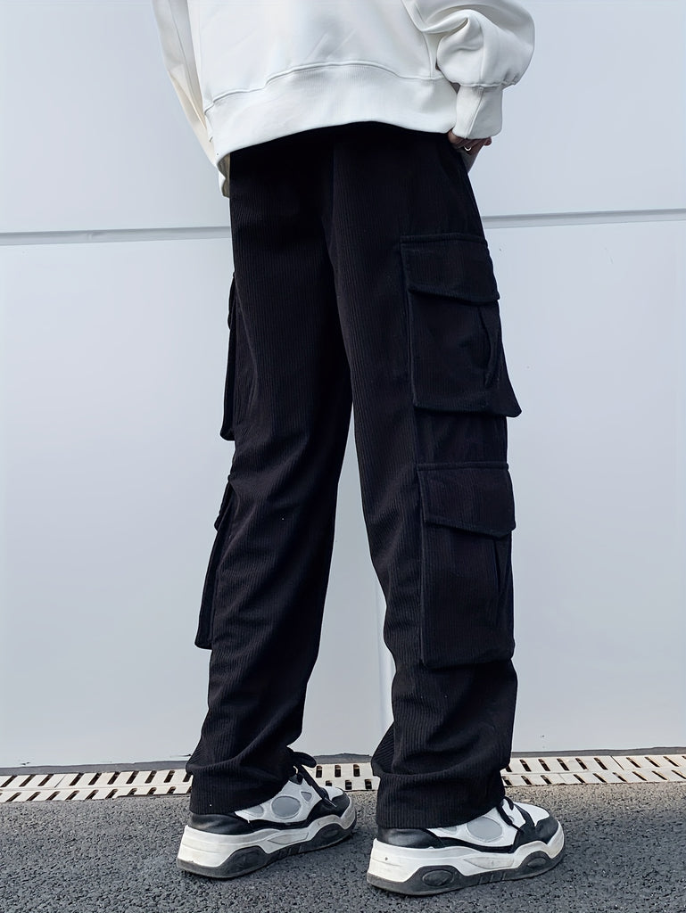 kkboxly Men's Solid Pants With Multi Pockets, Comfy Casual Street Style Trousers For Men's Outdoor Activities