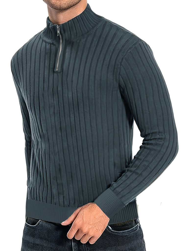 kkboxly Men's Stand Collar Solid Knit Sweater , Men's Casual Lapel Slightly Stretch V-Neck Pullover Sweater For Men Winter Fall