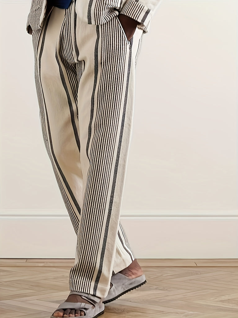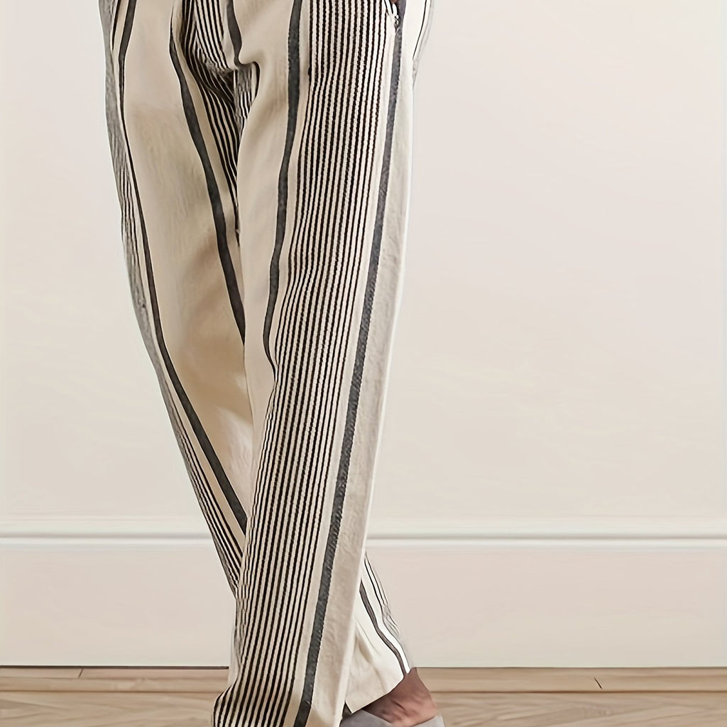 kkboxly Men's Striped Casual Pants, Comfy Straight Leg Trousers