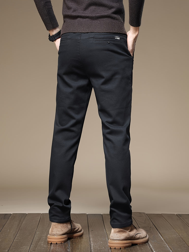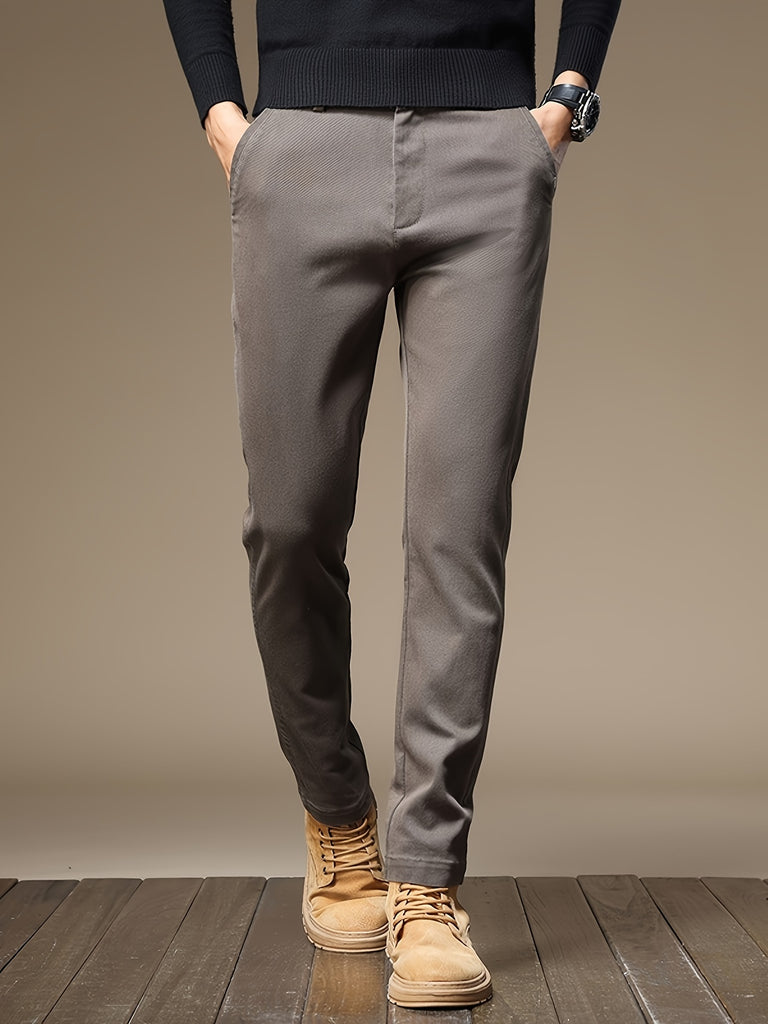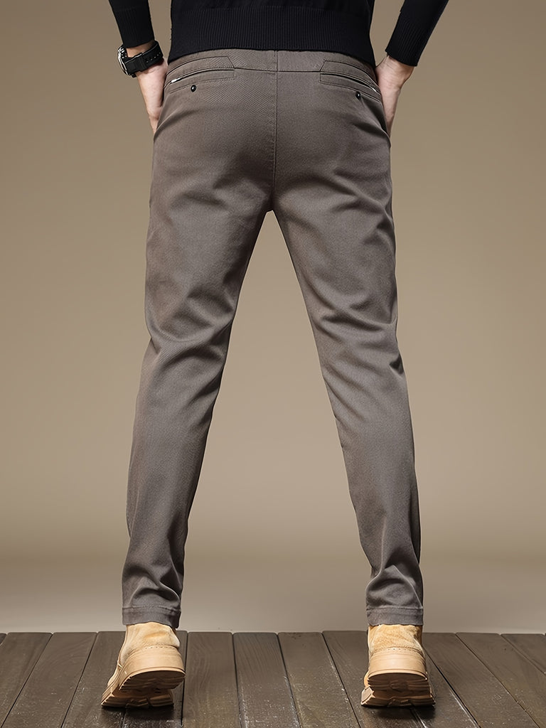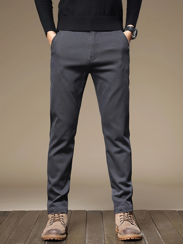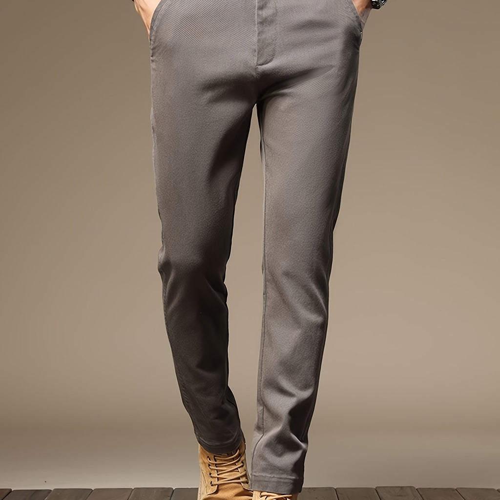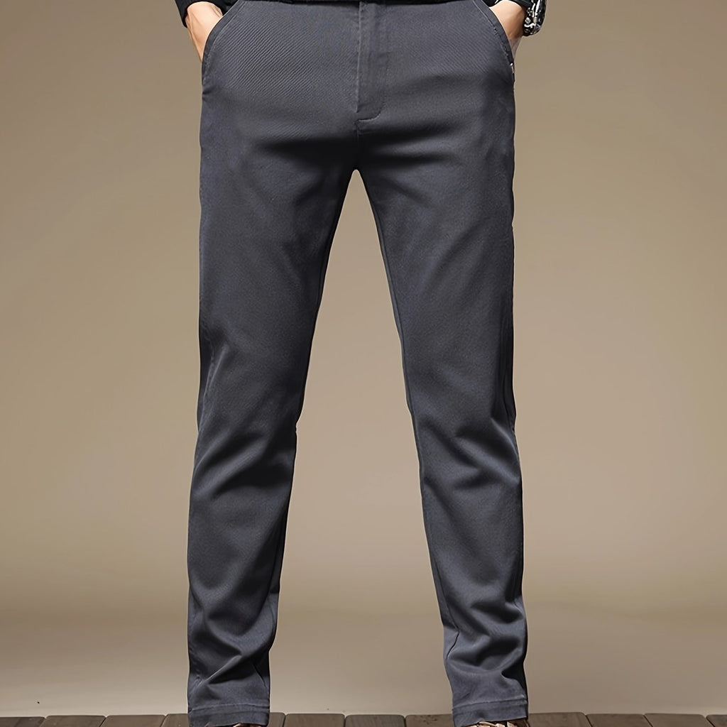 kkboxly Men's Stylish Comfy Solid Denim Trousers With Pockets, Causal Breathable Slim-fit Jeans For City Walk Street Hanging Outdoor Activities