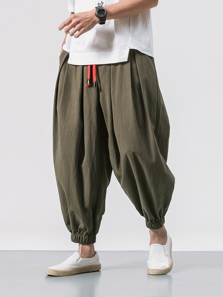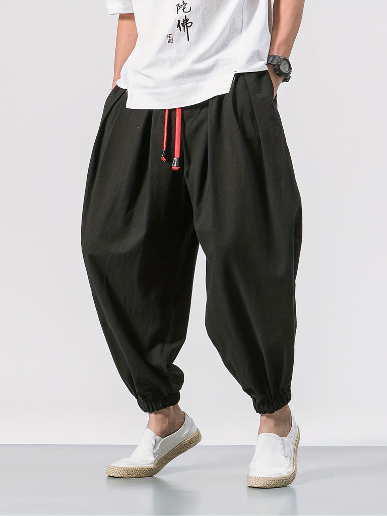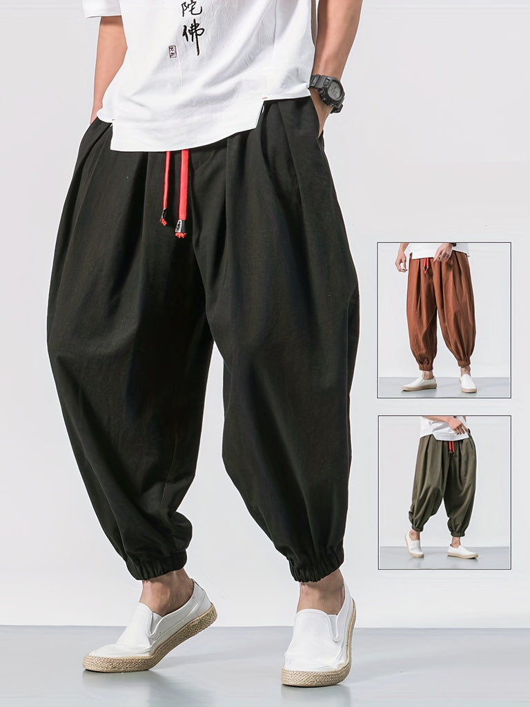 kkboxly Men's Stylish Harem Pants, Casual Cotton Drawstring Hip Hop Loose Pants For Outdoor, Men's Clothing