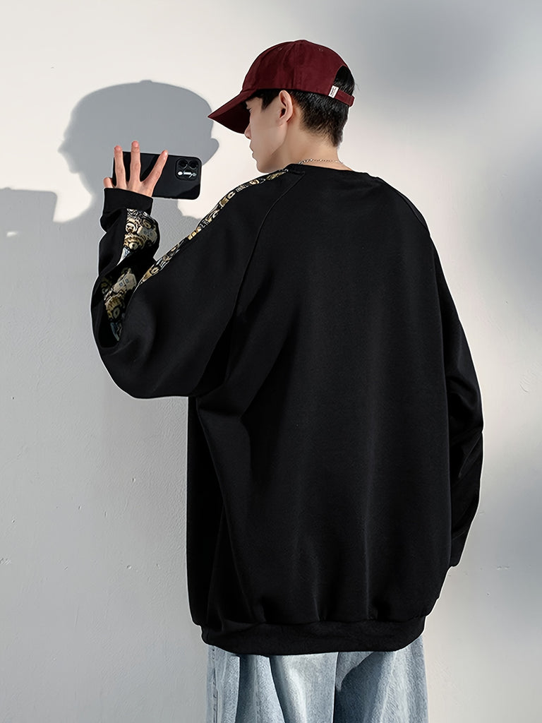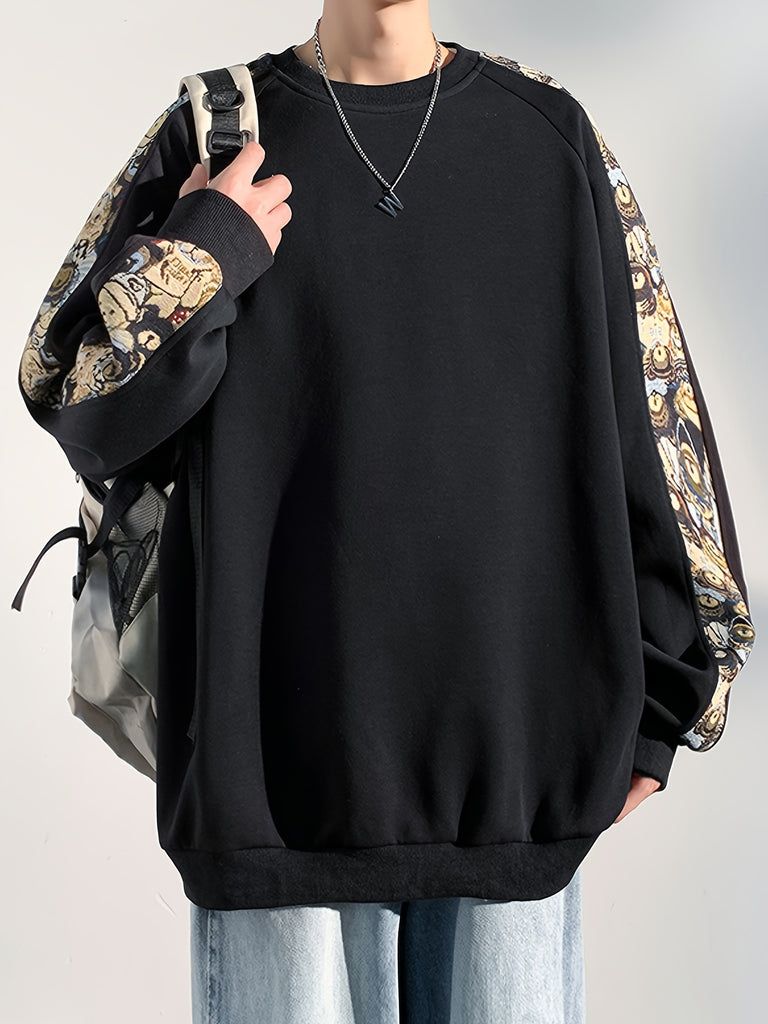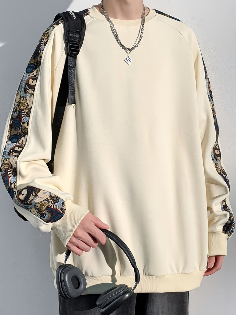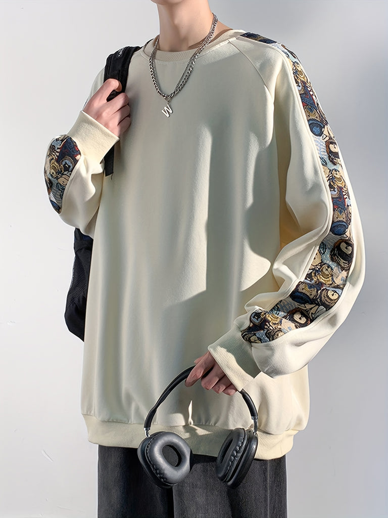 kkboxly Men's Stylish Loose Bear Pattern Comfy Sweatshirt, Casual Slightly Stretch Breathable Long Sleeve Crew Neck Top For City Walk Street Hanging Outdoor Activities