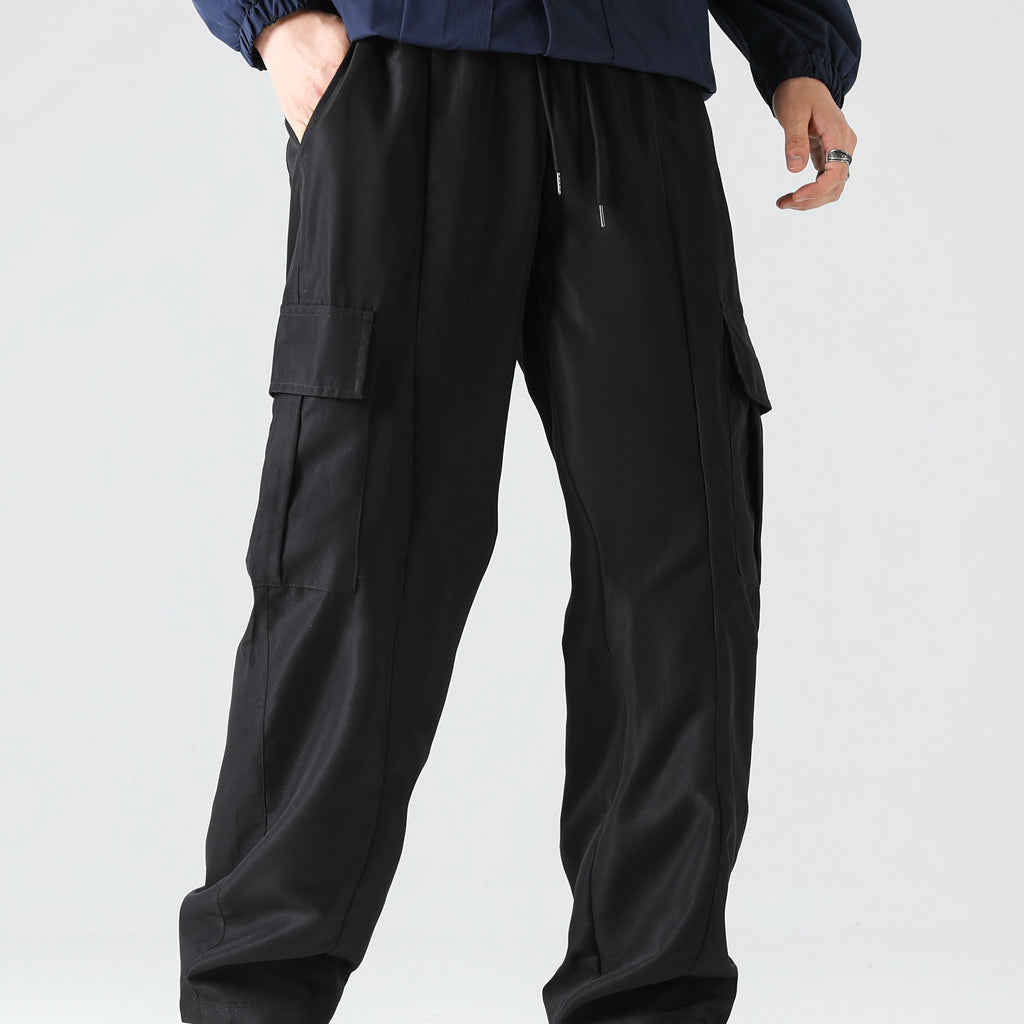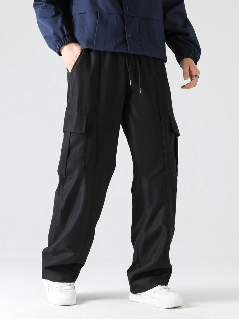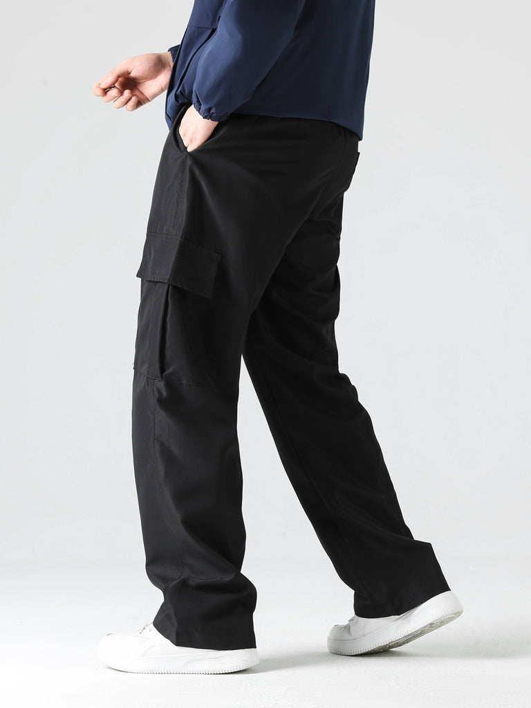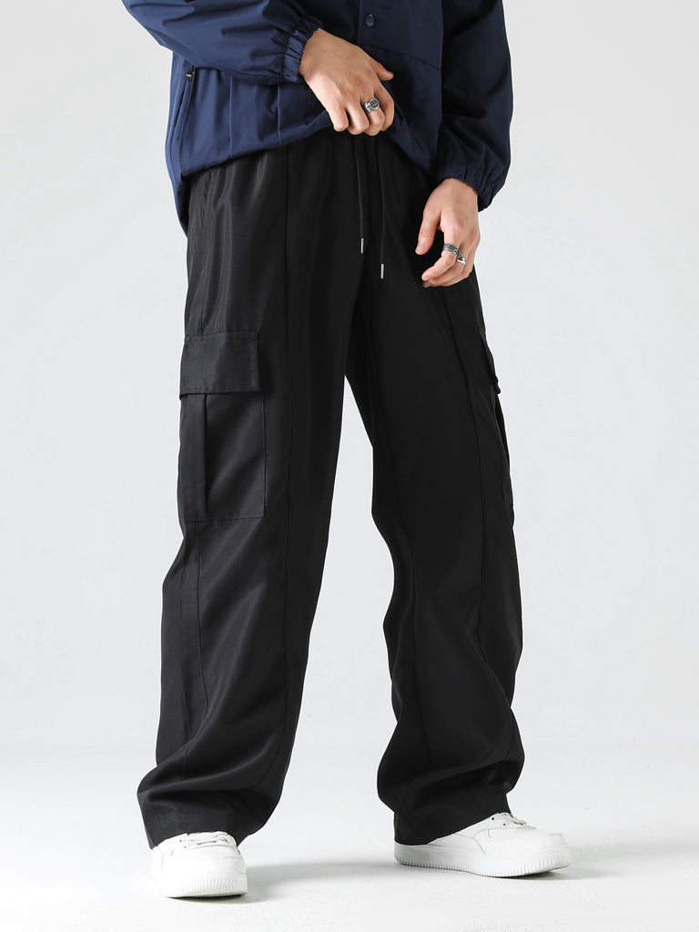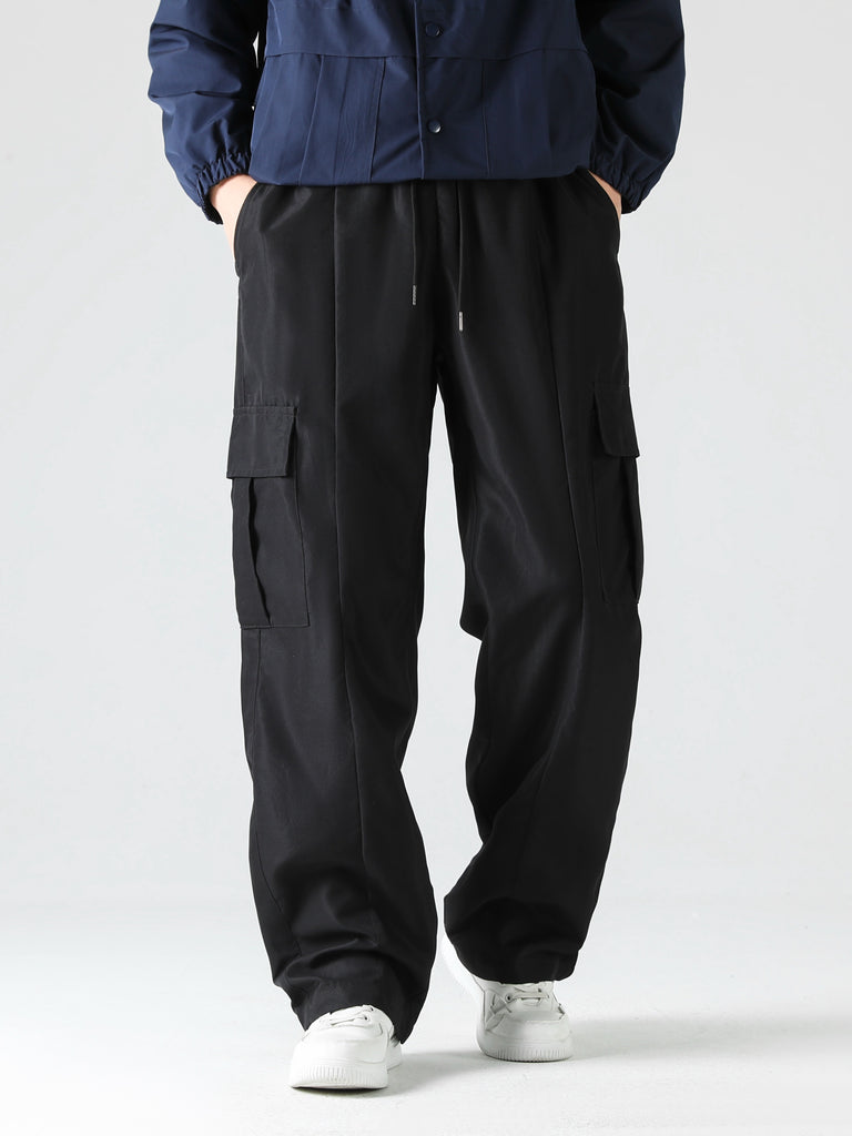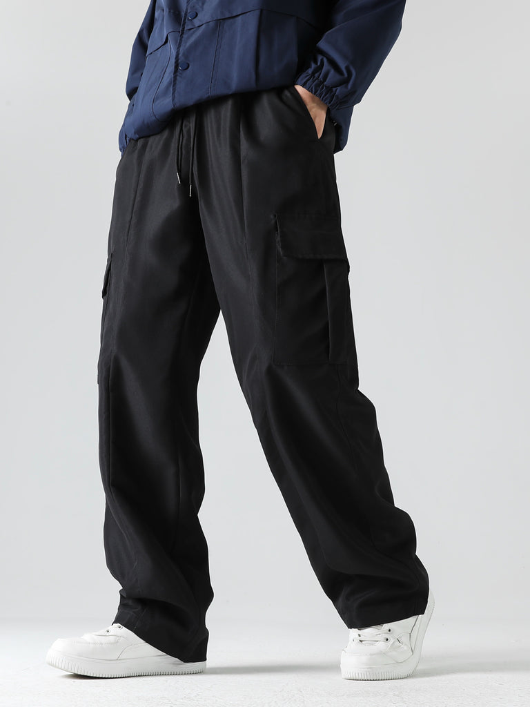 kkboxly Men's Stylish Vintage Style Loose Solid Cargo Pants With Pockets, Causal Breathable Comfy Straight Leg Drawstring Men's Bottom Clothing For City Walk Street Hanging Outdoor Activities