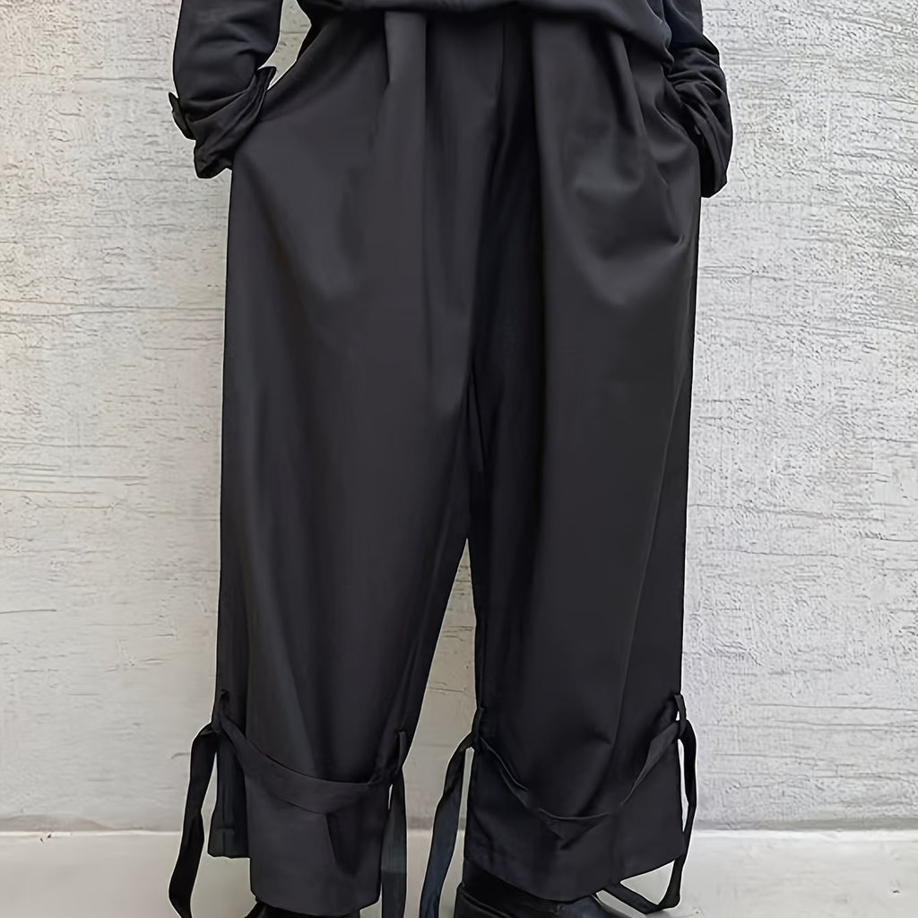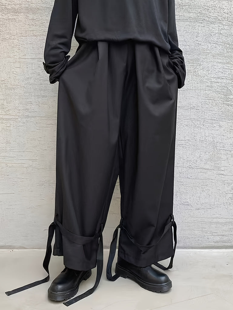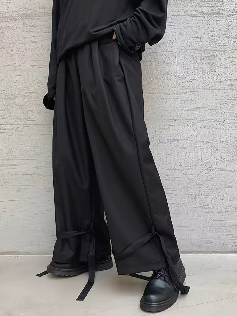 kkboxly Men's Stylish Wide Leg Pants, Casual Slightly Stretch Breathable Loose Pants For Outdoor