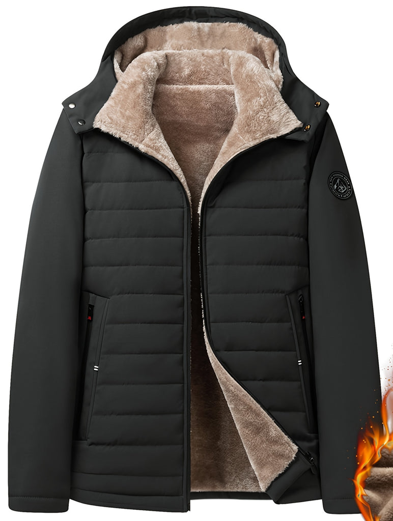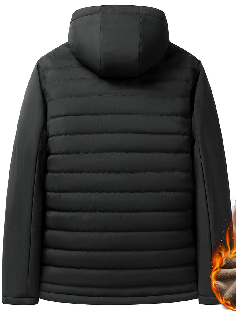 kkboxly Men's Warm Fleece Hooded Jacket, Casual Windproof Jacket With Zipper Pockets For Fall Winter