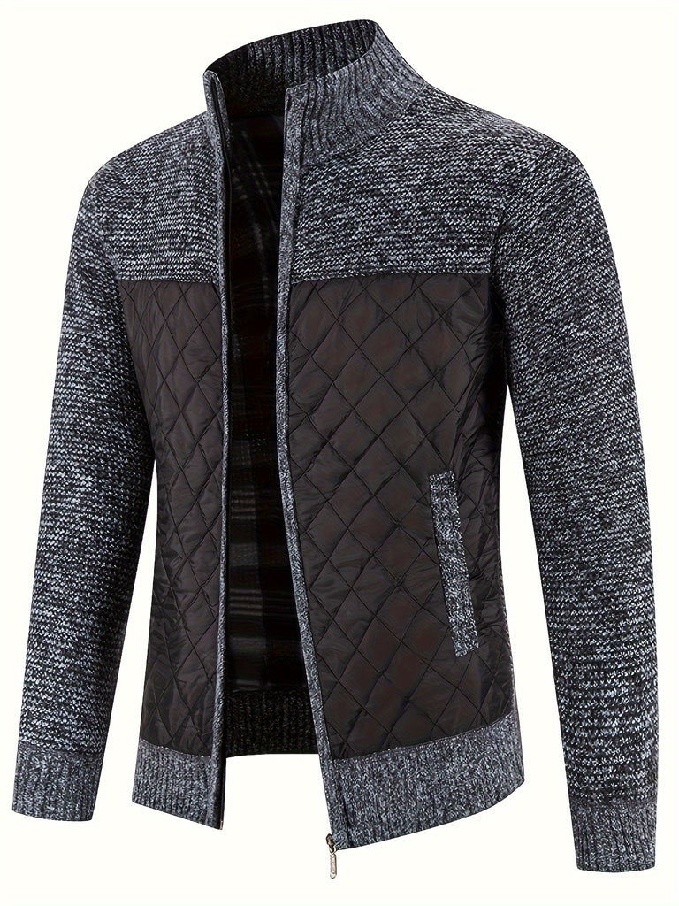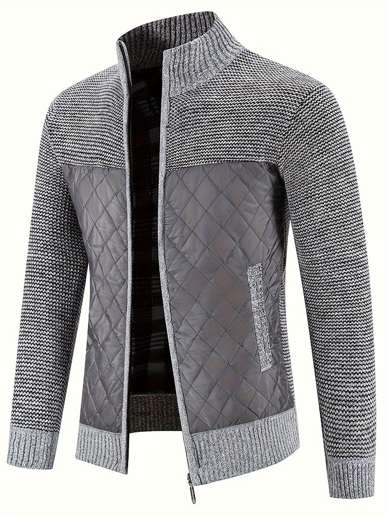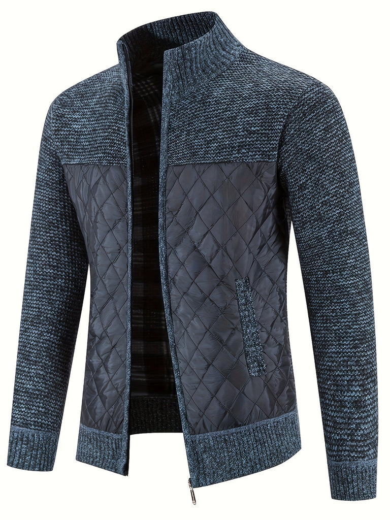 kkboxly Men's Warm Sweater Casual Jacket, Stand Collar Jacket Coat For Fall Winter