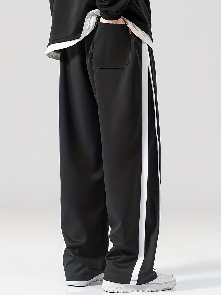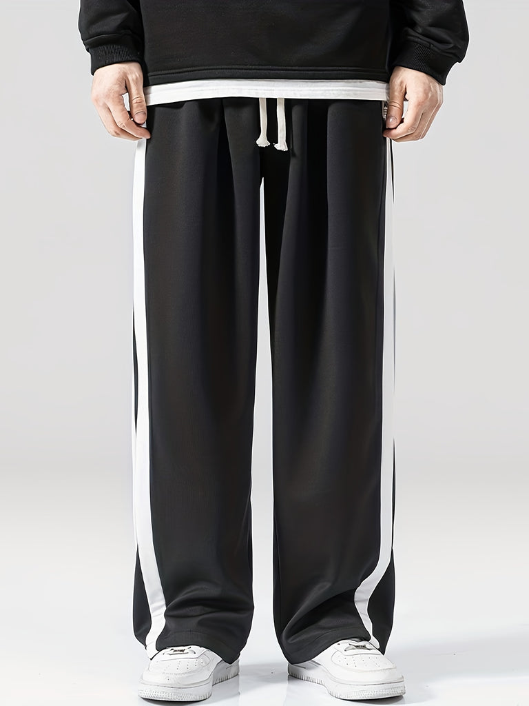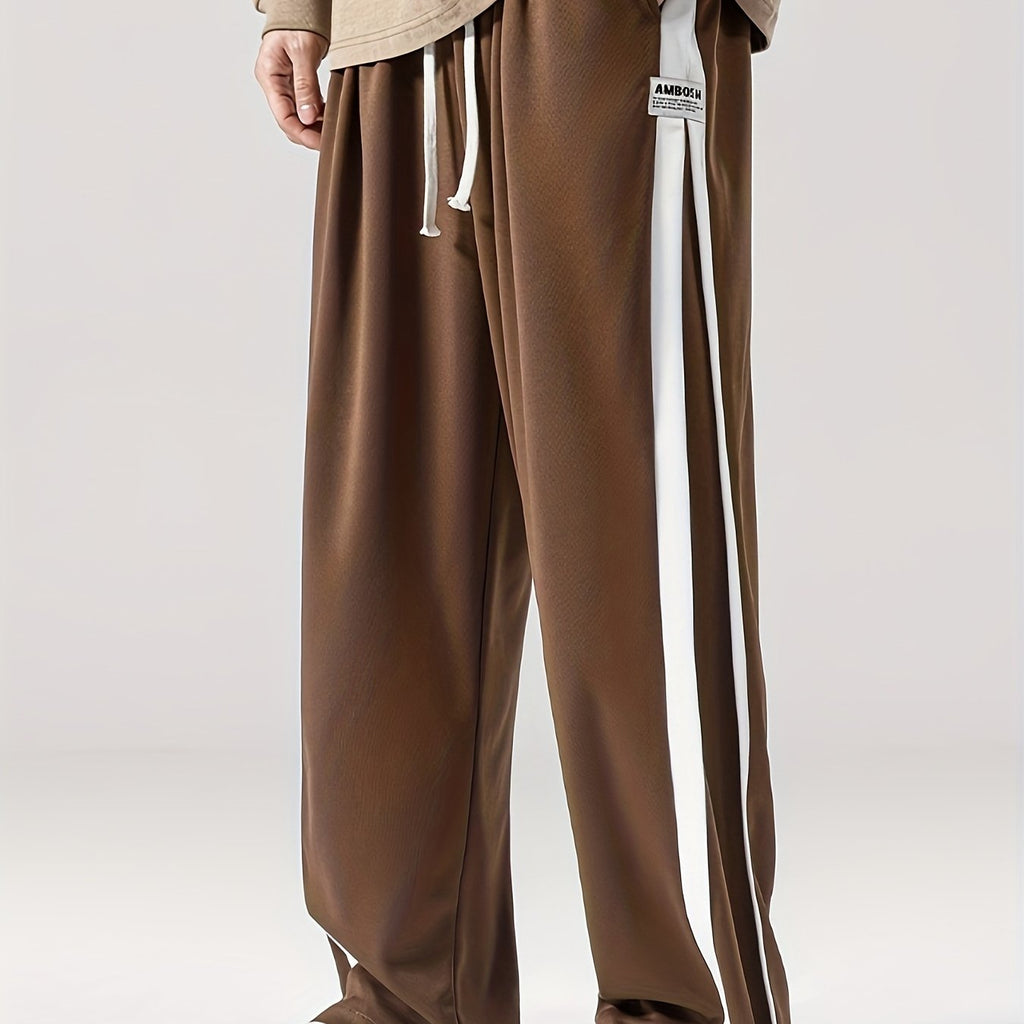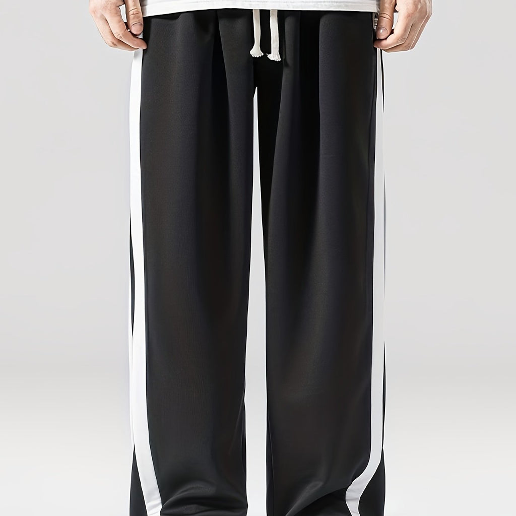 kkboxly Plus Size Men's Long Straight Pants, Contrast Color Pattern Print Oversized Loose Fit Pants, Casual Fashion Street Style Pants For Spring/autumn, Men's Clothing
