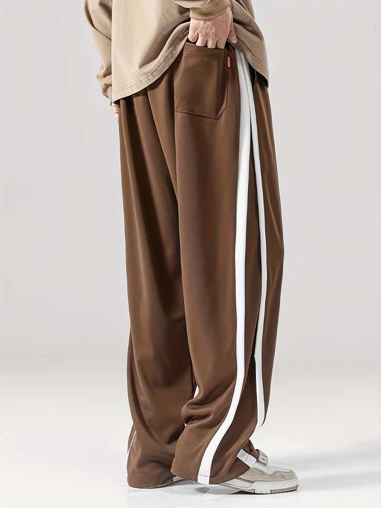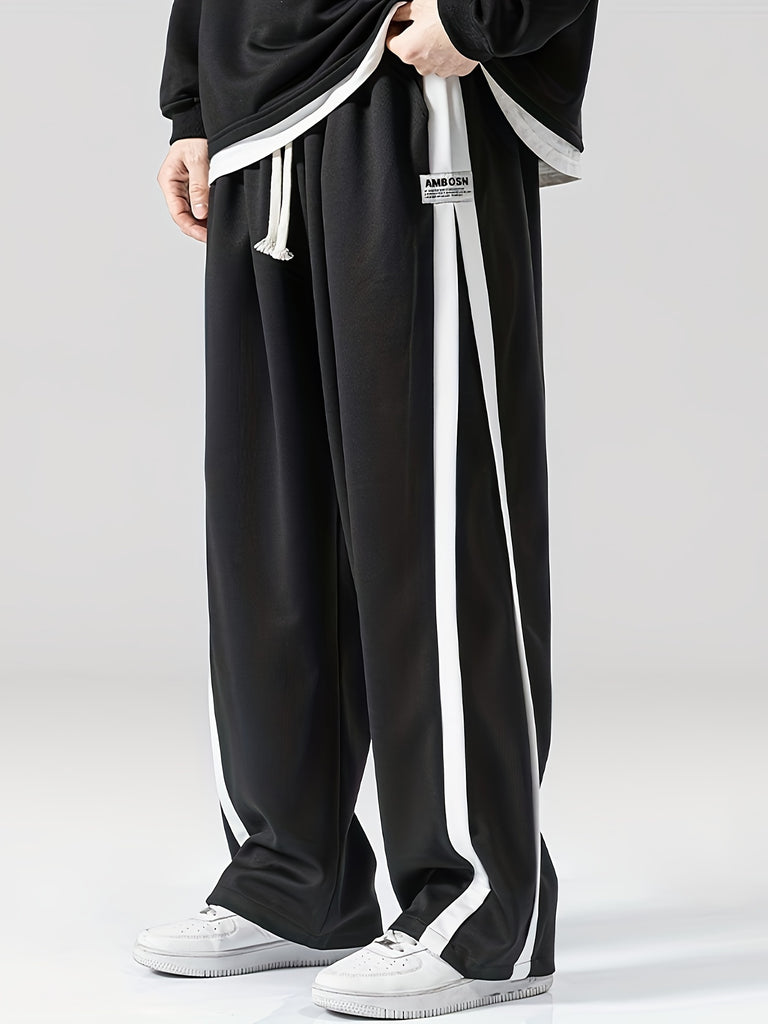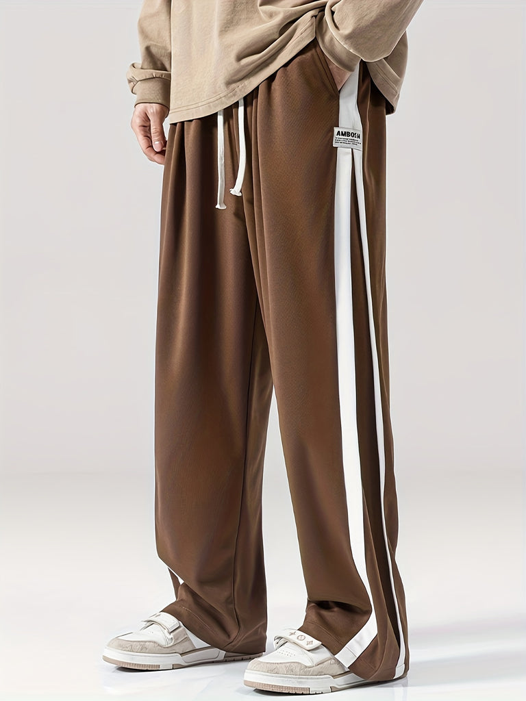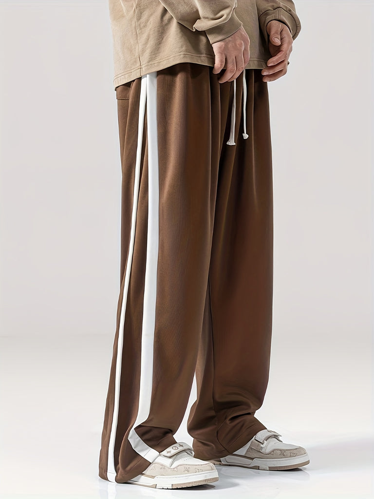 kkboxly Plus Size Men's Long Straight Pants, Contrast Color Pattern Print Oversized Loose Fit Pants, Casual Fashion Street Style Pants For Spring/autumn, Men's Clothing