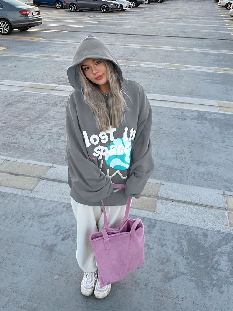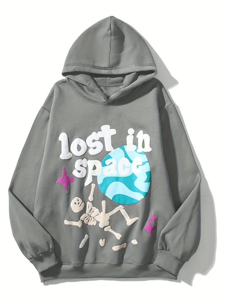 kkboxly Skeleton & Letter Pattern Hoodie, Casual Long Sleeve Hoodie Sweatshirt, Women's Clothing