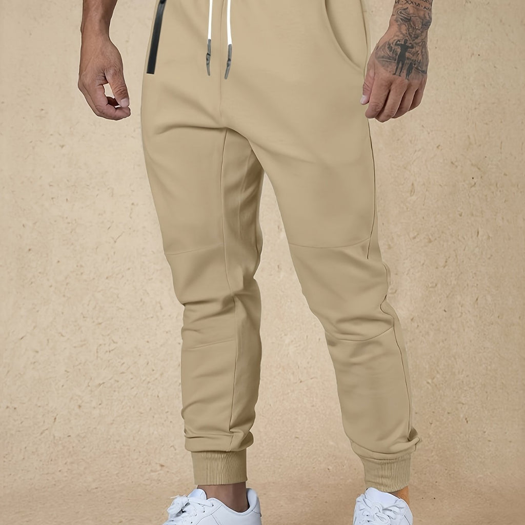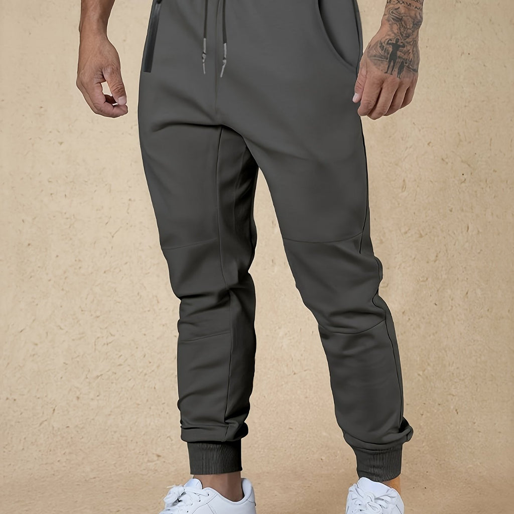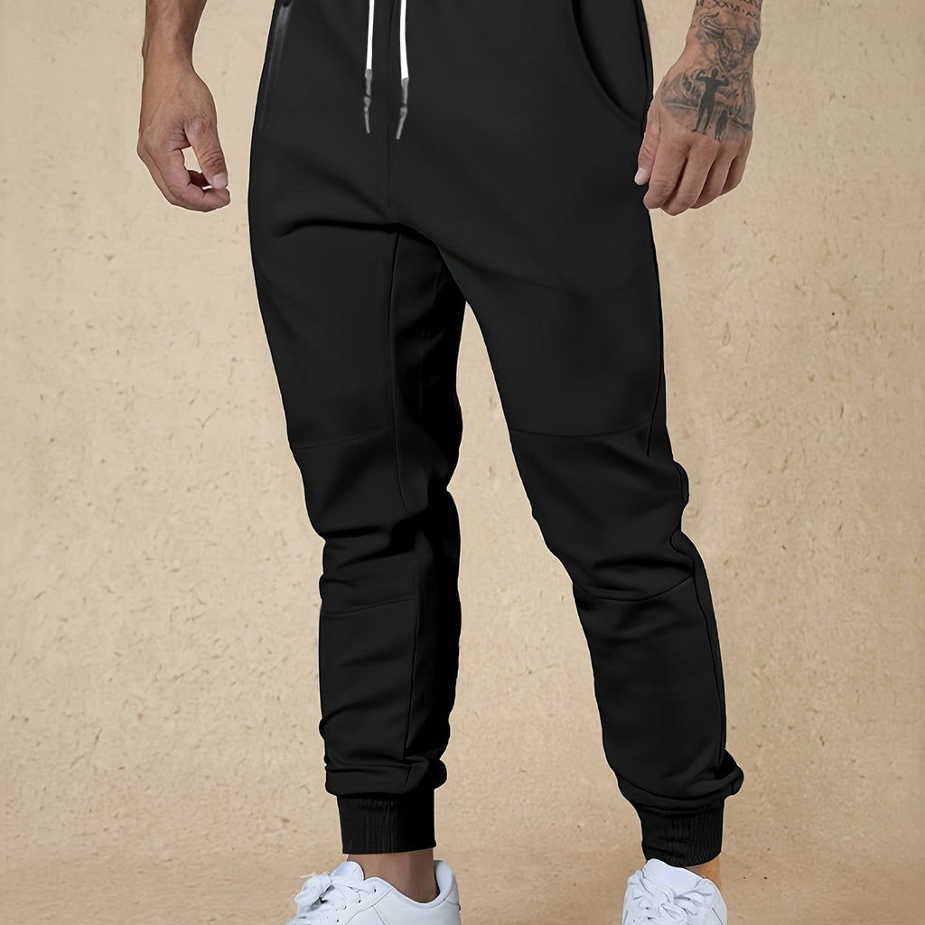 kkboxly Solid Casual Men's Long Sports Drawstring Pants With Pockets, Spring Fall Outdoor, Running Training