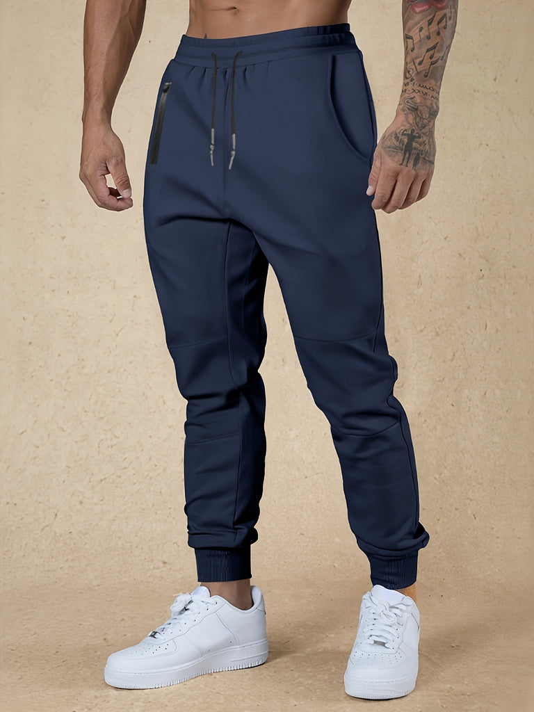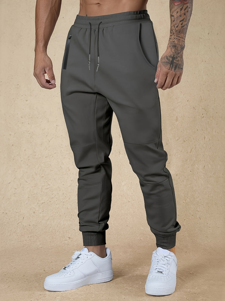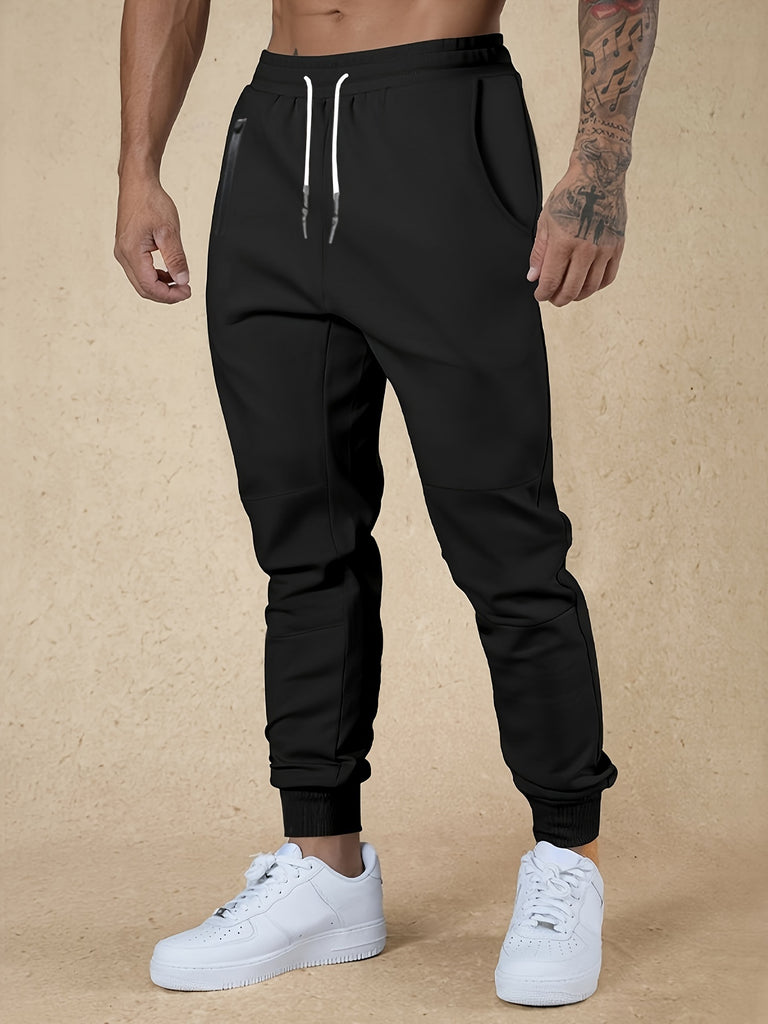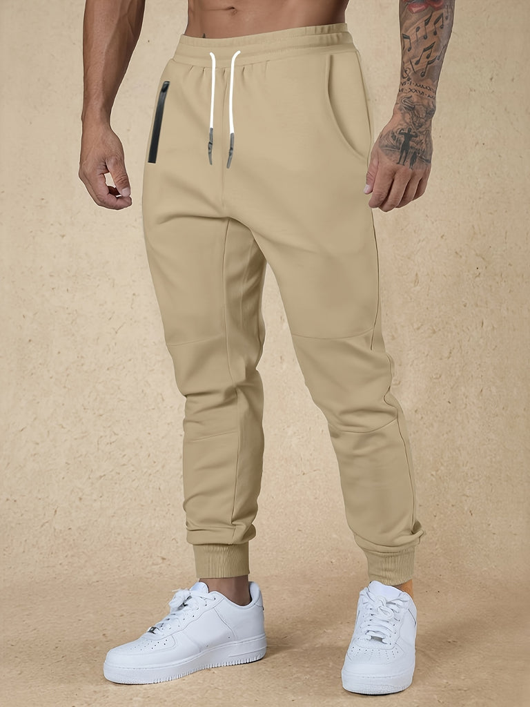 kkboxly Solid Casual Men's Long Sports Drawstring Pants With Pockets, Spring Fall Outdoor, Running Training