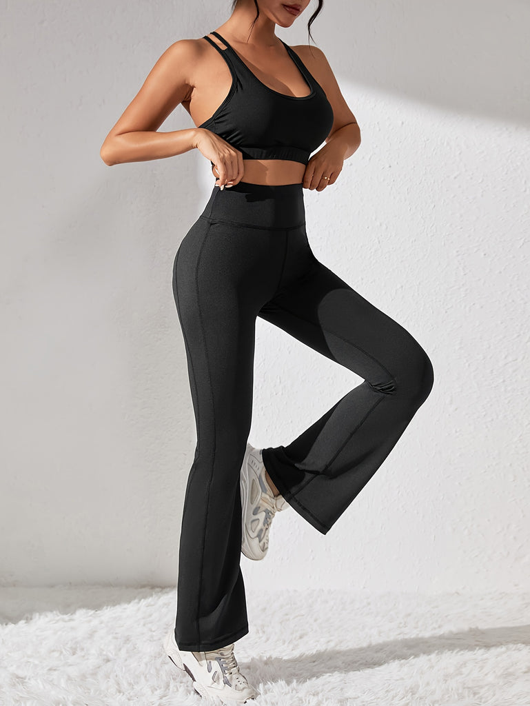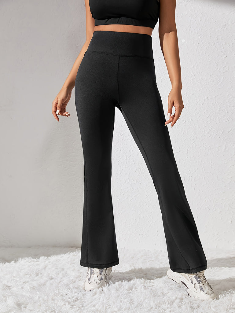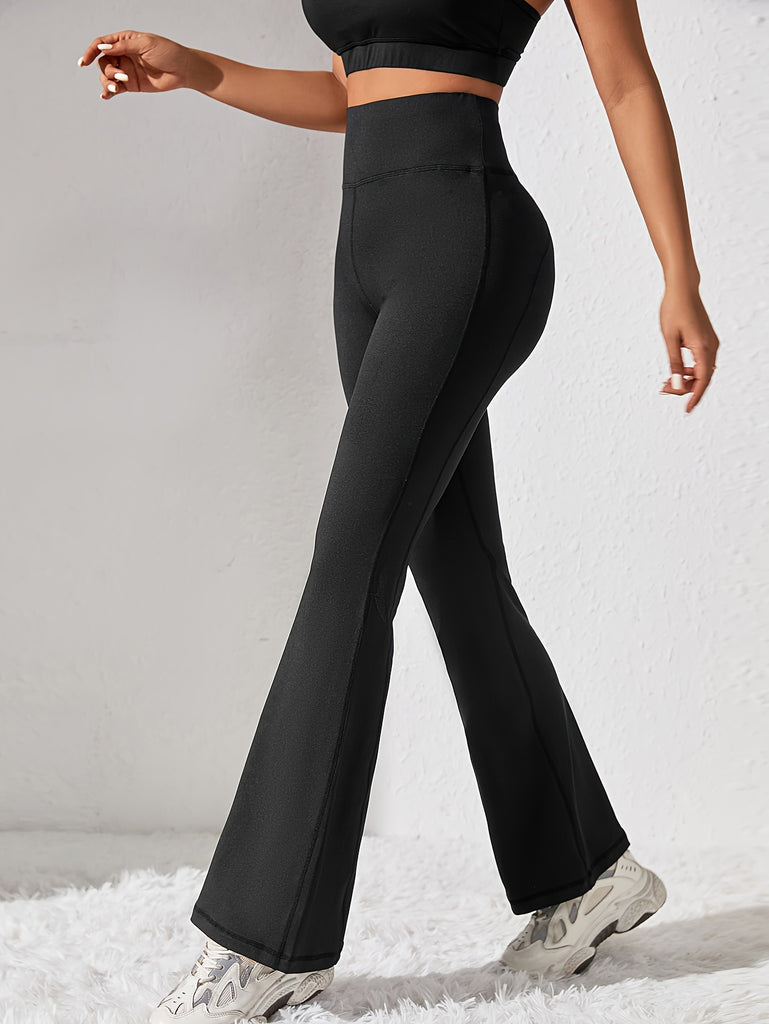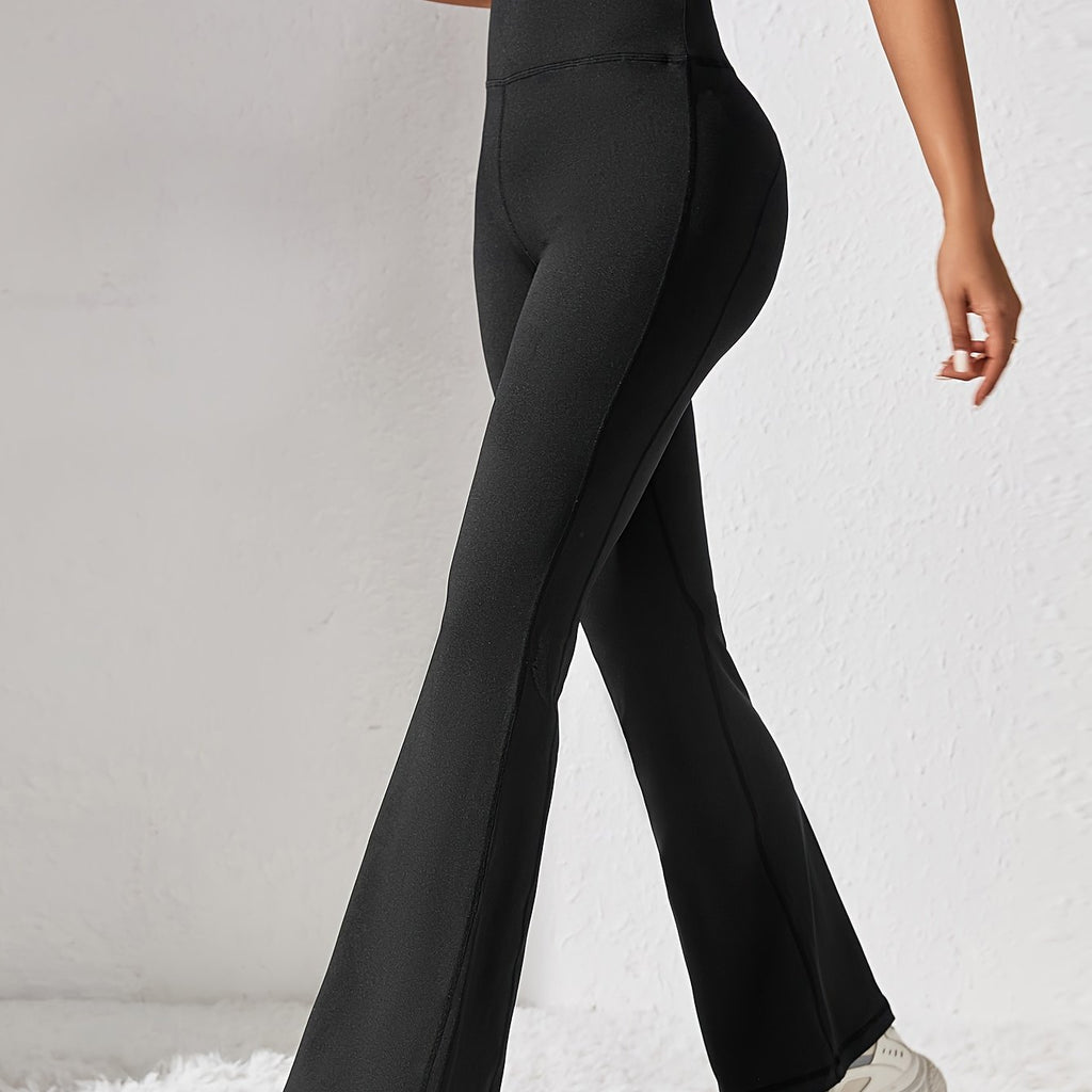 kkboxly Solid Color Flared Yoga Pants, High Stretch Sports Running Bell Bottom Pants, Women's Activewear