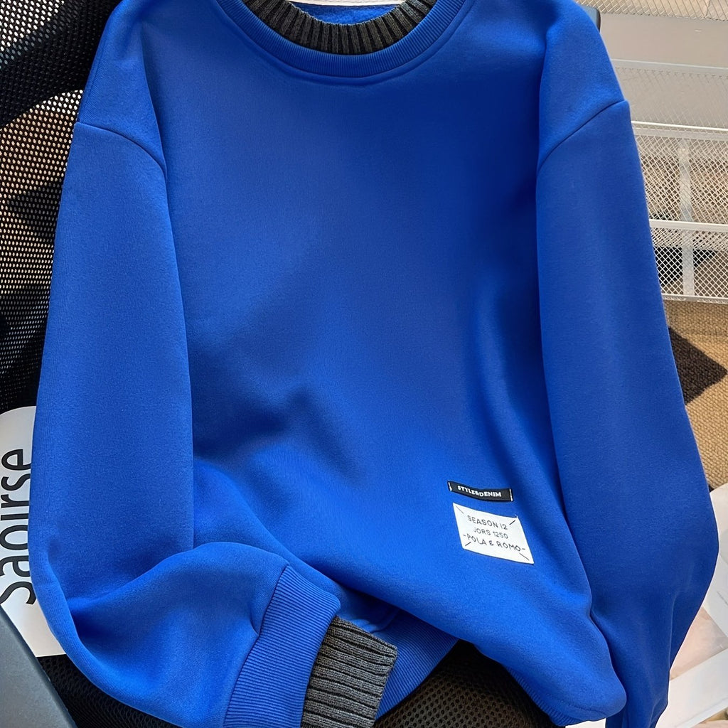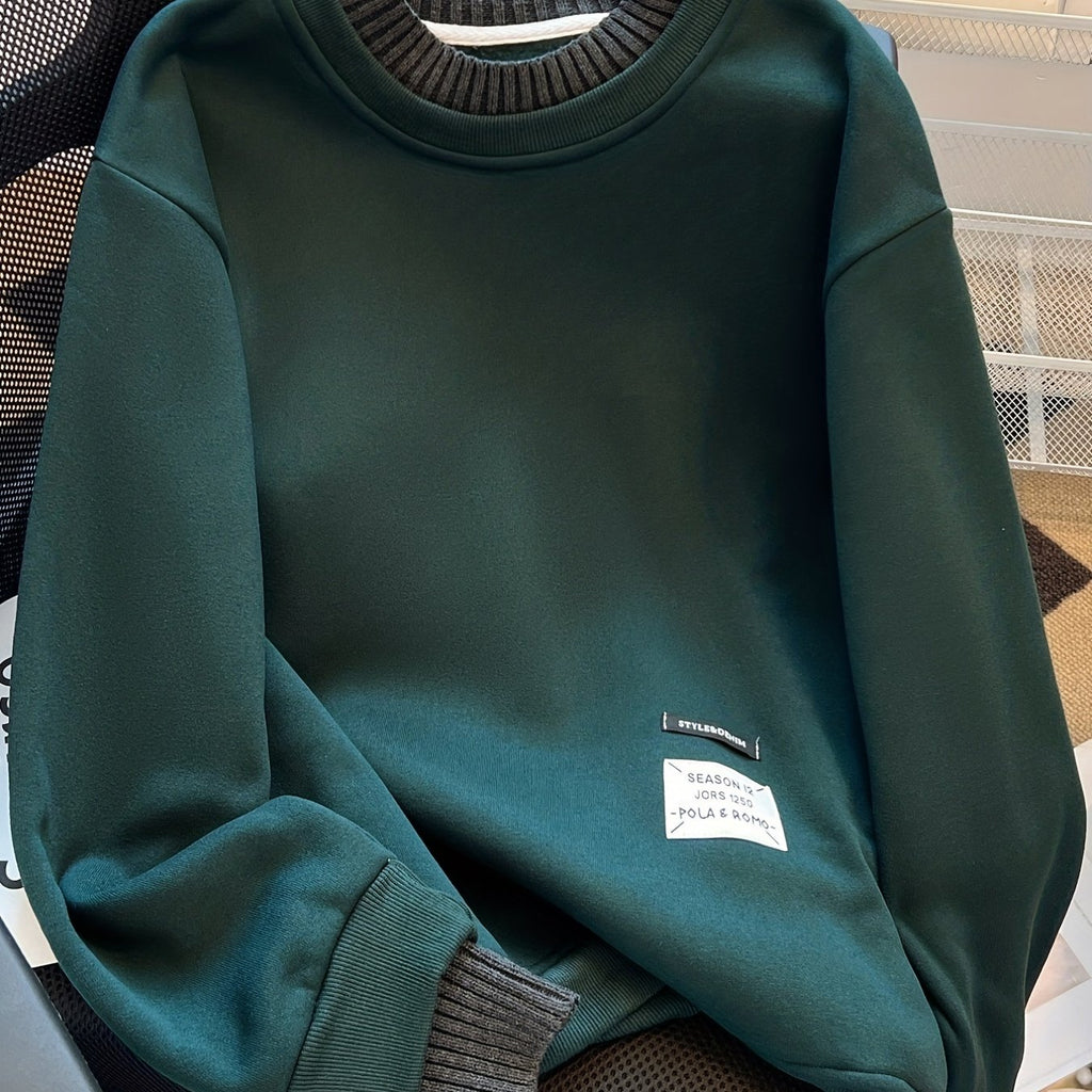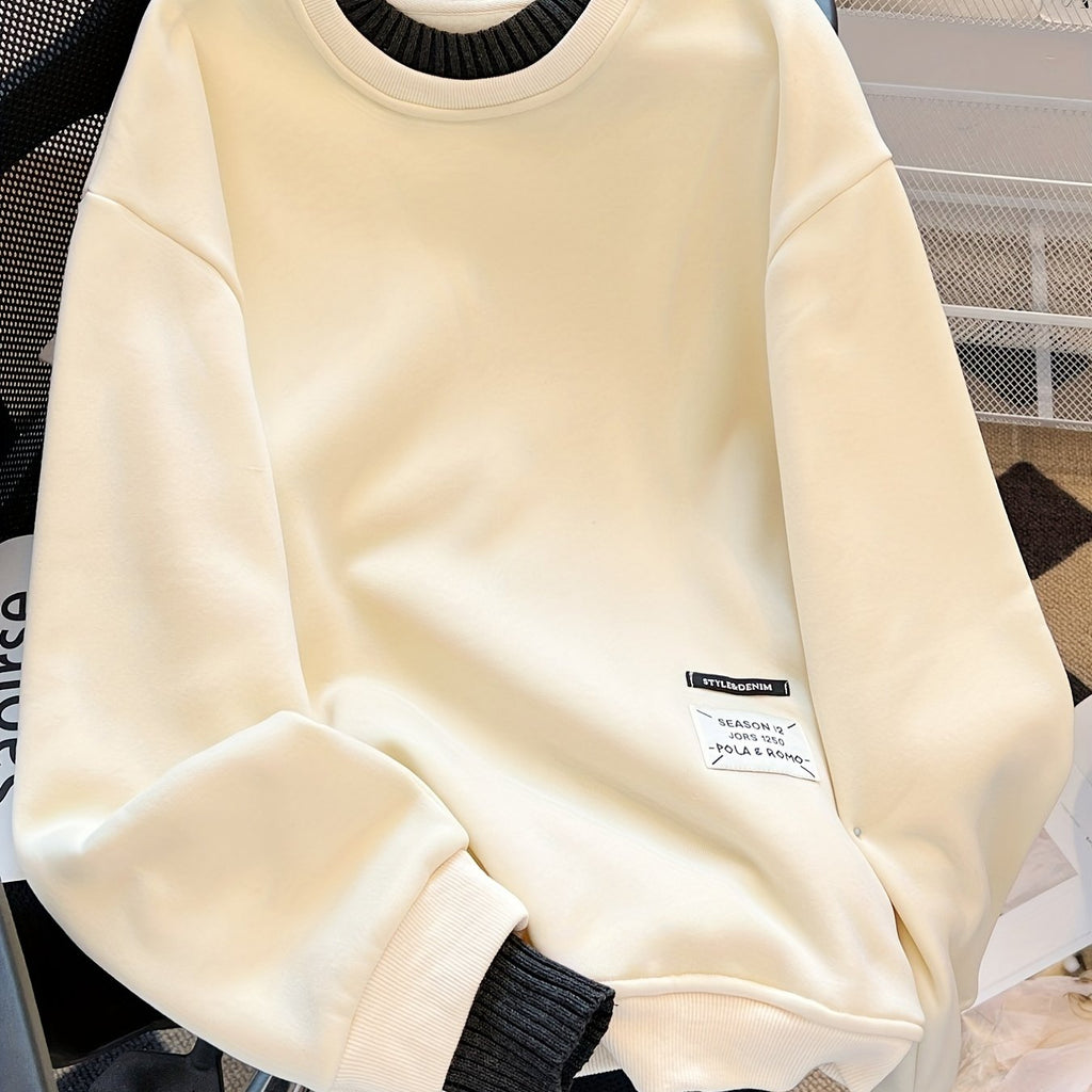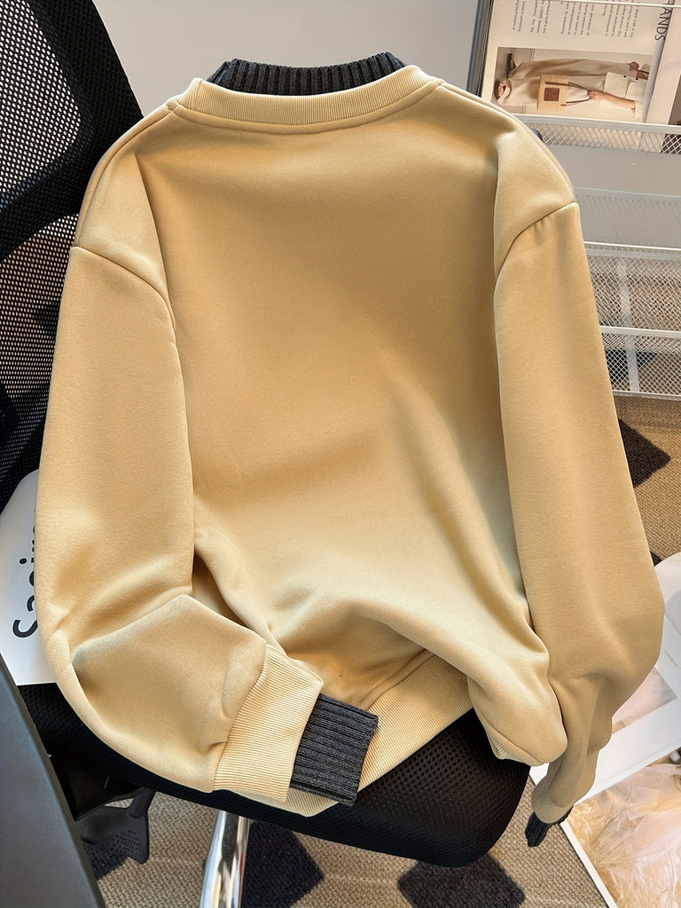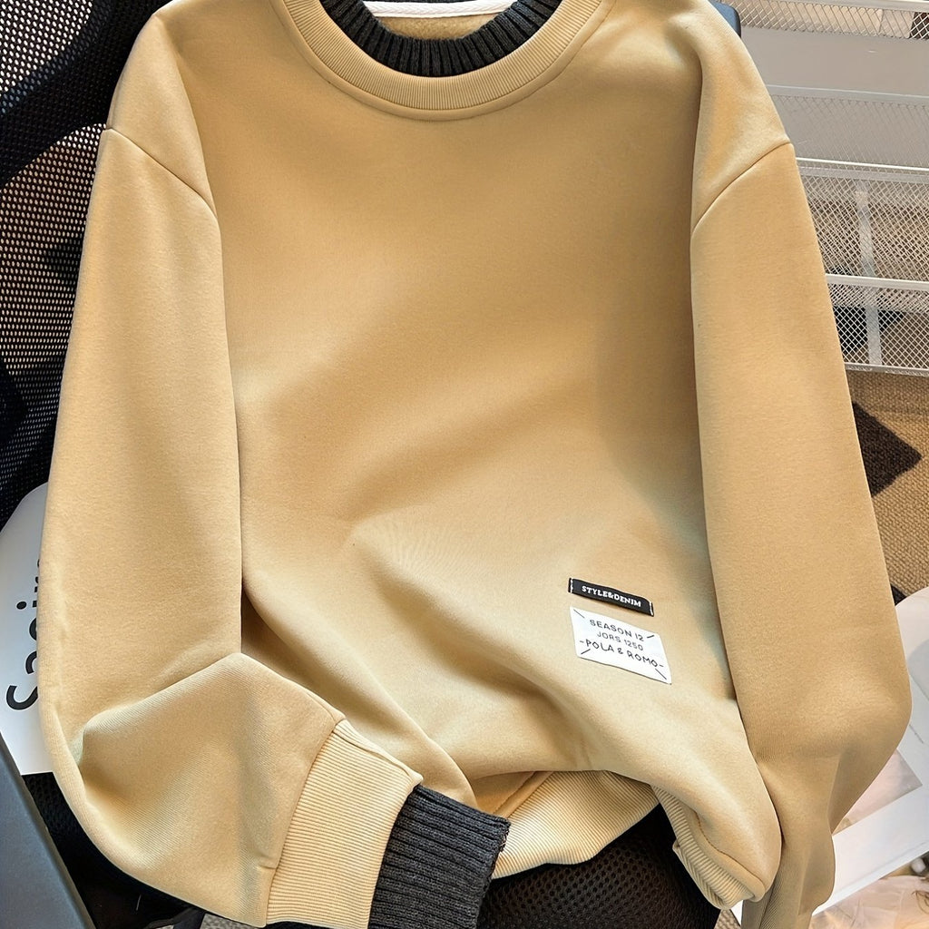 kkboxly Solid Crew Neck Applique Sweatshirt, Long Sleeve Crew Neck Pullover Sweatshirt, Casual Tops For Fall & Winter, Women's Clothing