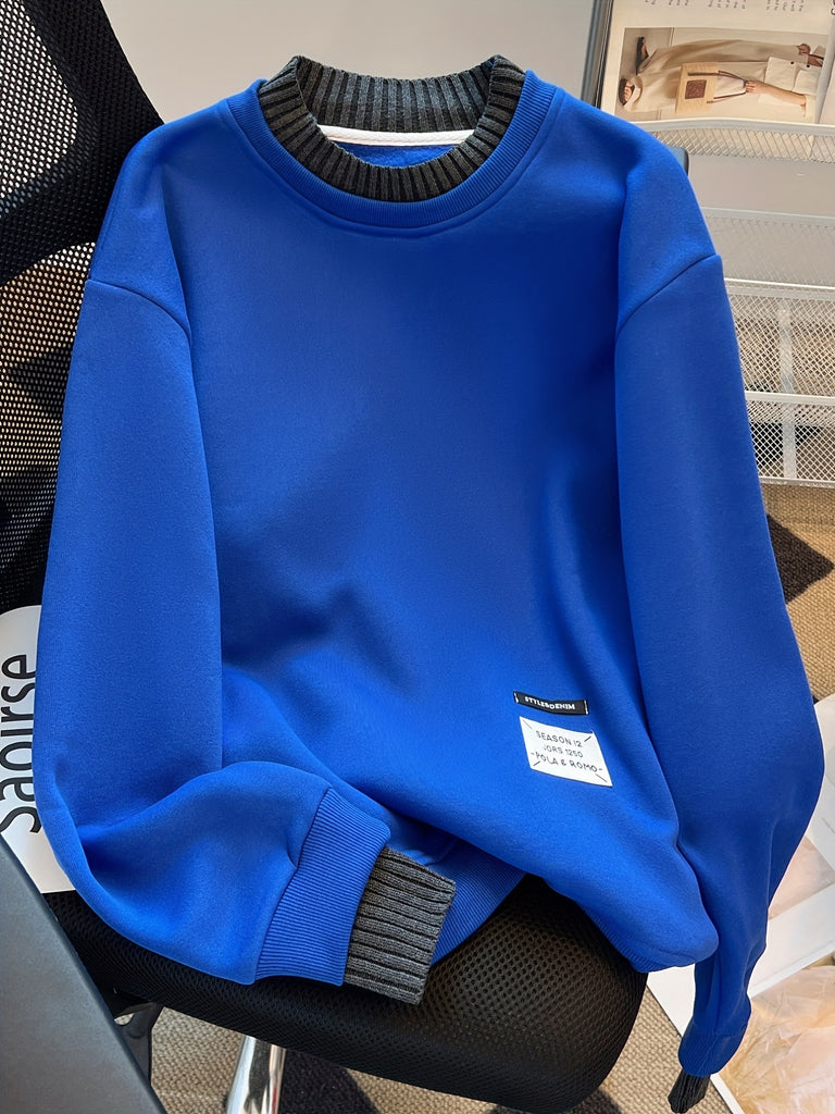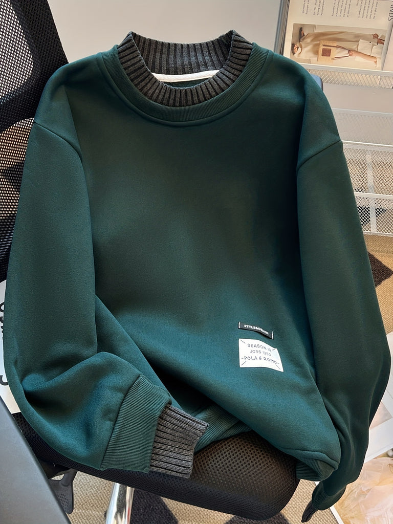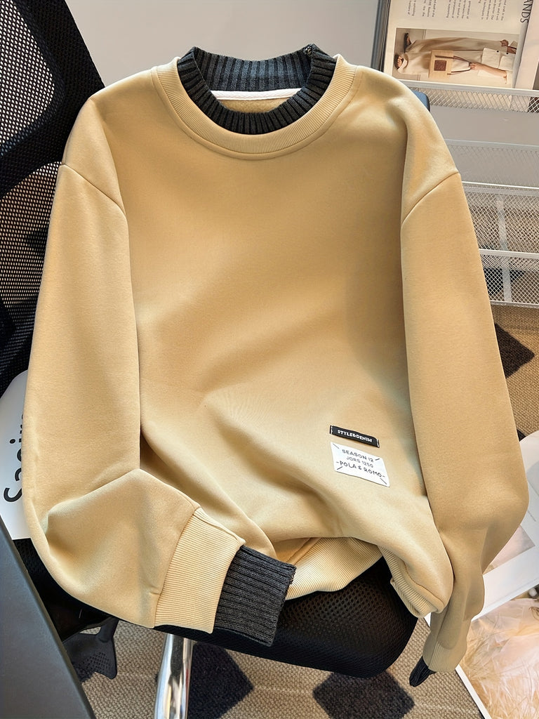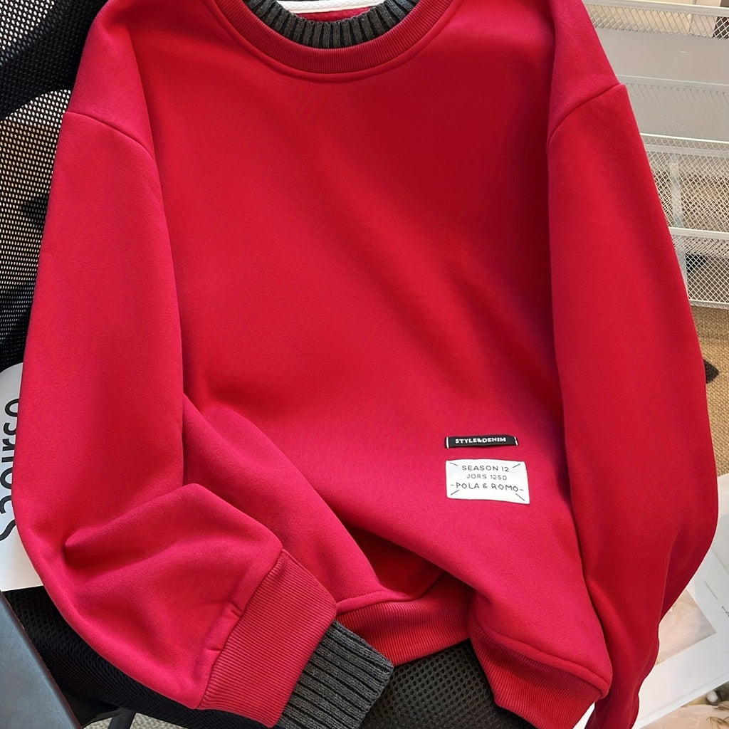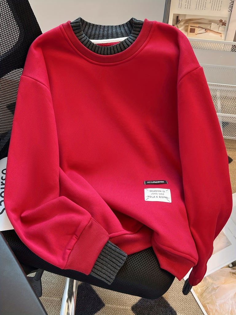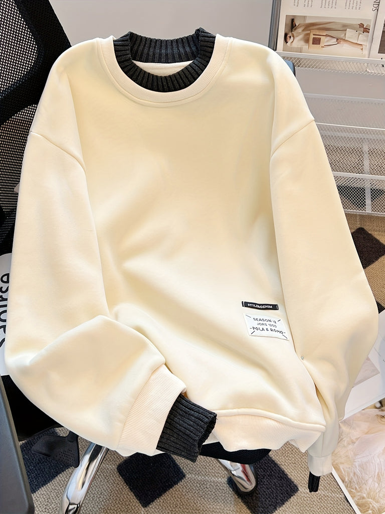 kkboxly Solid Crew Neck Applique Sweatshirt, Long Sleeve Crew Neck Pullover Sweatshirt, Casual Tops For Fall & Winter, Women's Clothing