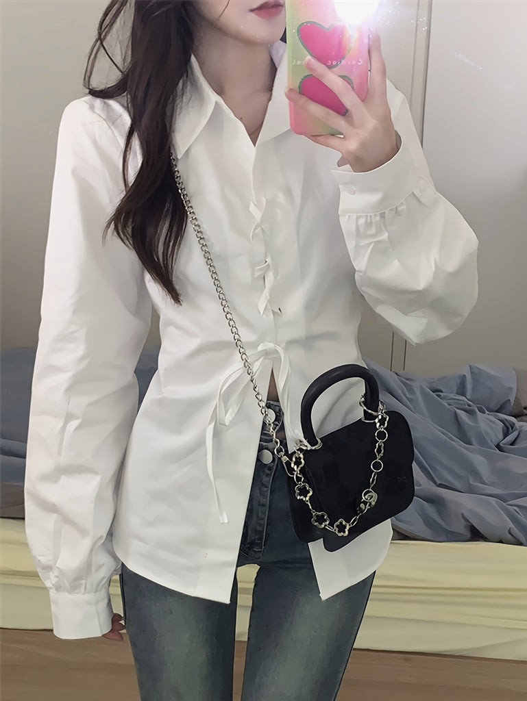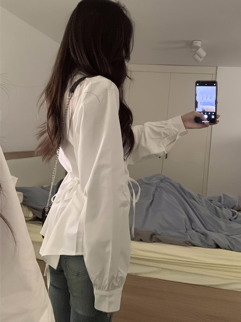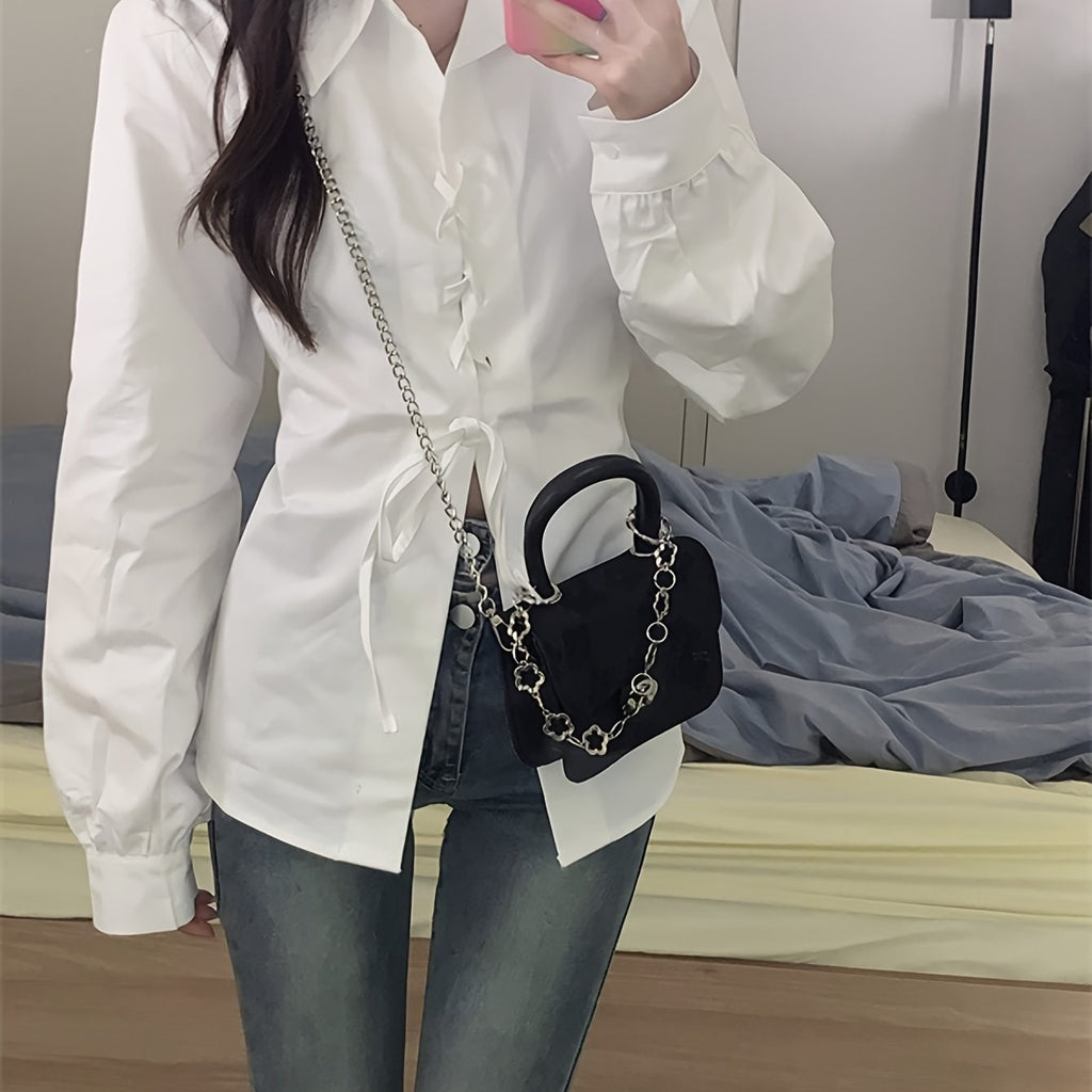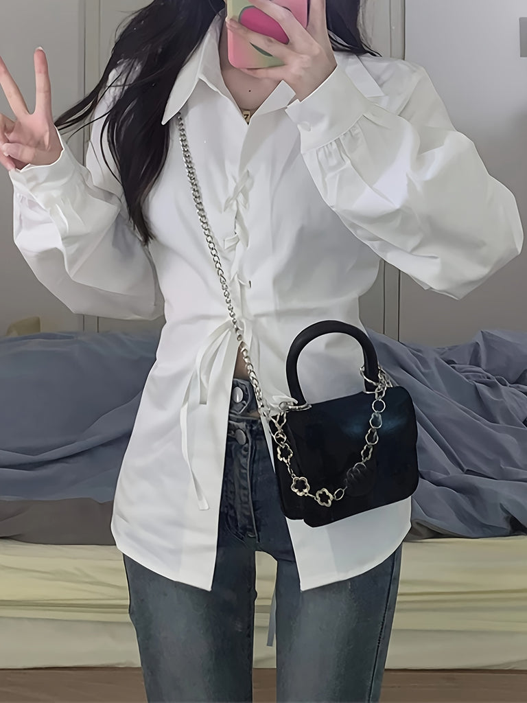kkboxly Solid Cross Tie Blouse, Casual Long Sleeve Blouse For Spring & Fall, Women's Clothing