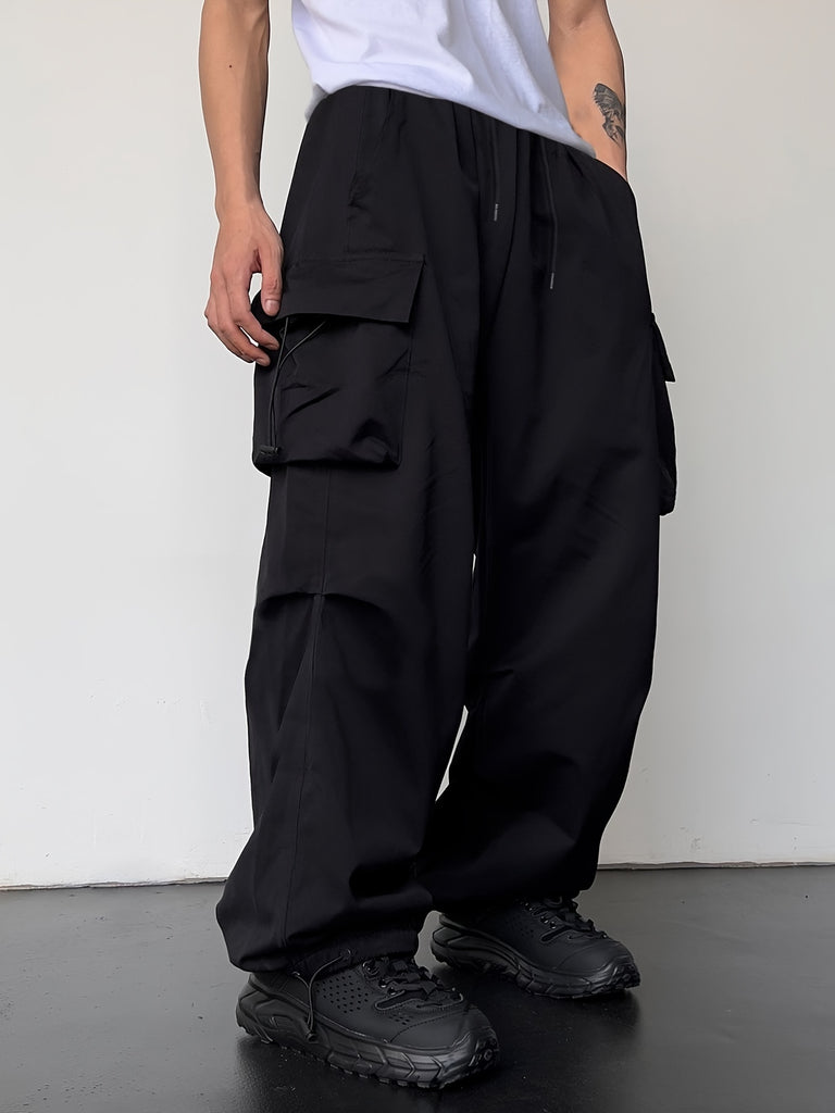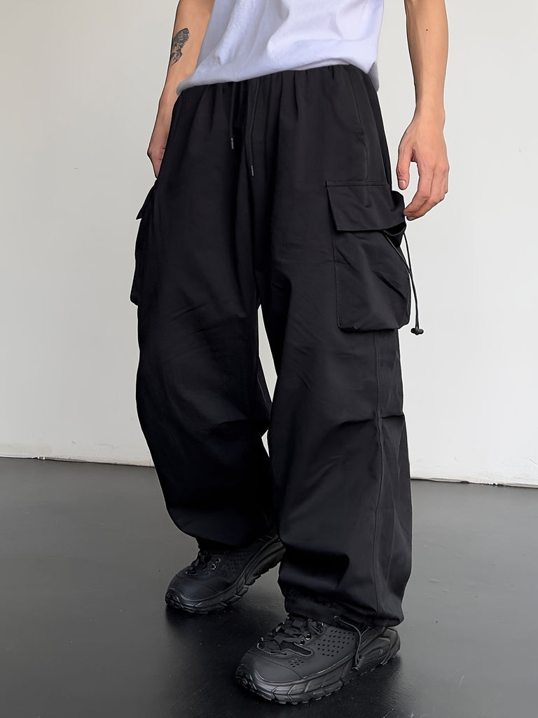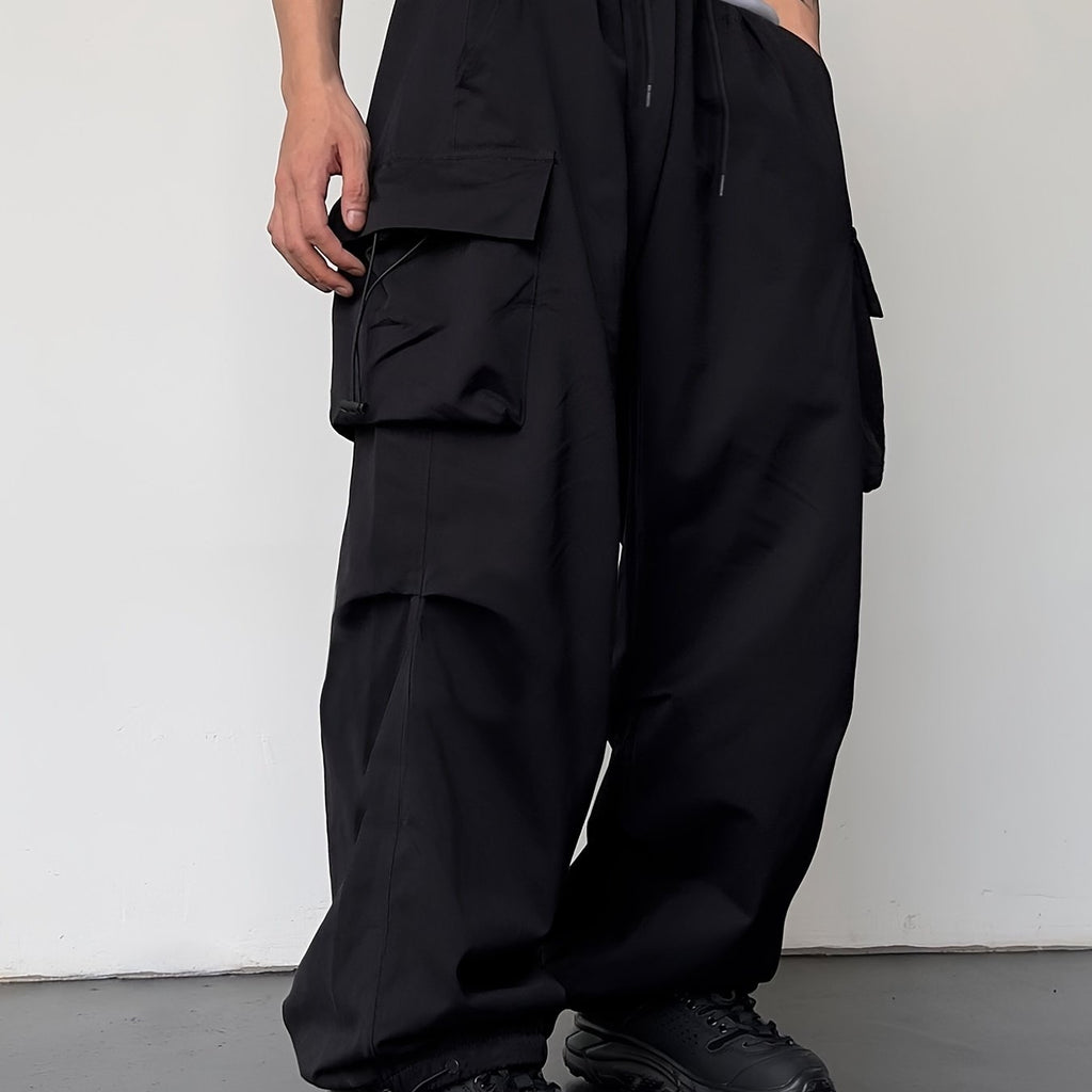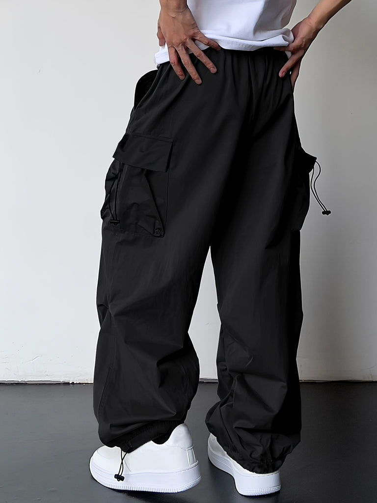kkboxly Solid Multi Flap Pockets Men's Straight Leg Cargo Pants, Loose Casual Outdoor Pants, Men's Work Pants For Hiking Fishing Angling