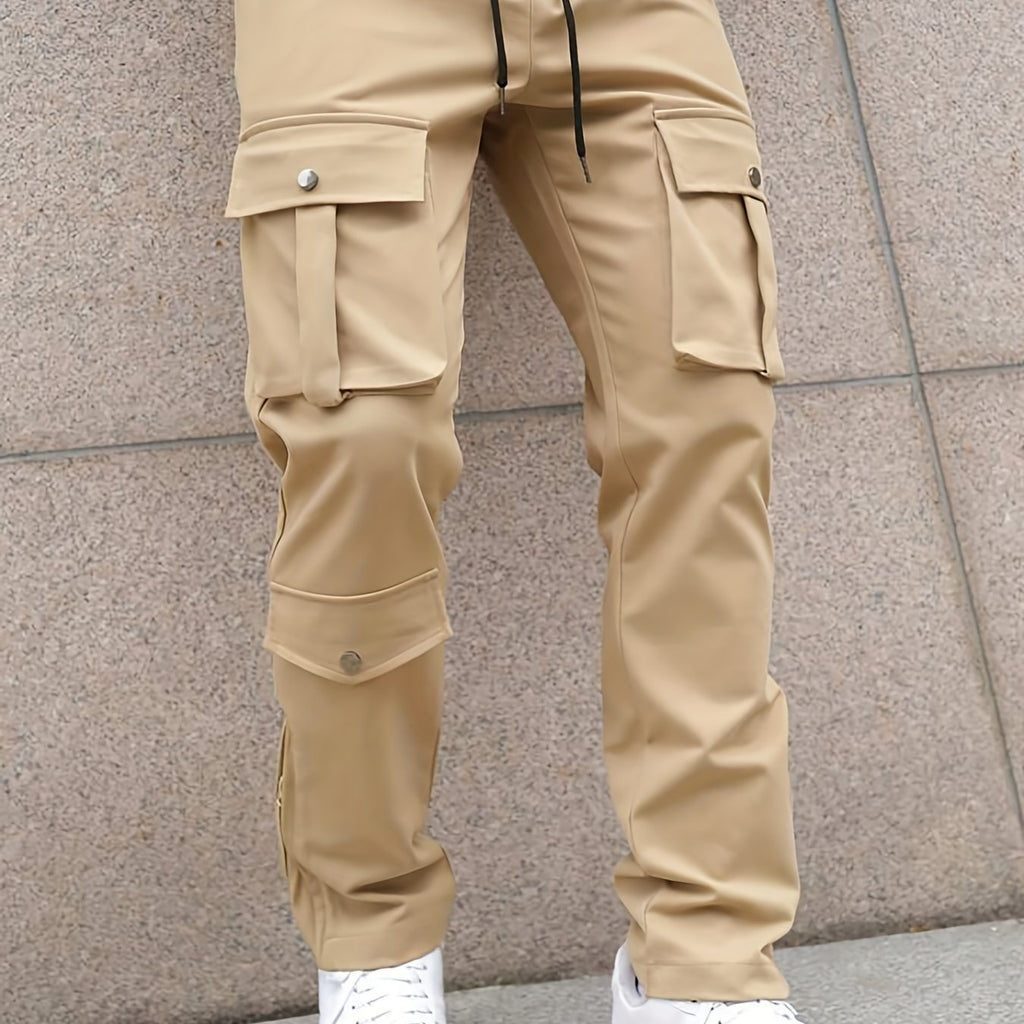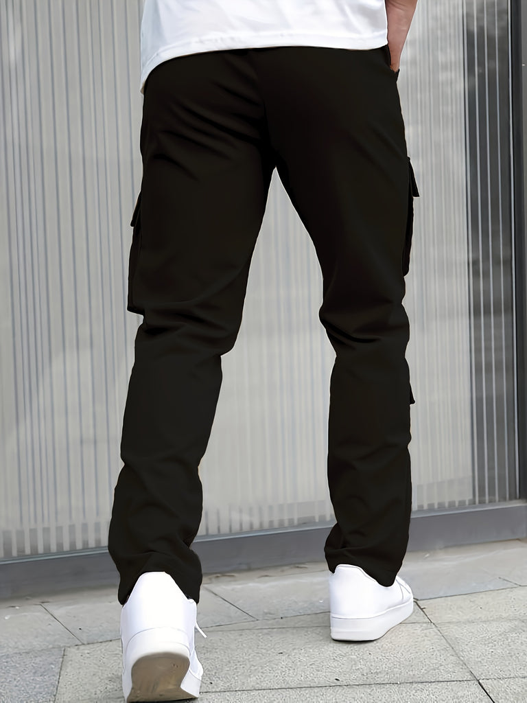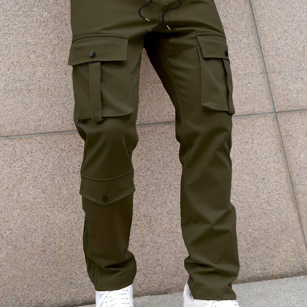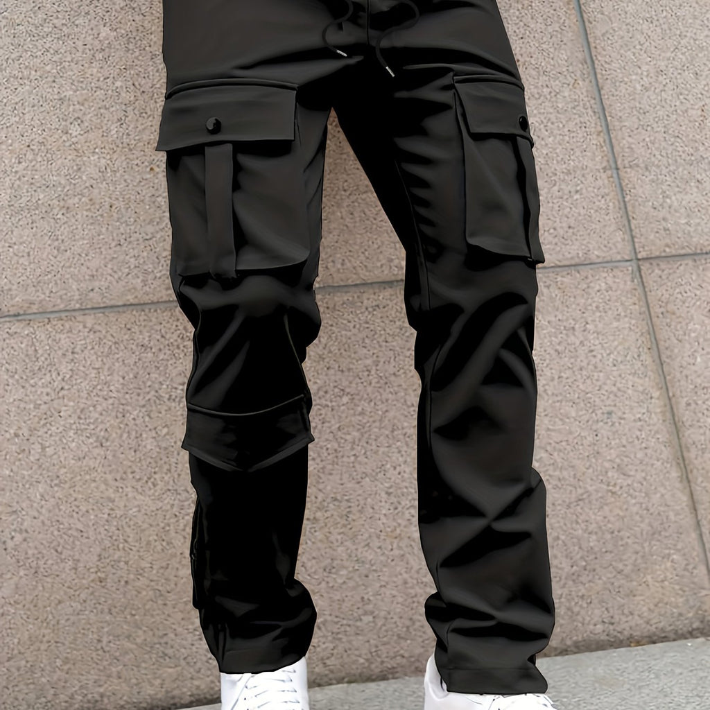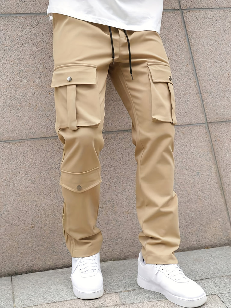 kkboxly Solid Multi Flap Pockets Men's Straight Leg Cargo Pants, Loose Casual Outdoor Pants, Men's Work Pants Streetwear