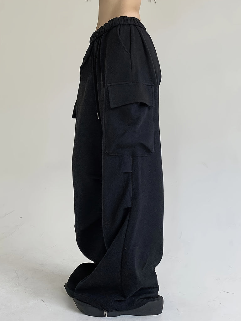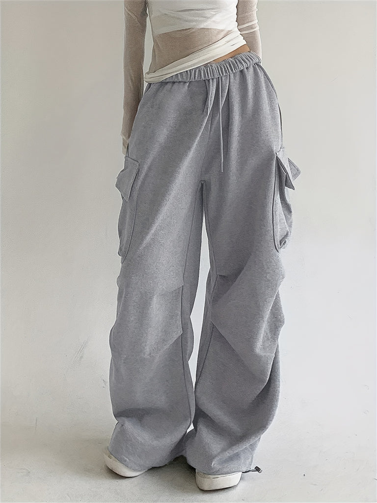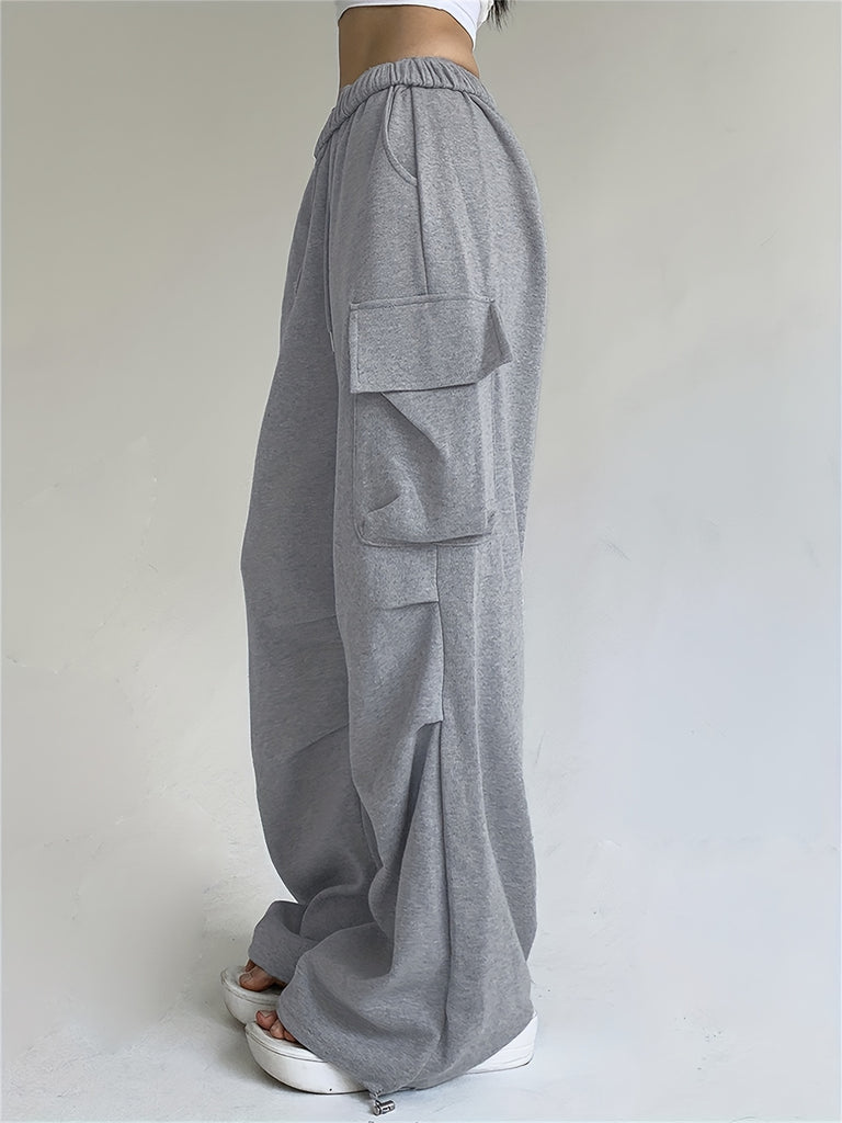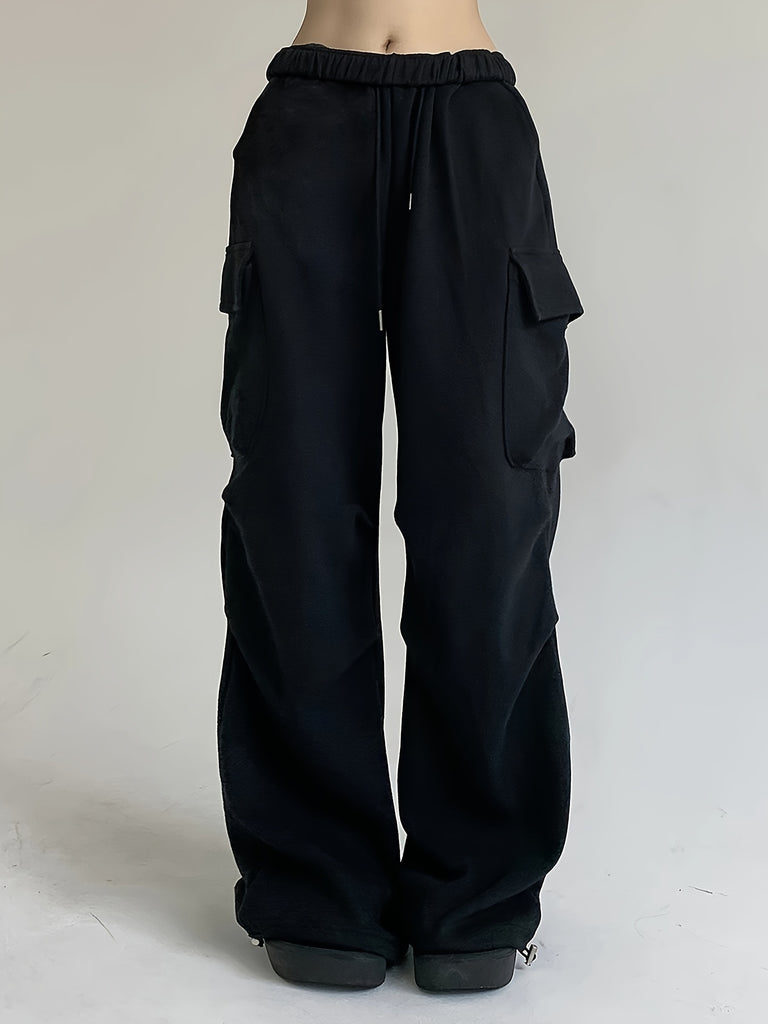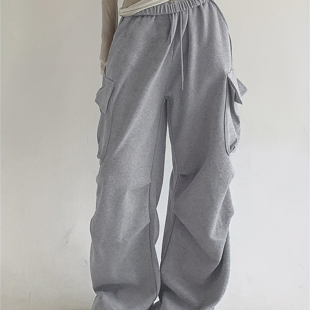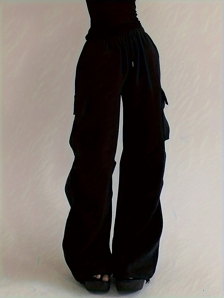 kkboxly Solid Pocket Straight Leg Pants, Casual Drawstring Elastic Waist Pants, Women's Clothing