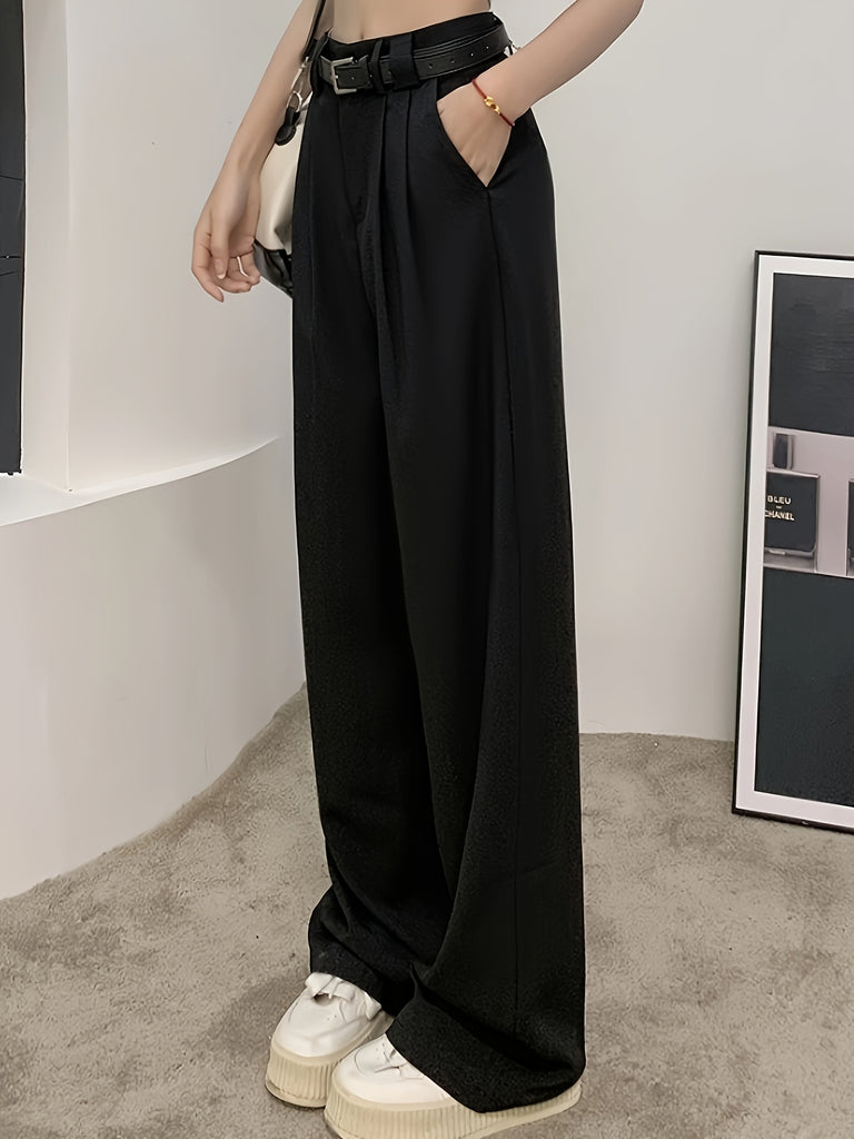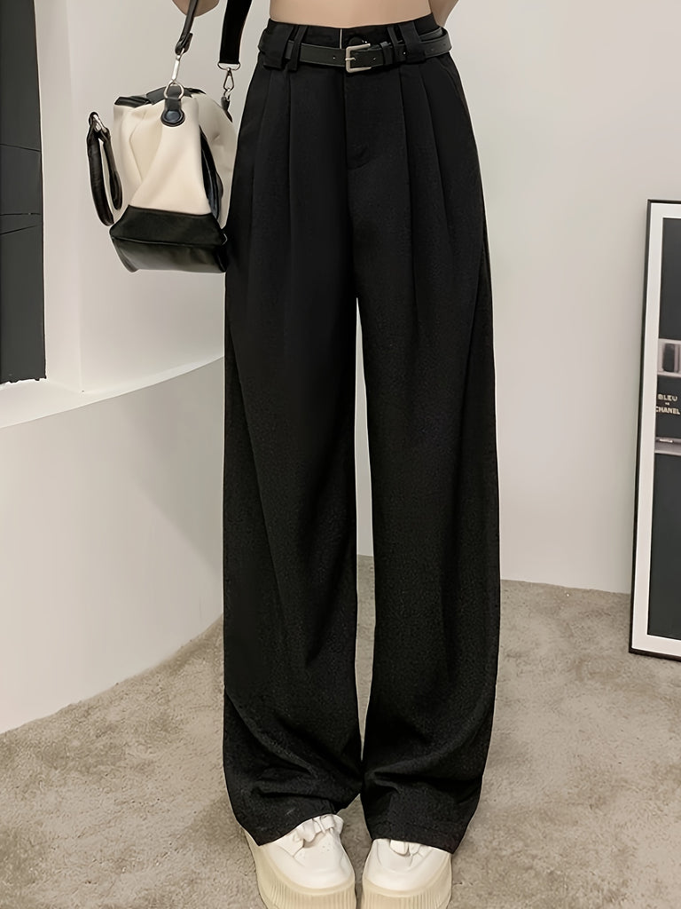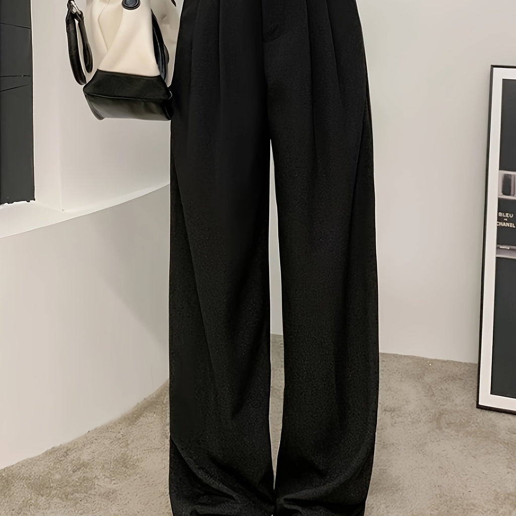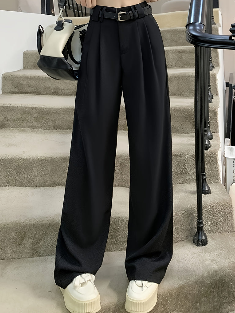 kkboxly Solid Straight Leg Pants, Versatile High Waist Pants For Spring & Fall, Women's Clothing