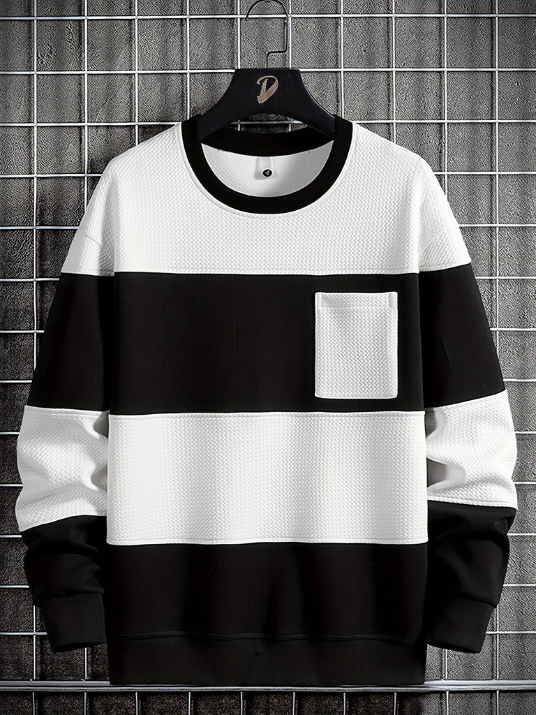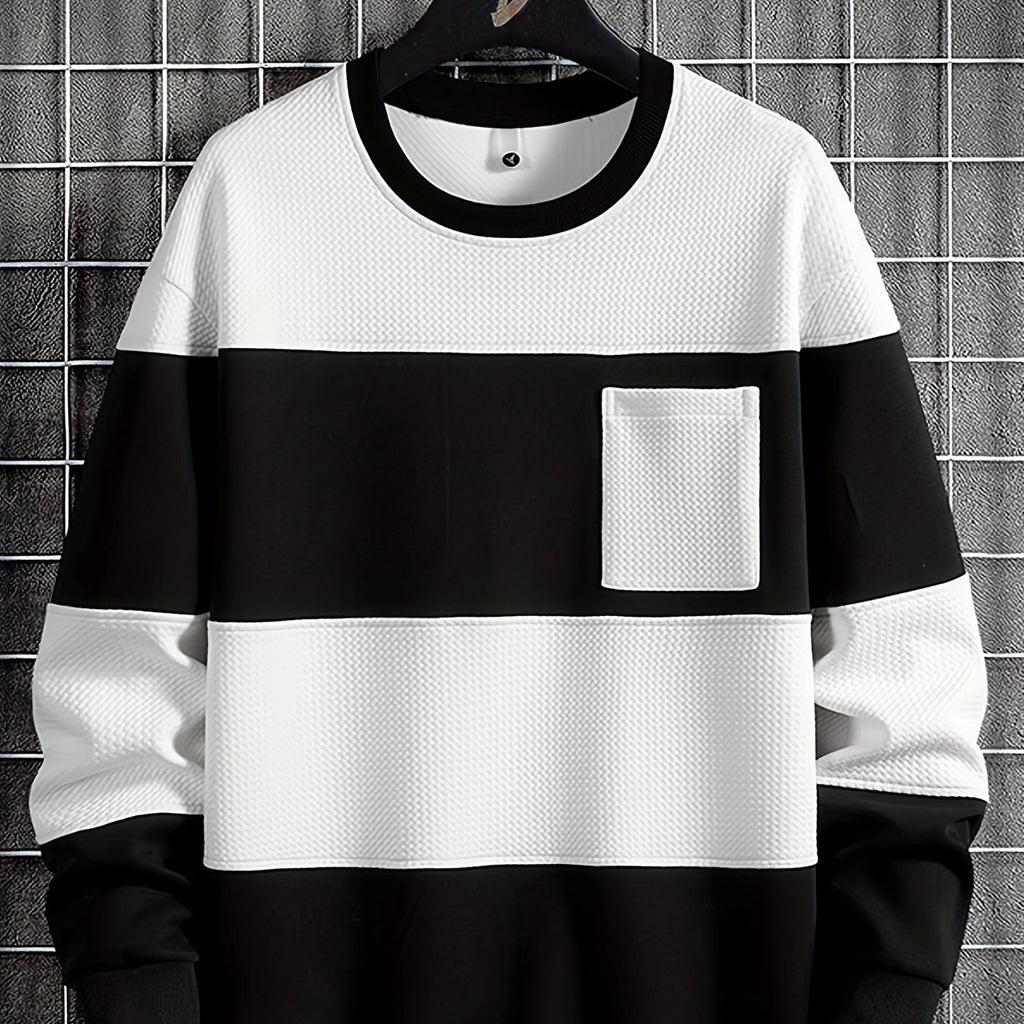 kkboxly Trendy Hooded Sweatshirt, Men's Casual Slightly Stretch Crew Neck Pullover Sweatshirt For Autumn Winter Streetwear