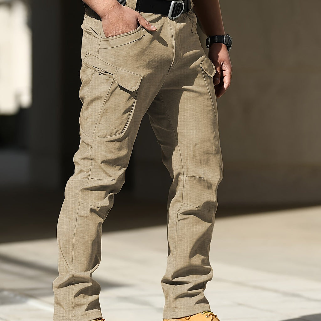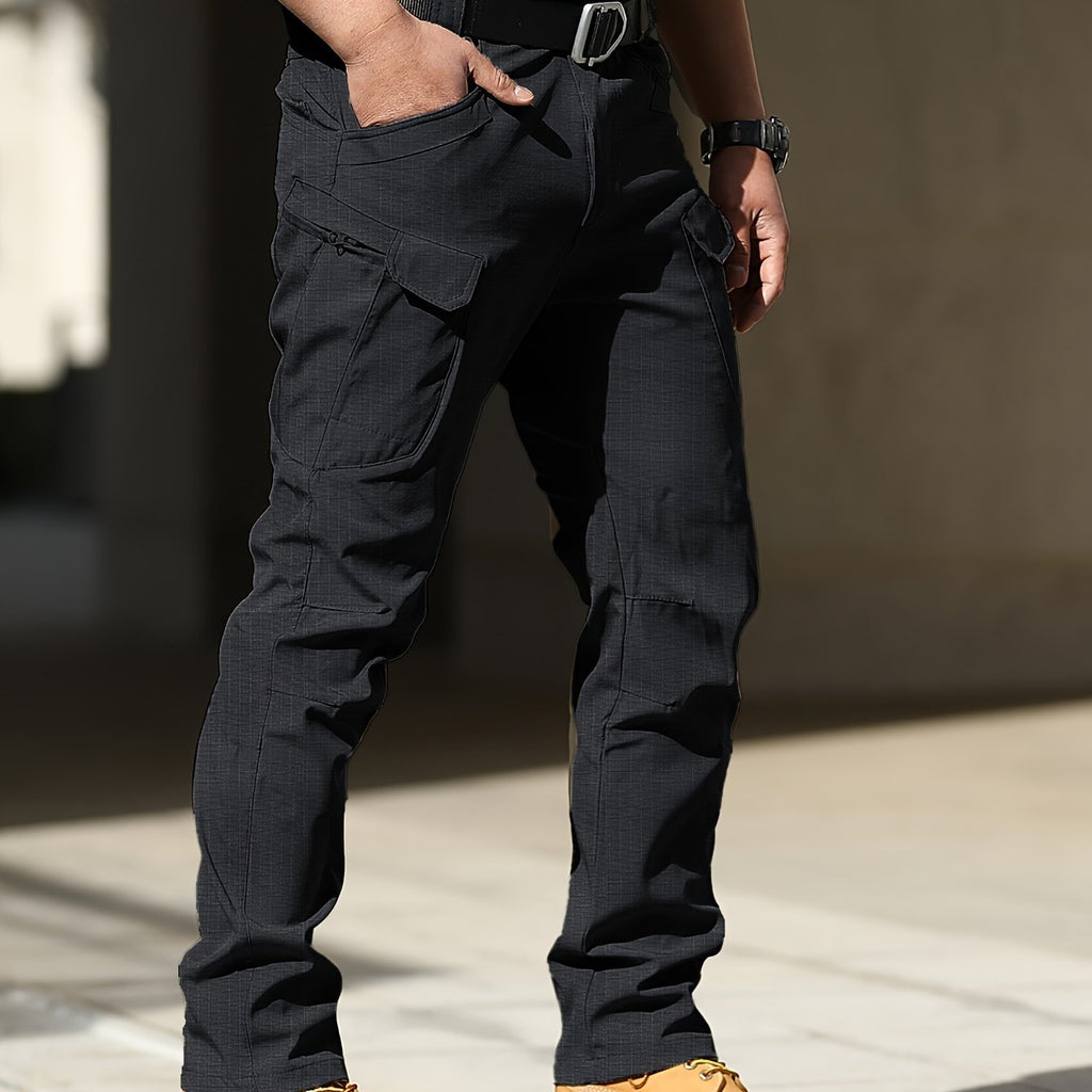kkboxly Trendy Solid Cargo Pants, Men's Multi Flap Pocket Trousers, Loose Casual Outdoor Pants, Men's Work Pants Outdoors Streetwear