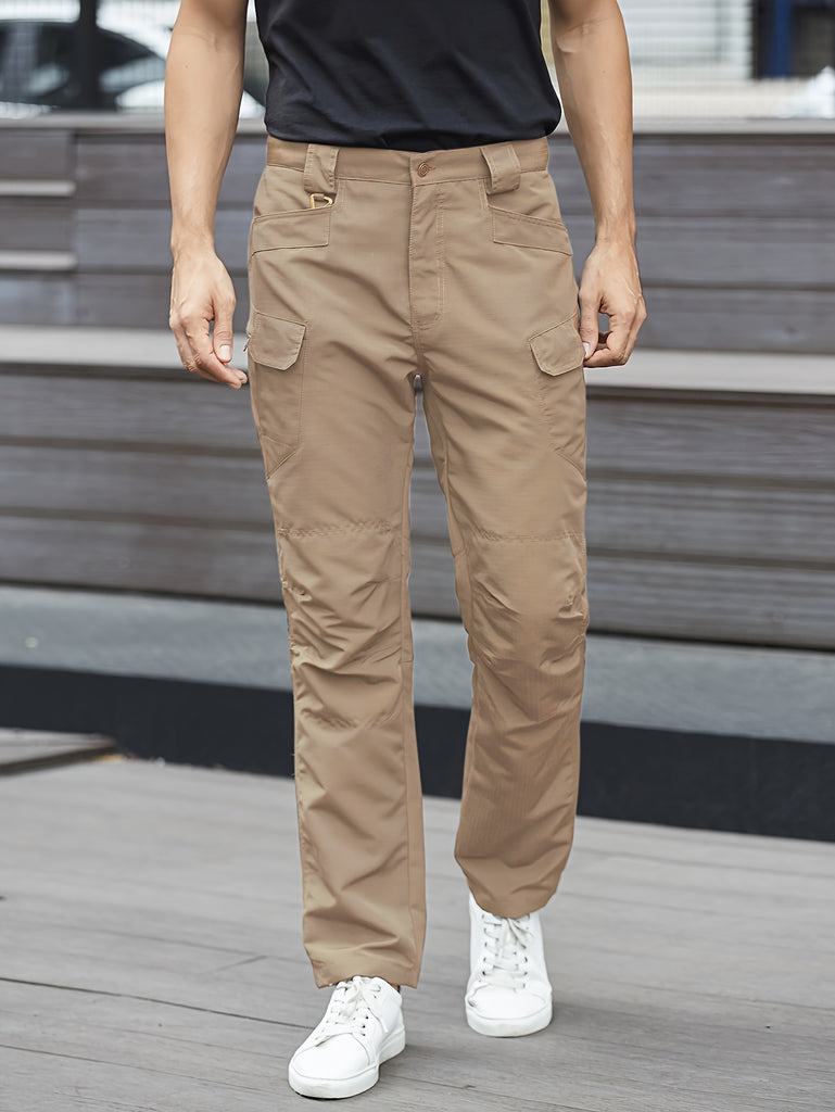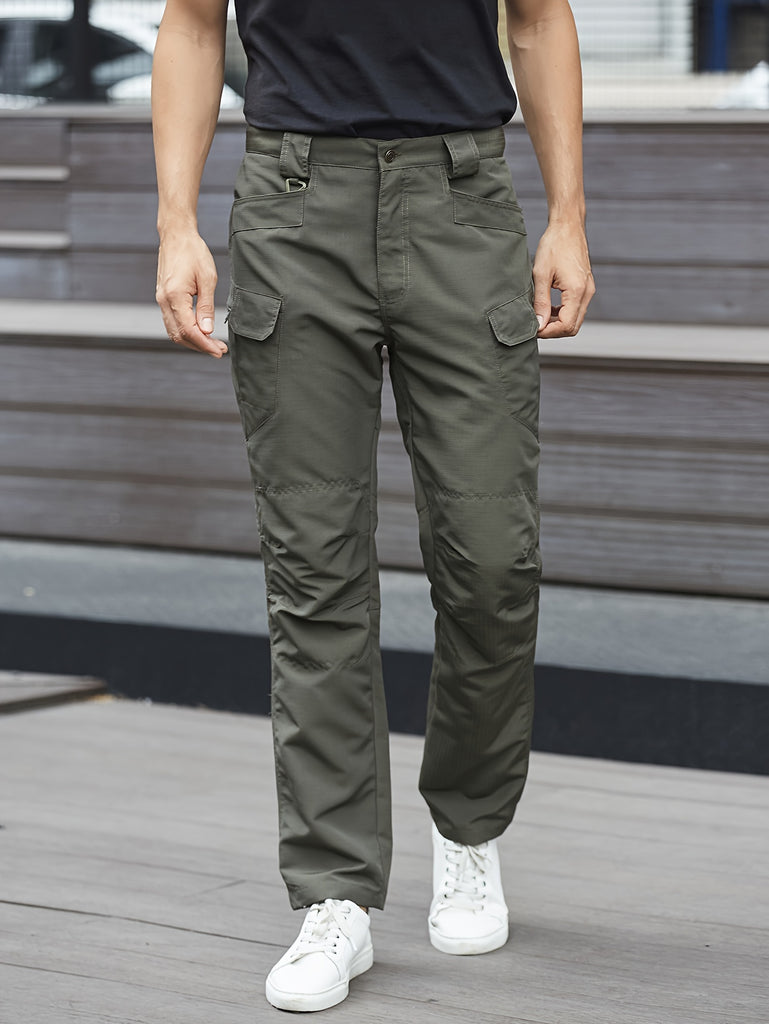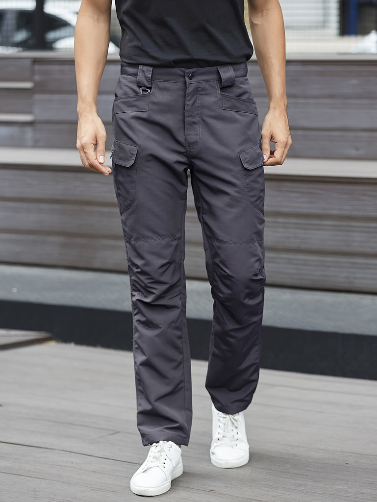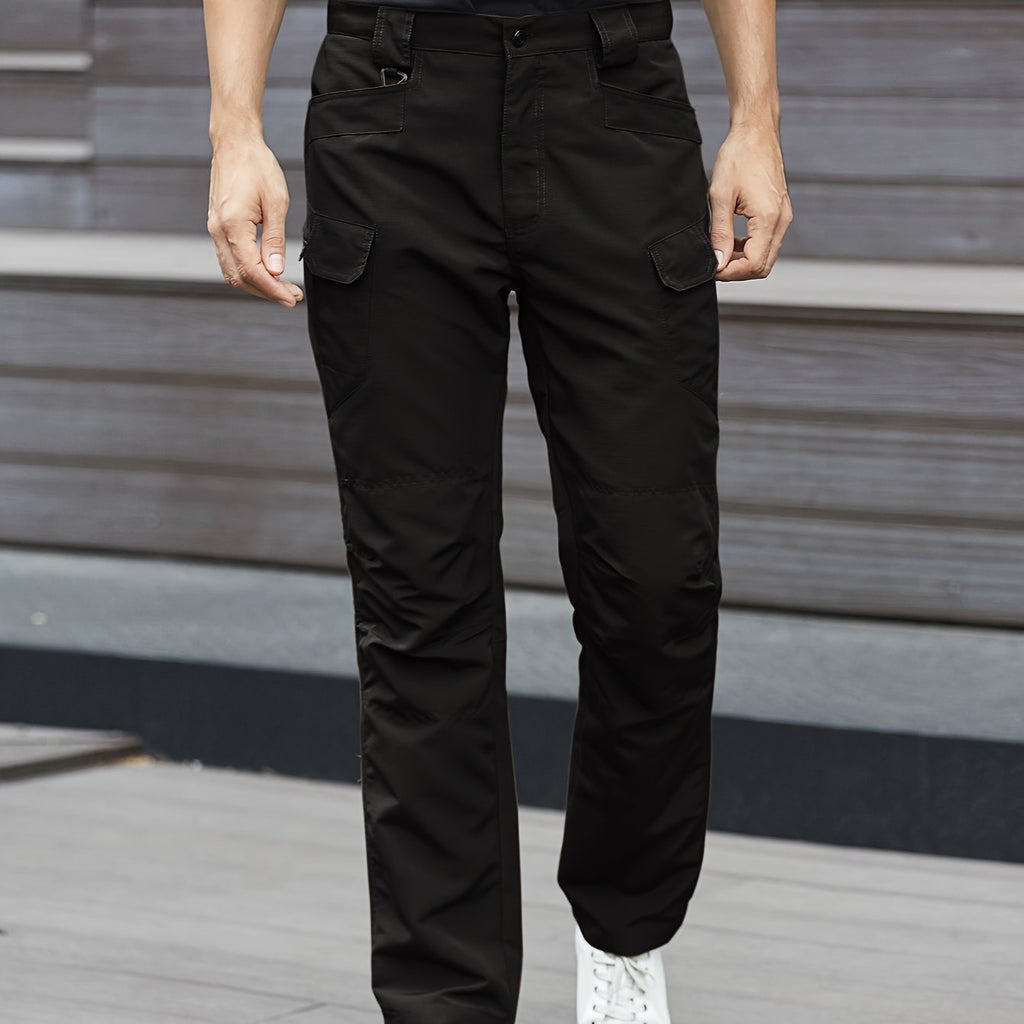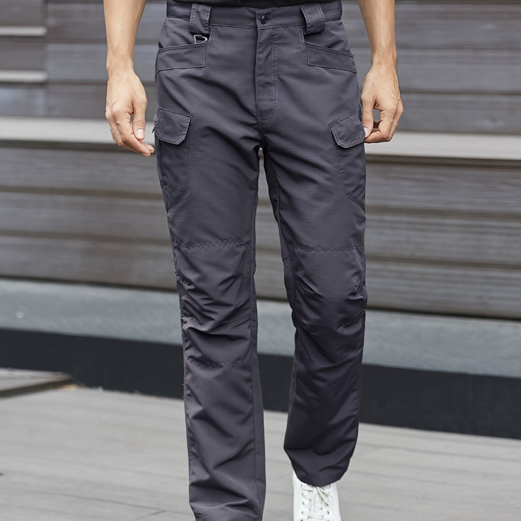 kkboxly Trendy Solid Cargo Pants, Men's Multi Flap Pocket Trousers, Loose Casual Outdoor Pants, Men's Work Pants Outdoors Streetwear Hip Hop Style