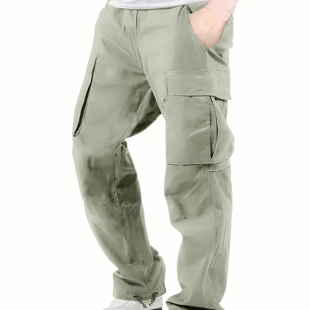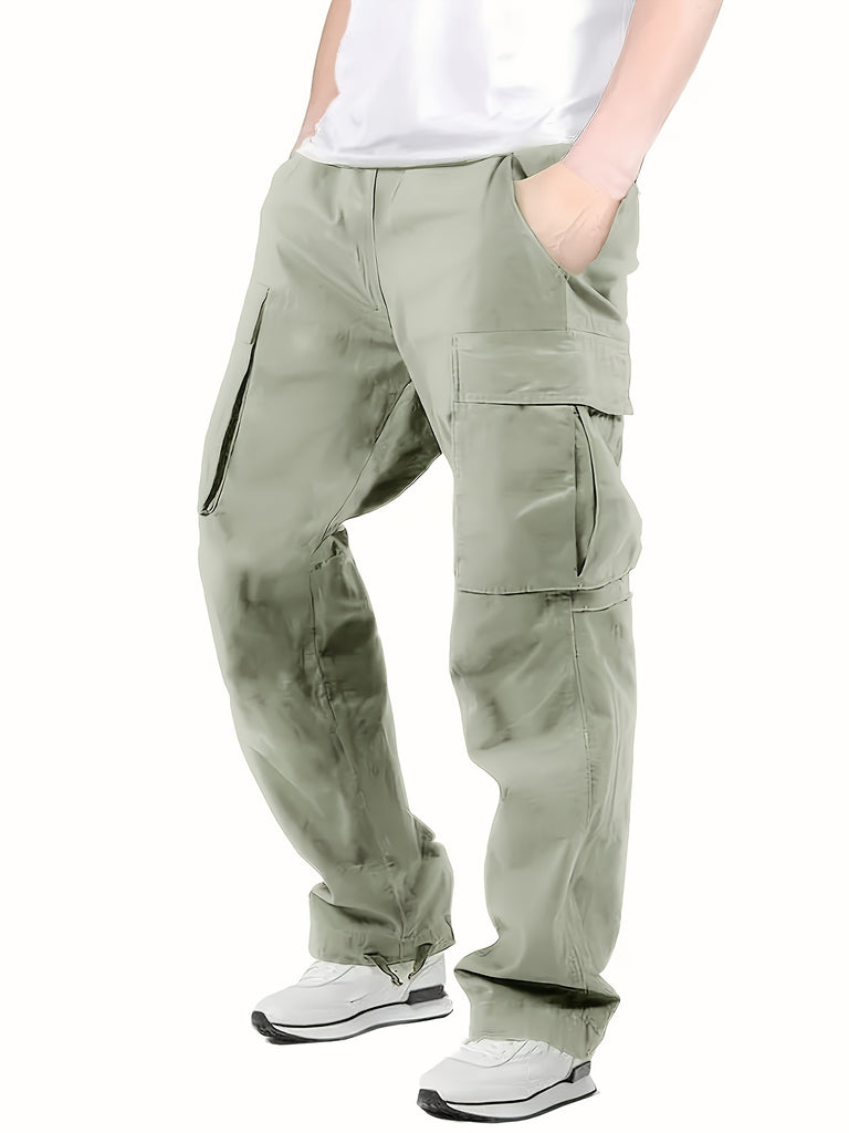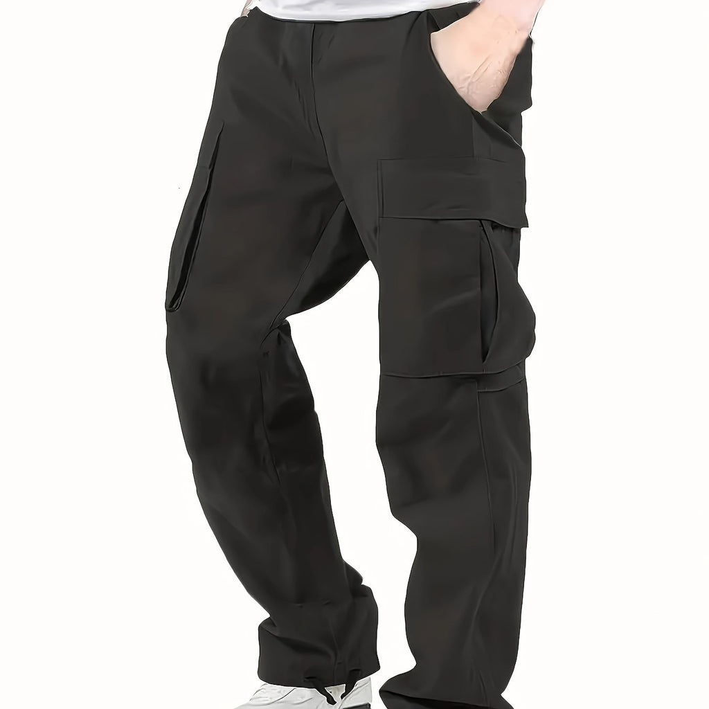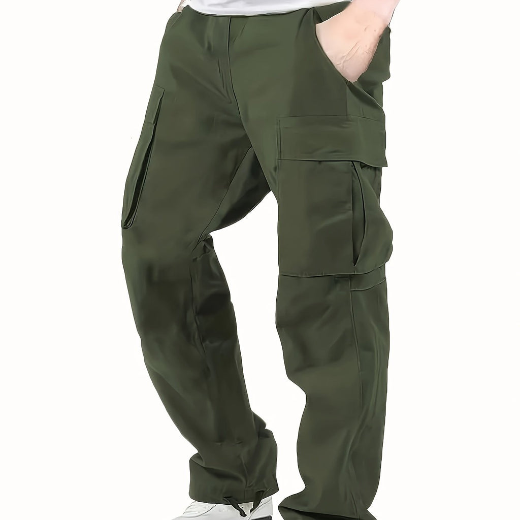 kkboxly Trendy Solid Cotton Cargo Pants, Men's Multi Flap Pocket Trousers, Loose Casual Outdoor Pants, Men's Work Pants Outdoors streetwear hip hop style