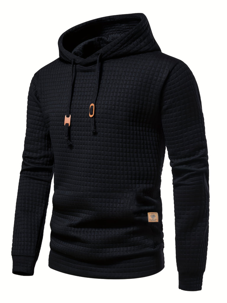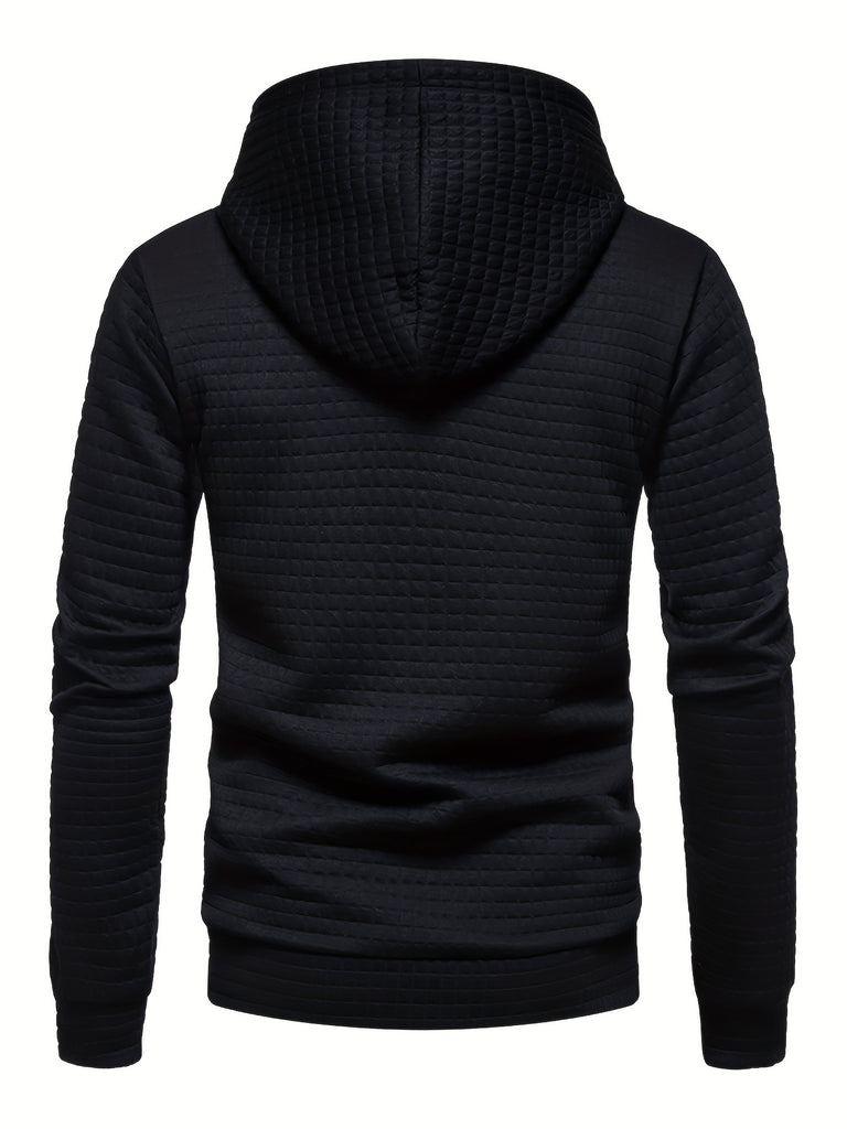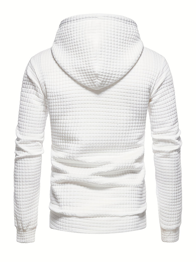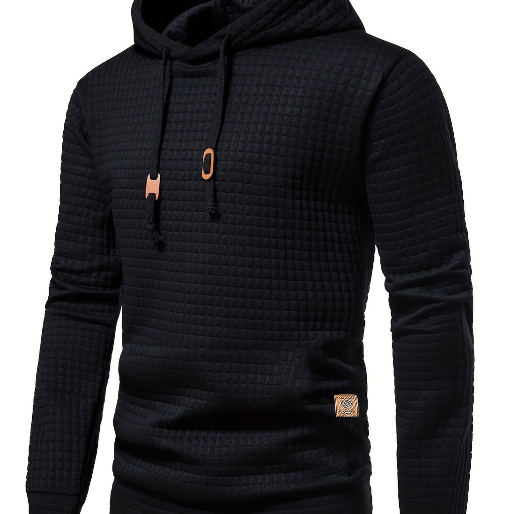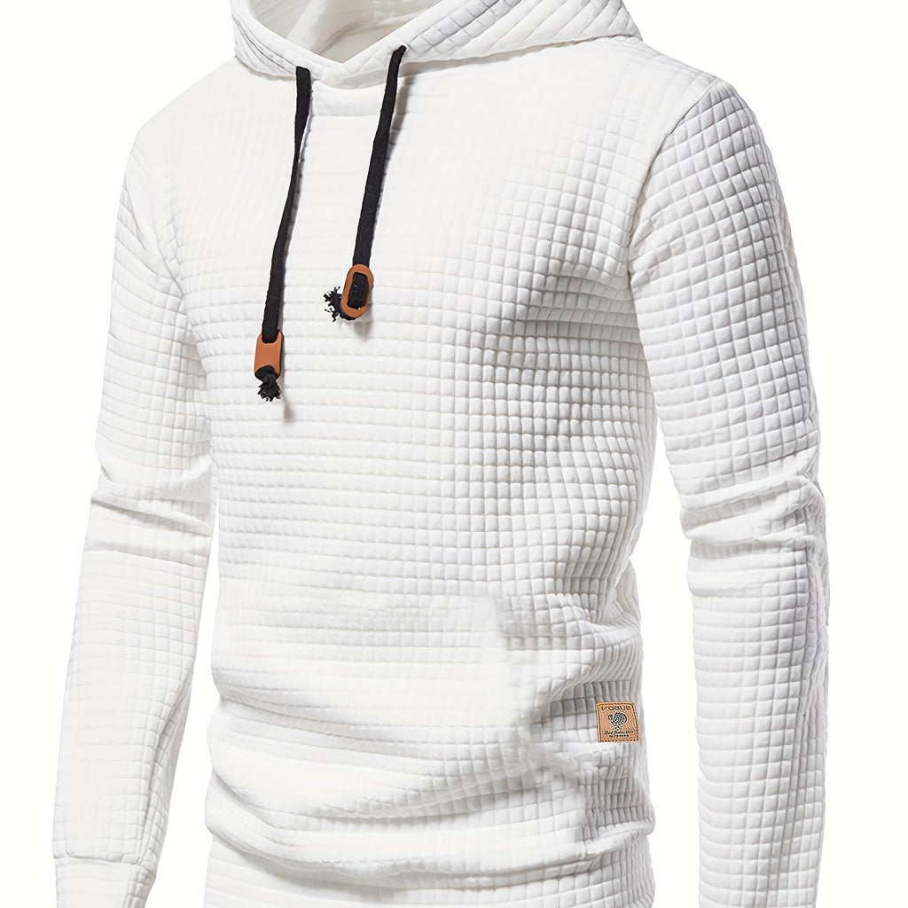 kkboxly Waffle Pattern Solid Hoodie, Cool Hoodies For Men, Men's Casual Pullover Hooded Sweatshirt With Kangaroo Pocket Streetwear For Winter Fall, As Gifts
