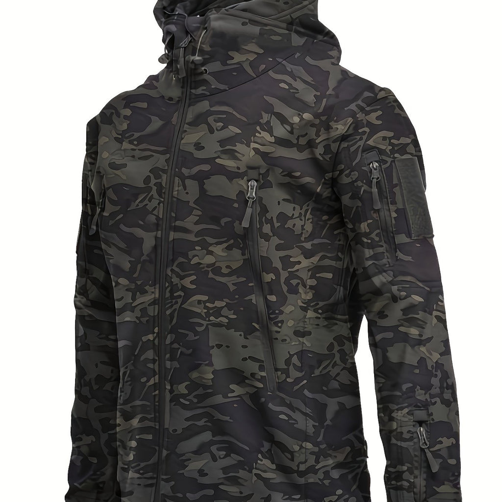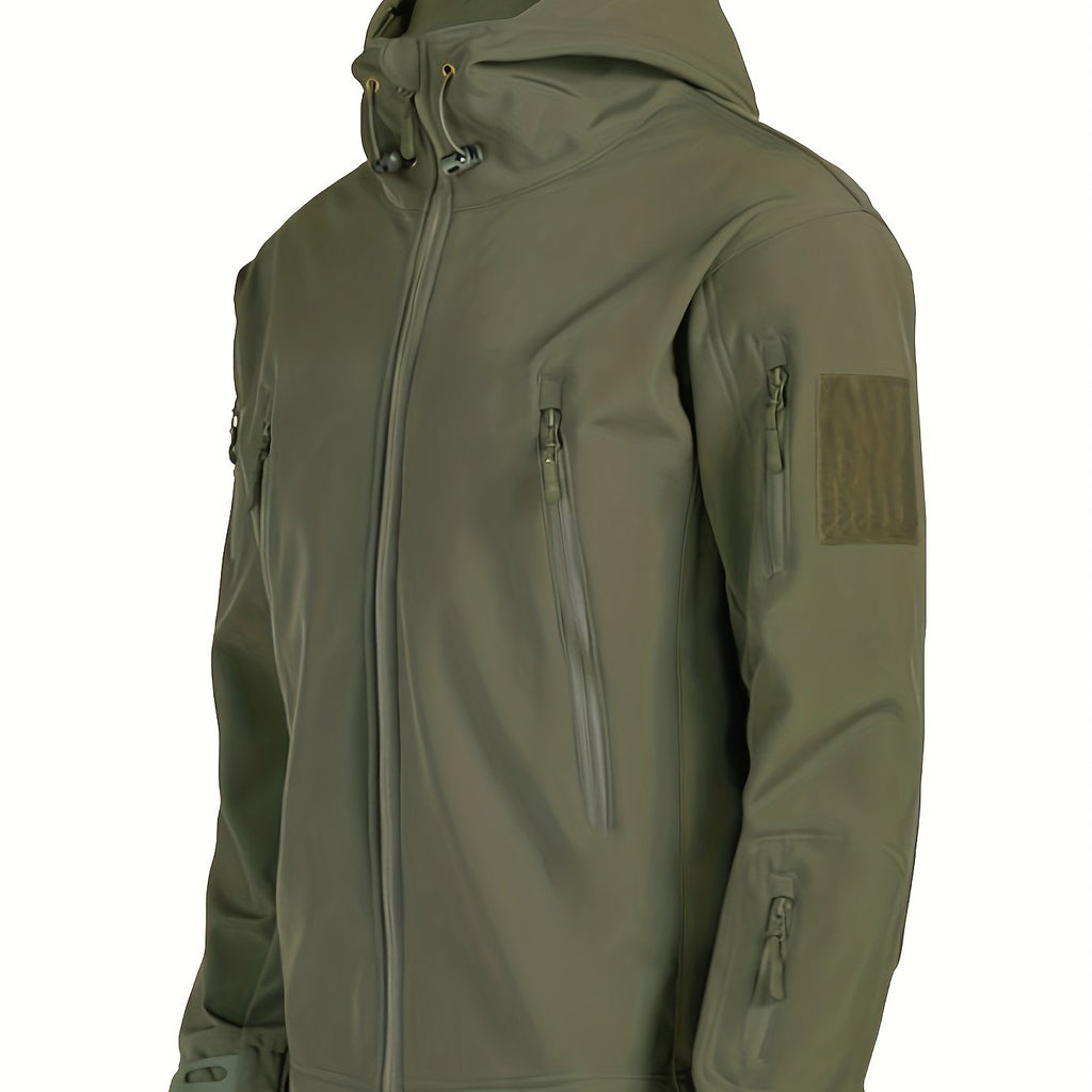kkboxly Warm Fleece Hooded Windbreaker Jacket, Men's Casual Zip Up Jacket Coat For Fall Winter Outdoor Hiking Camping Cycling
