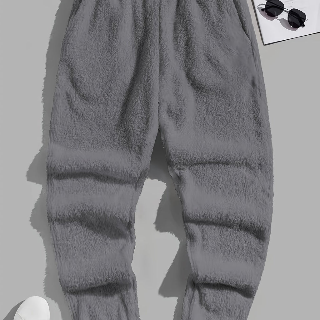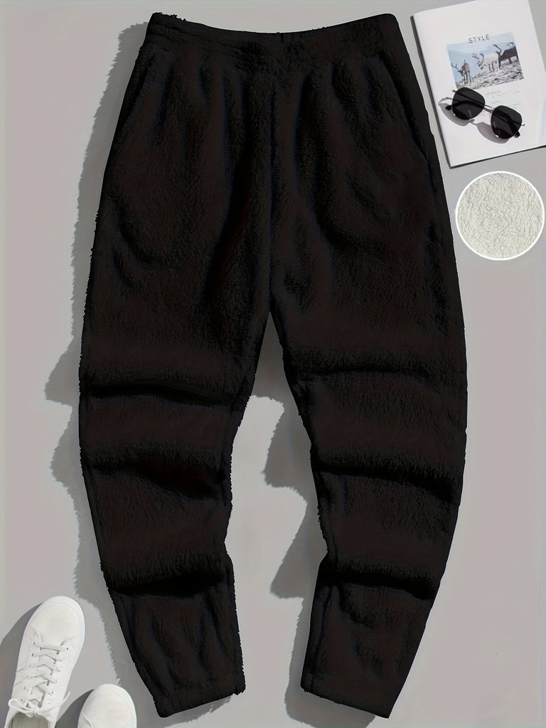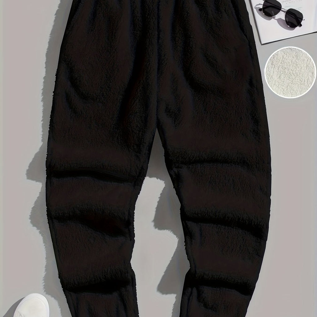 kkboxly Warm Fleece Joggers, Men's Casual Pants Sweatpants With Pockets For Fall Winter