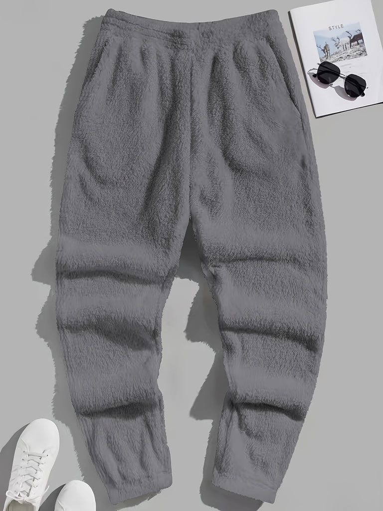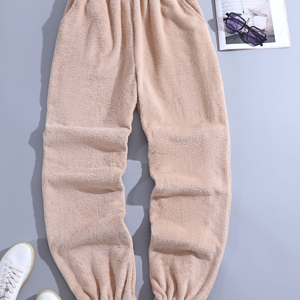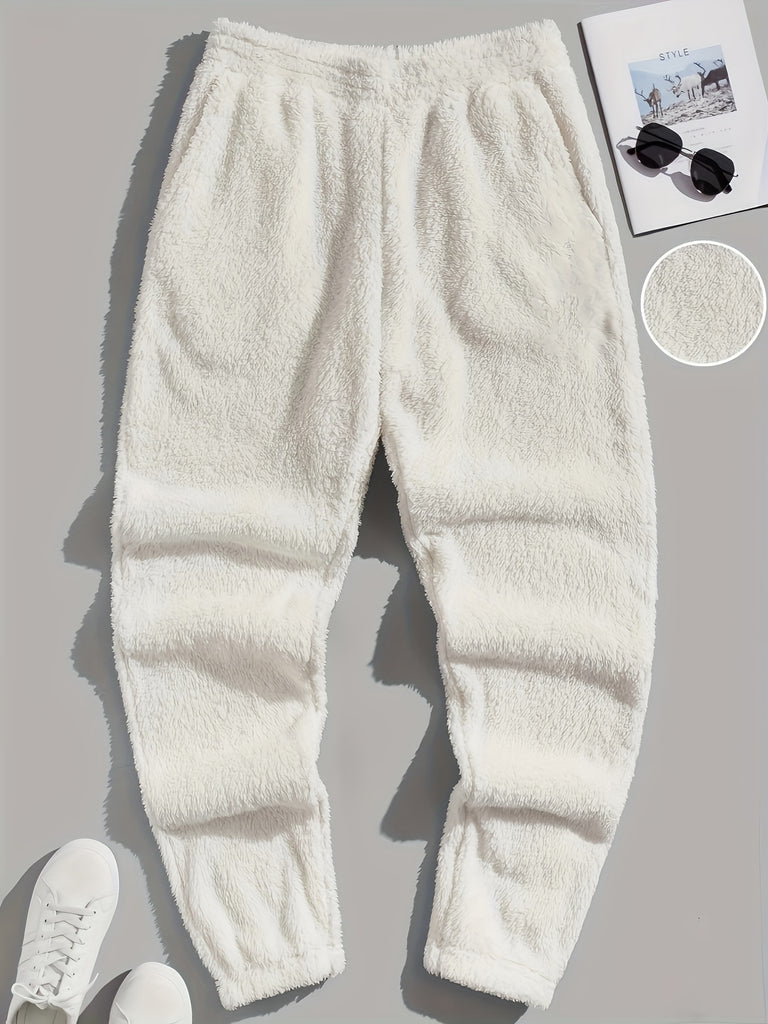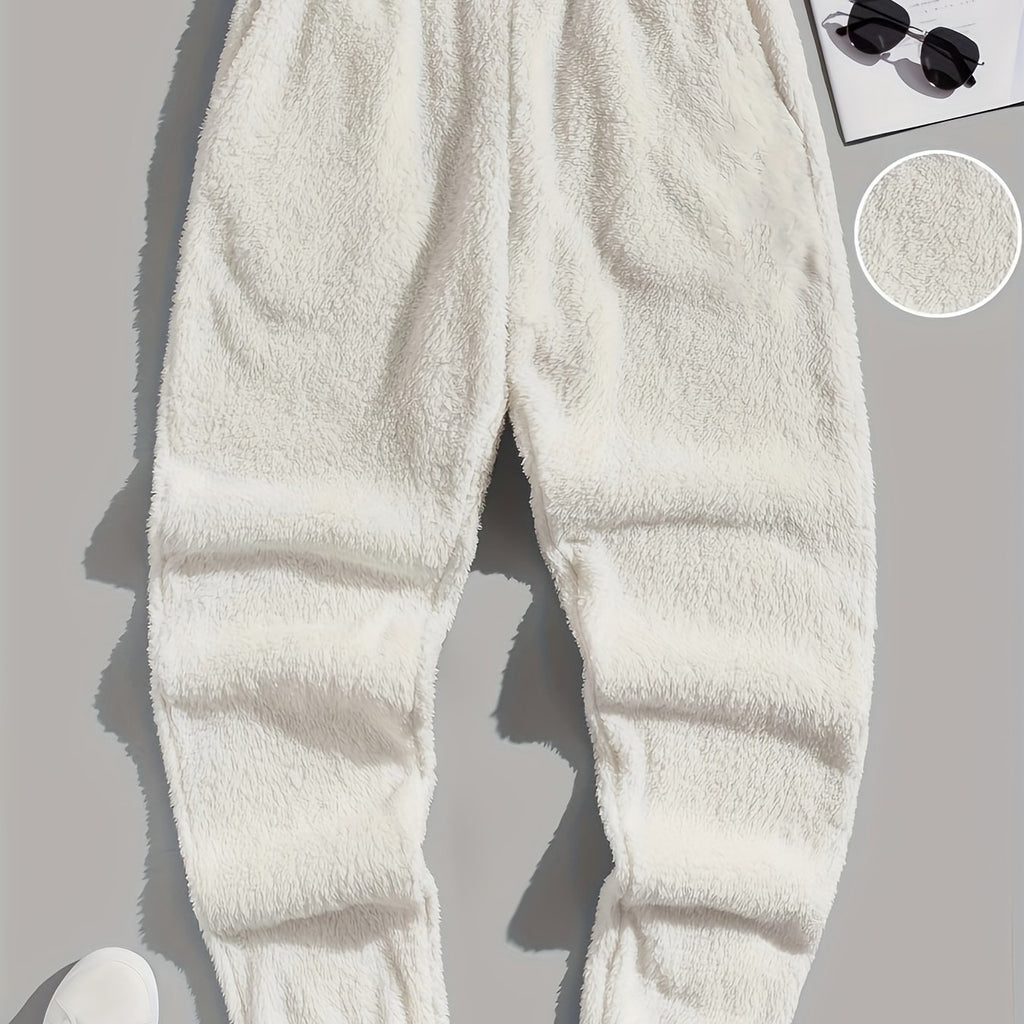 kkboxly Warm Fleece Joggers, Men's Casual Pants Sweatpants With Pockets For Fall Winter