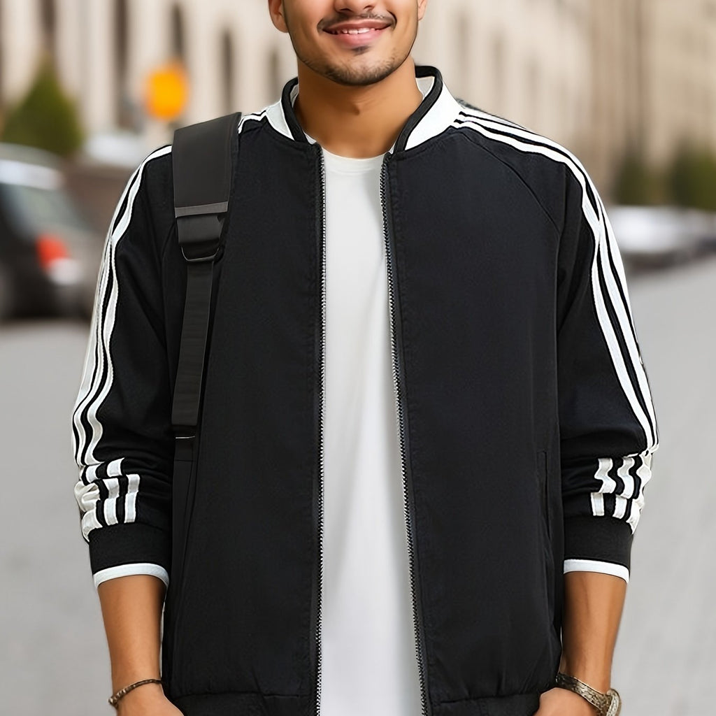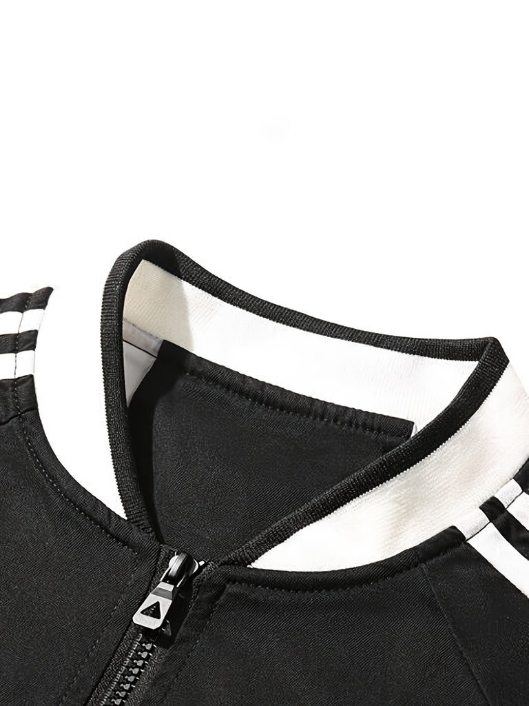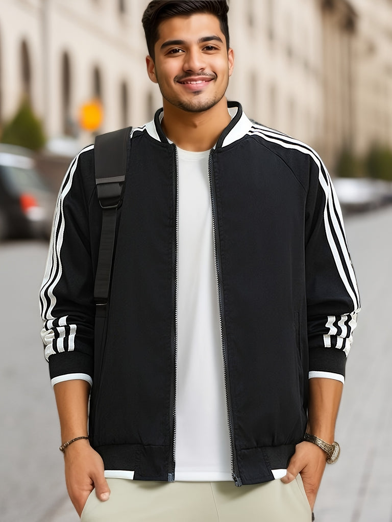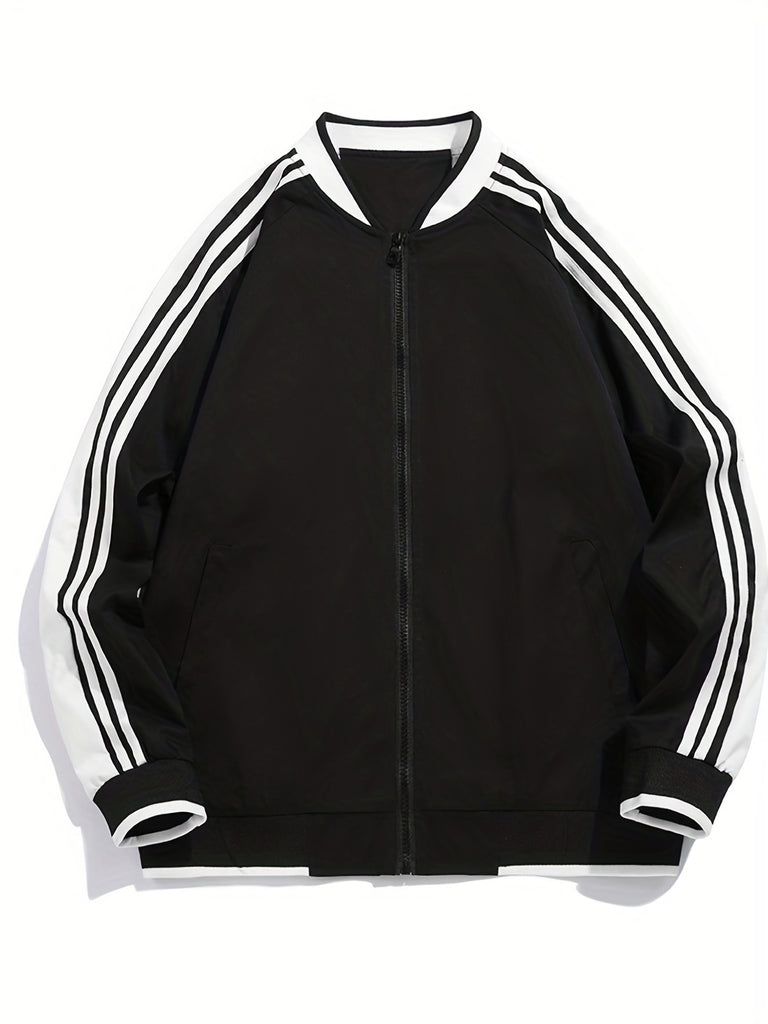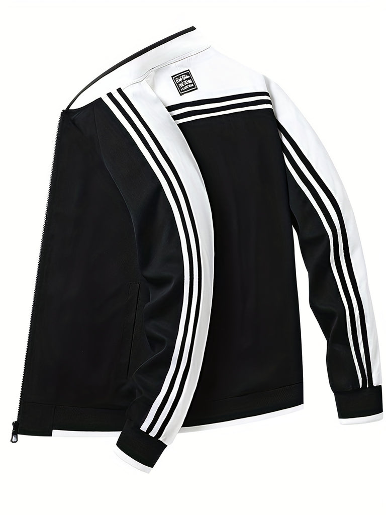 kkboxly Zipper Style Fashionable And Versatile Men's Baseball Collar Jacket With Black And White Splicing, Suitable For Spring And Autumn