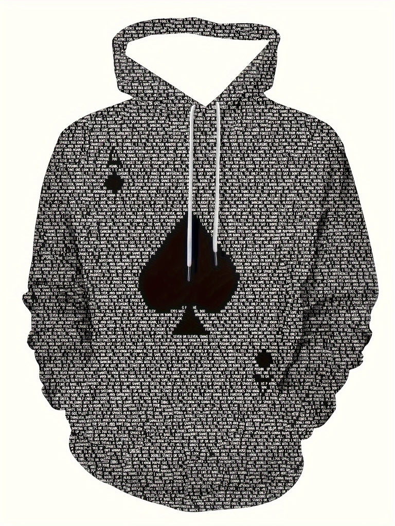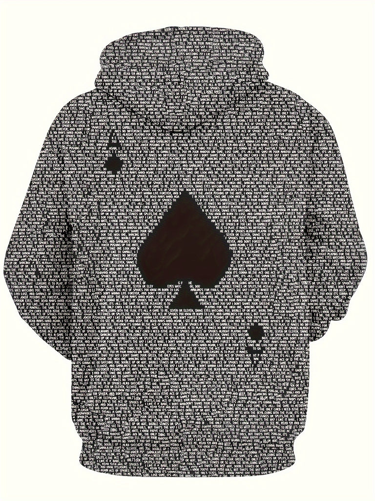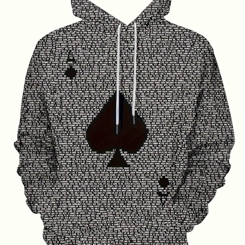 Men's Casual Poker Card 3D Print Hoodie, Chic Hooded Sweatshirt