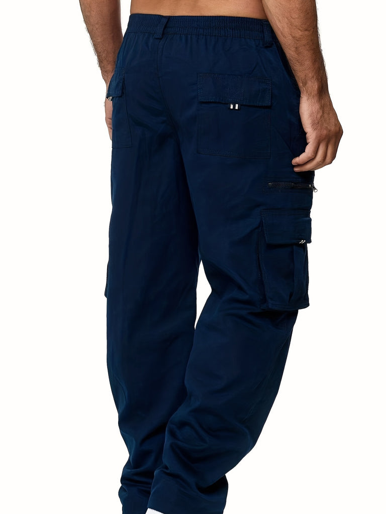 Men's Solid Multi Pocket Drawstring Cargo Pants, Men's Casual Cargo Pants For Spring Summer Autumn Outdoor