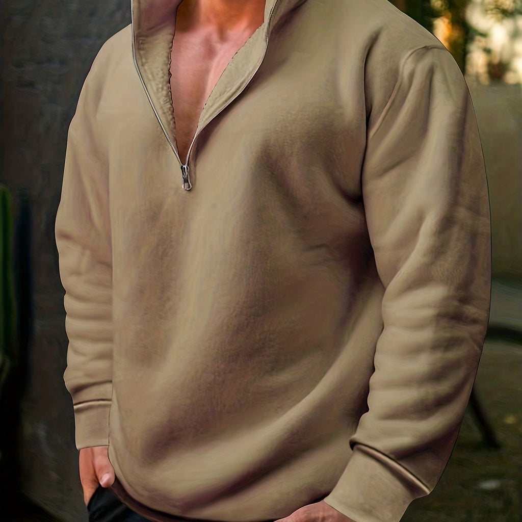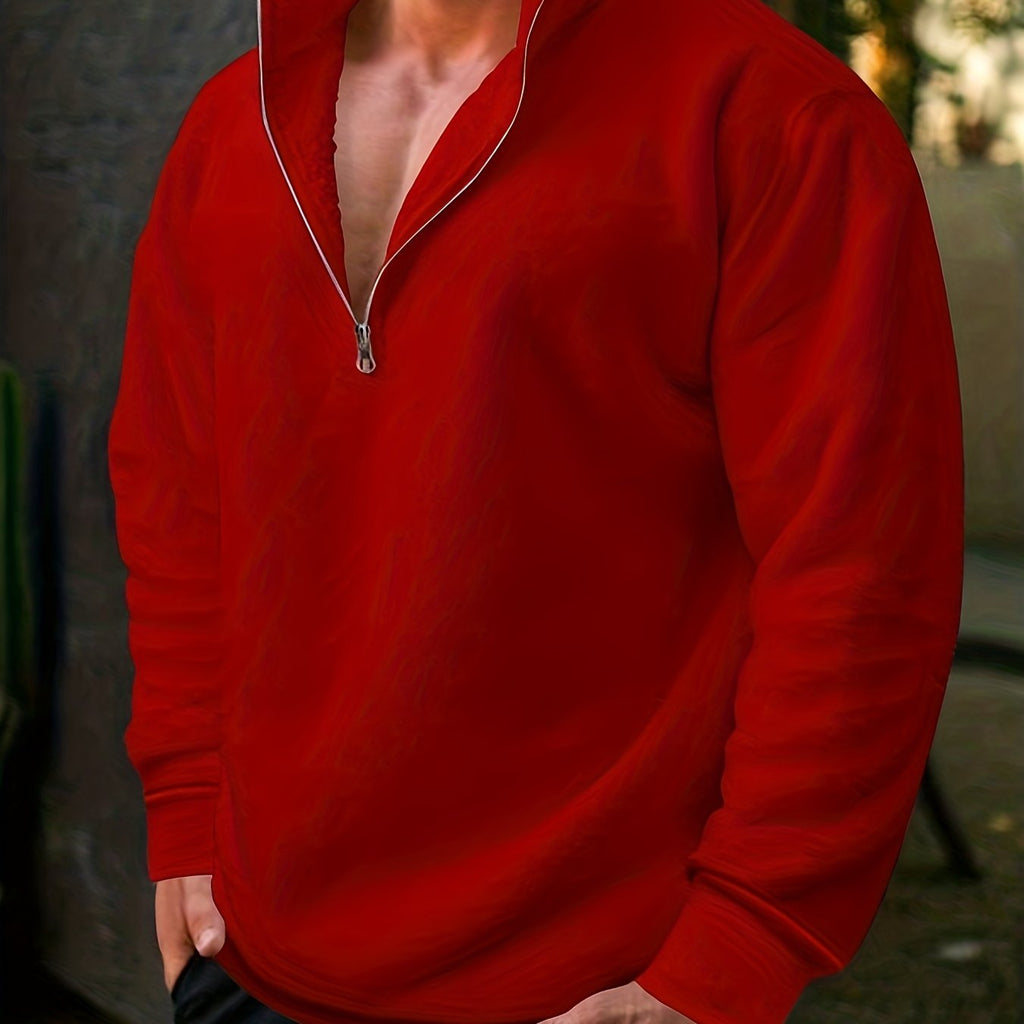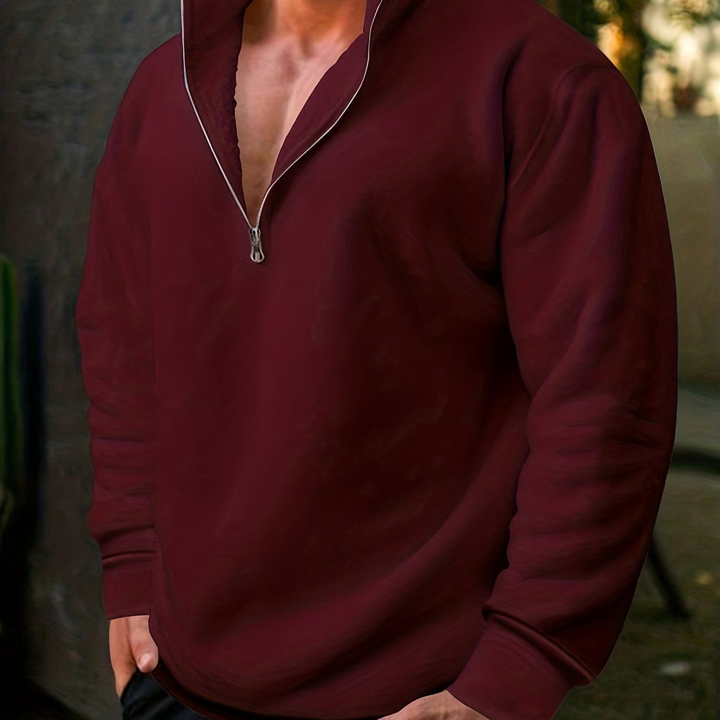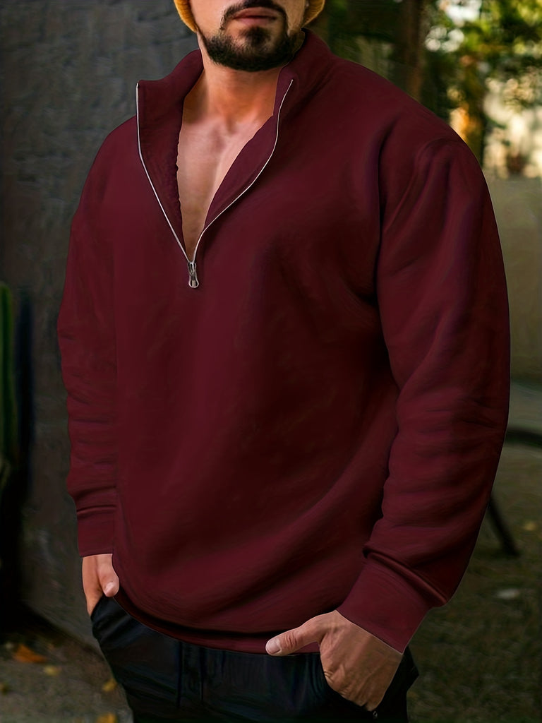 Men's Sweatshirt Pullover For Men Solid Zipper Collar Sweatshirts For Winter Fall Long Sleeve Tops