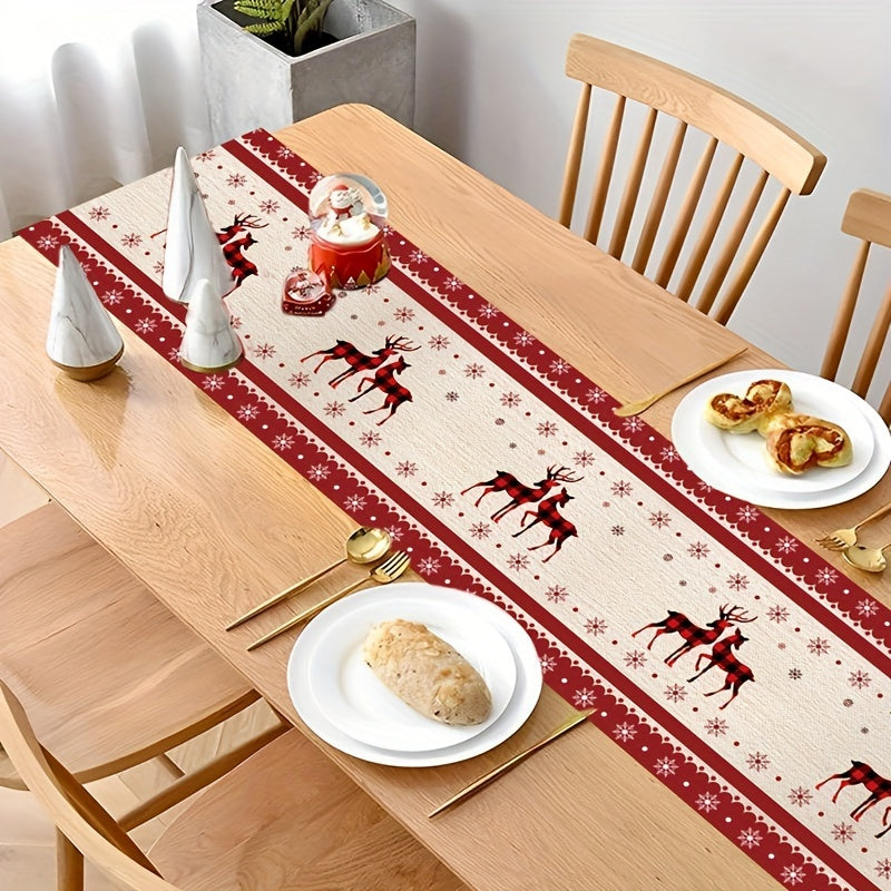 Merry Christmas Table Runner - 13"x70.8" Polyester with Red Elk Design, Perfect for Holiday Dining & Home Decor, Christmas Decor