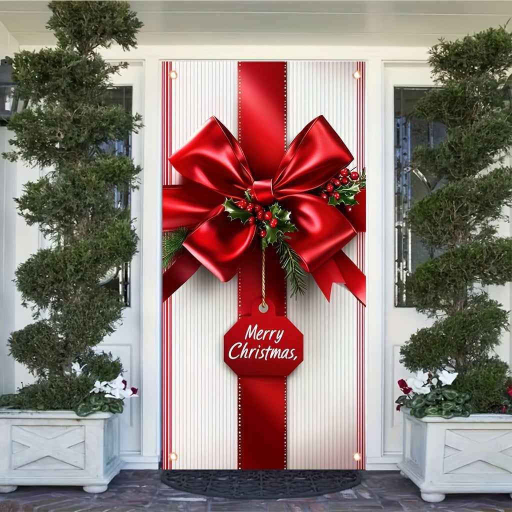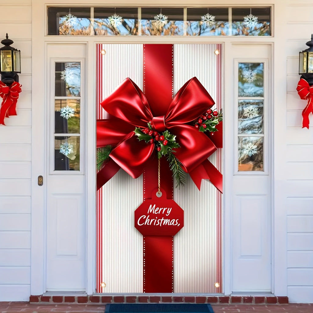 kkboxly Merry Christmas Welcome Banner - 35x70 Inch Polyester Striped Front Door Porch Decoration, Classic Rectangular Hanging Sign for Holiday Home & Party Decor Welcome Home Decorations