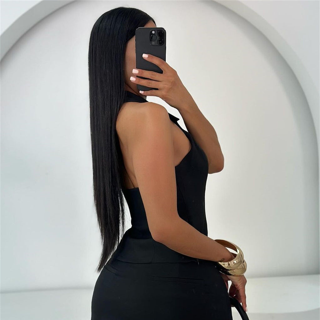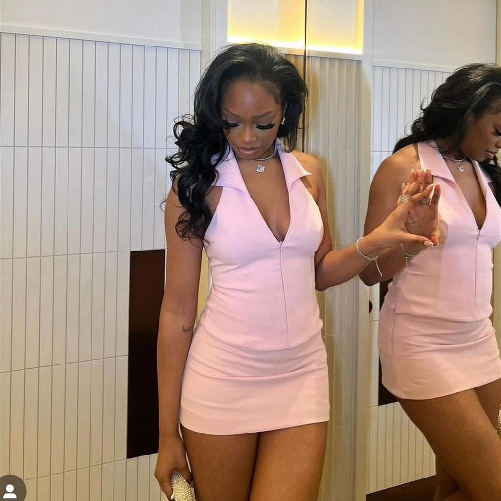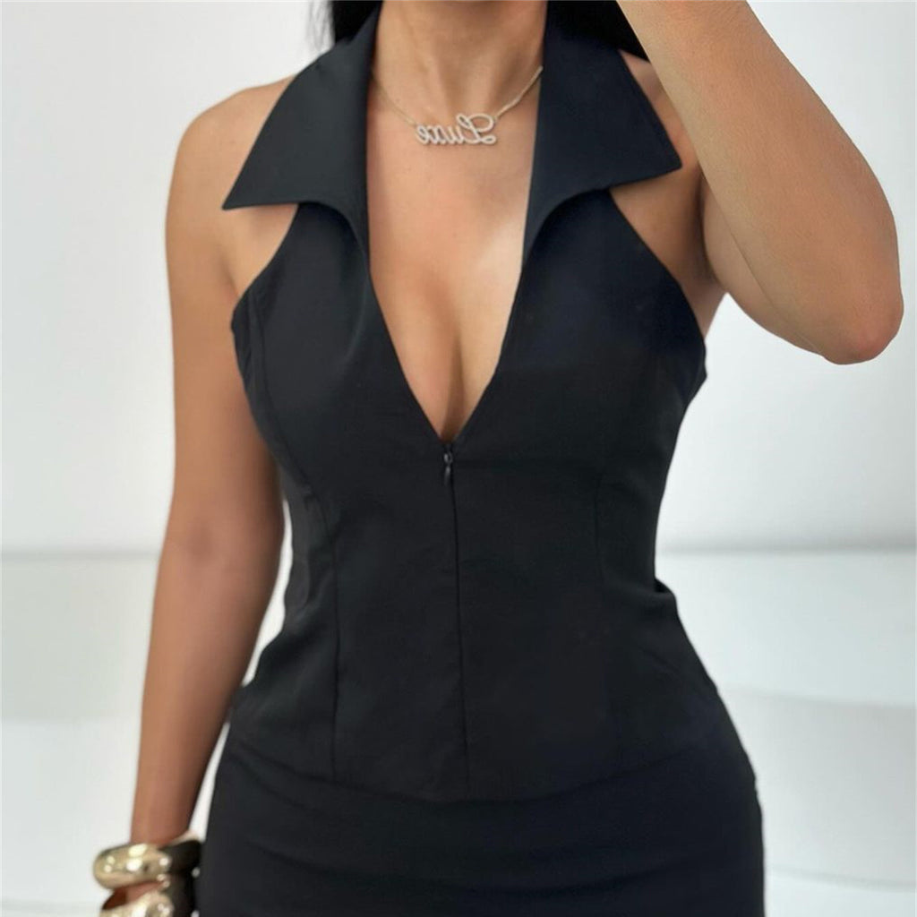 New new fashionable retro solid color slim backless sexy zipper lapel short vest shorts set
