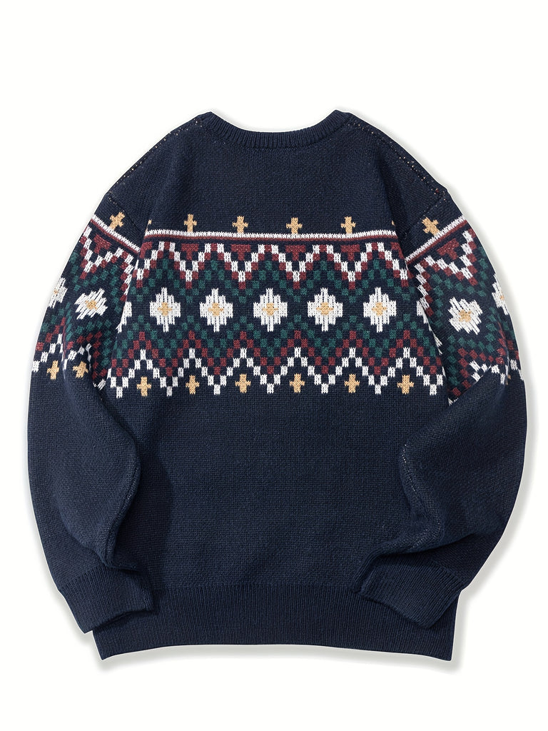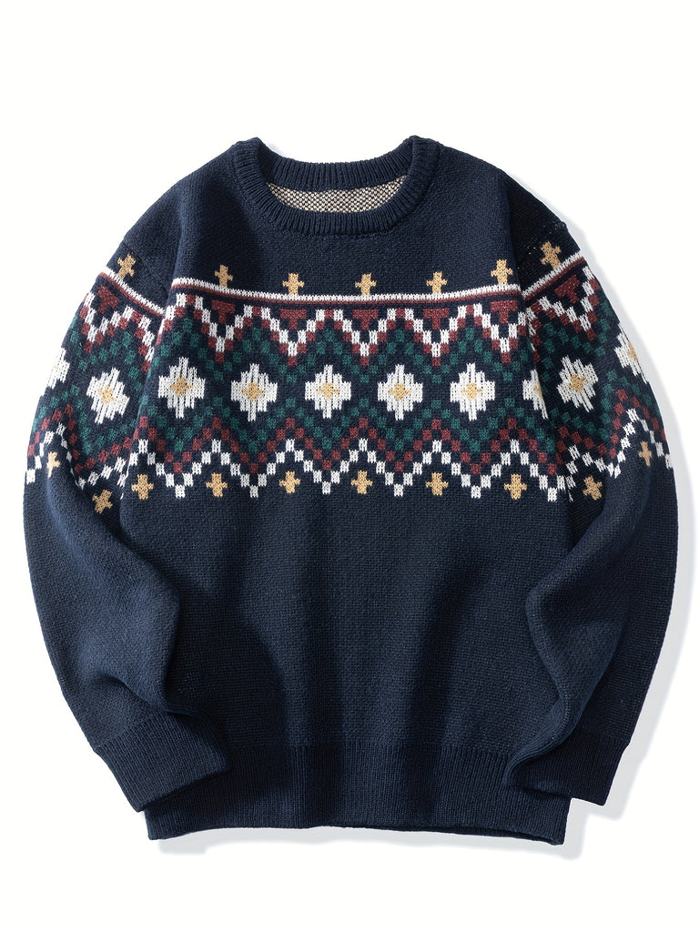 Plus Size Men's Fashion Argyle Sweater For Spring/autumn/winter, Long-sleeved Knit Pullover Sweater