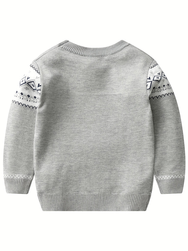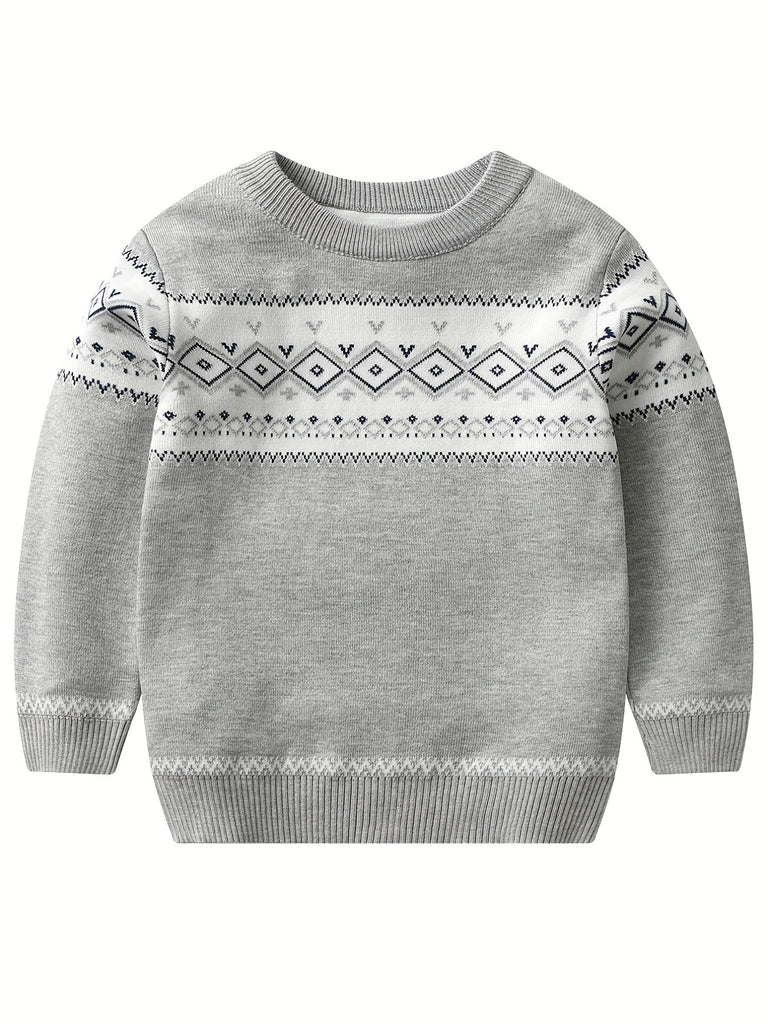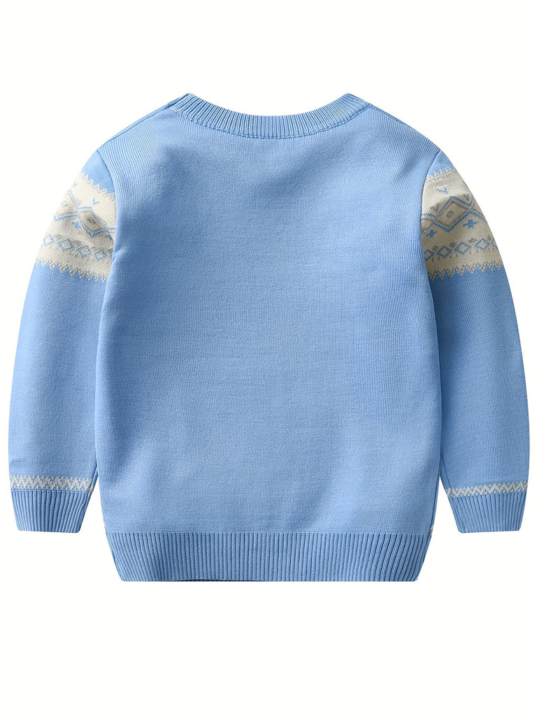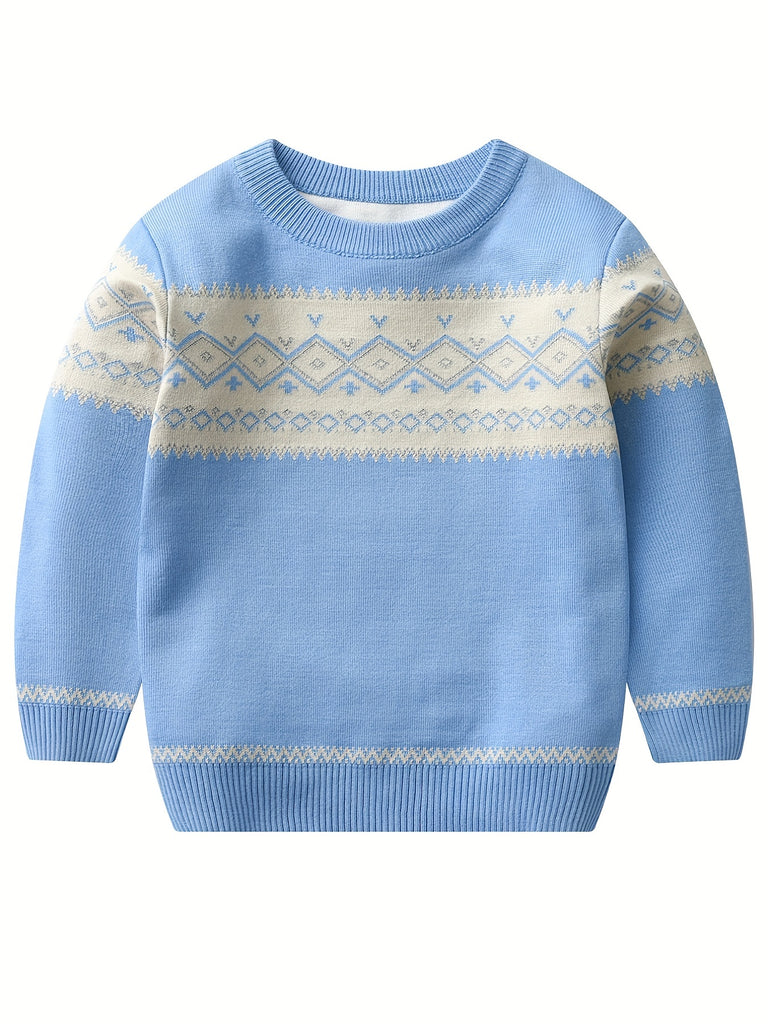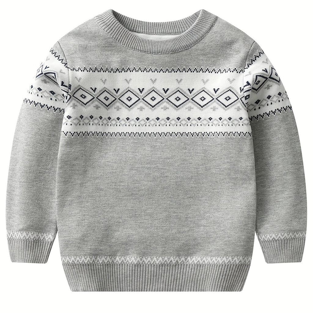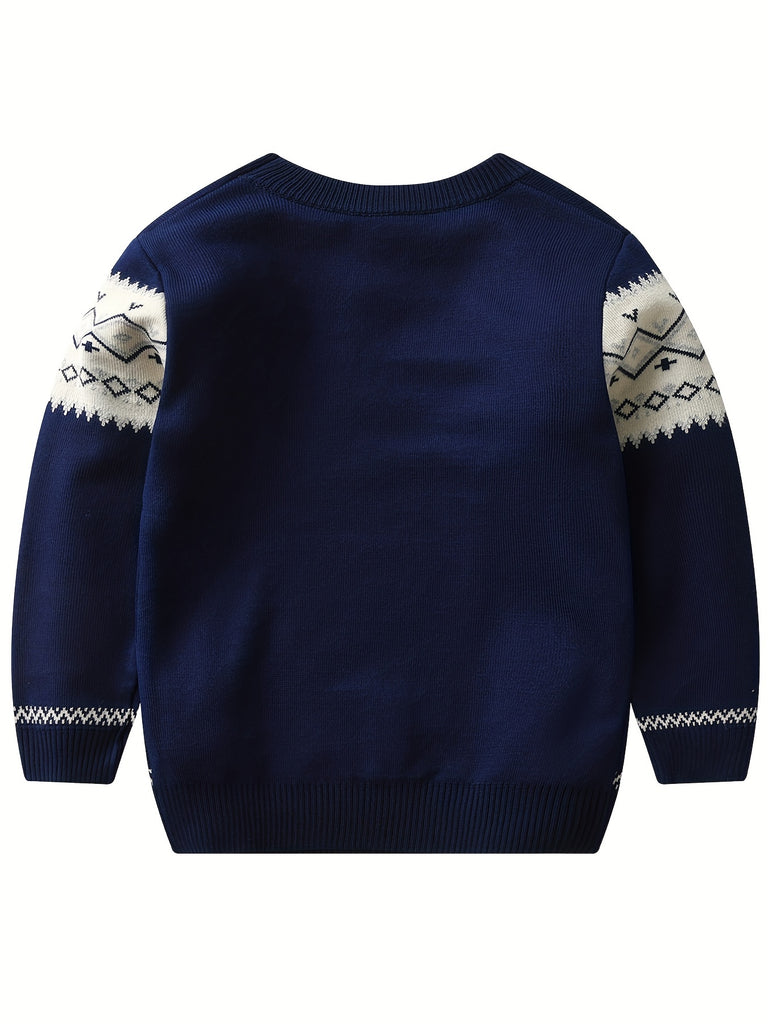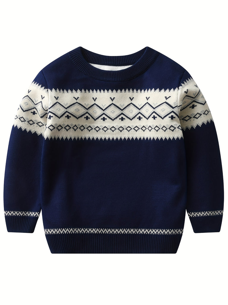 Retro Geometric Pattern Boys Casual Color Block Knitted Sweater For Fall Winter, Gift For Kids