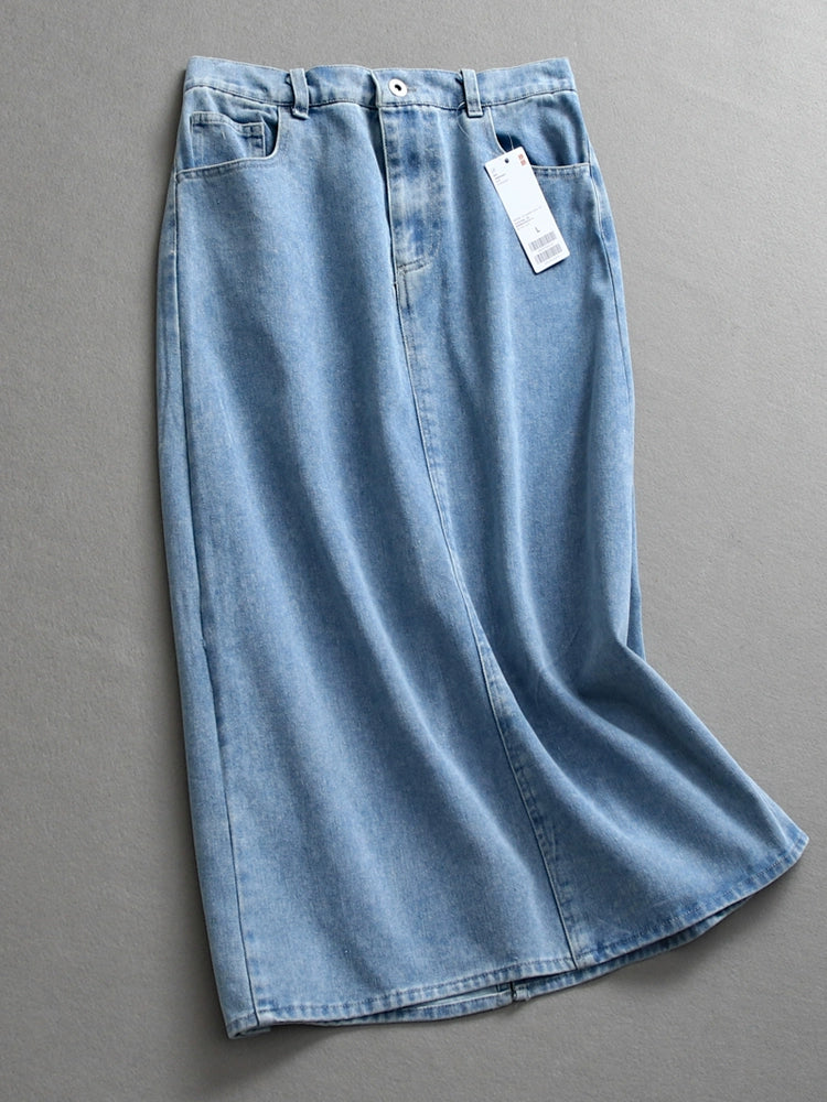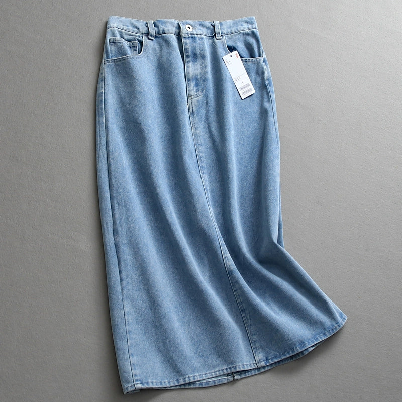 Solid color washed white polished semi-elastic waist high waist thin hip skirt medium and long skirt versatile denim skirt skirt skirt L378