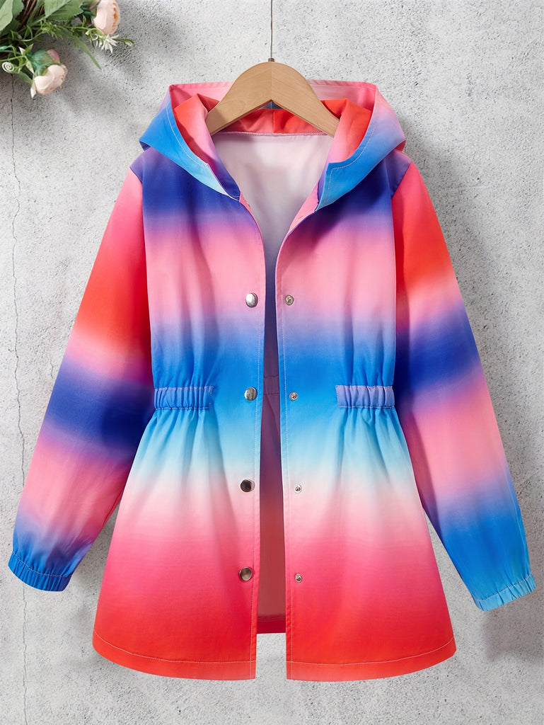 Tie Dye Long Sleeve Zip Front Hooded Jacket For Girls Spring Fall Gift