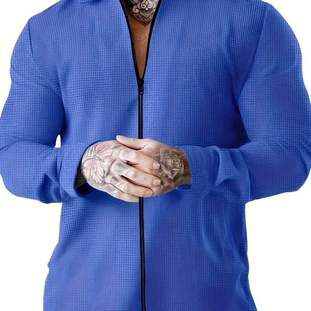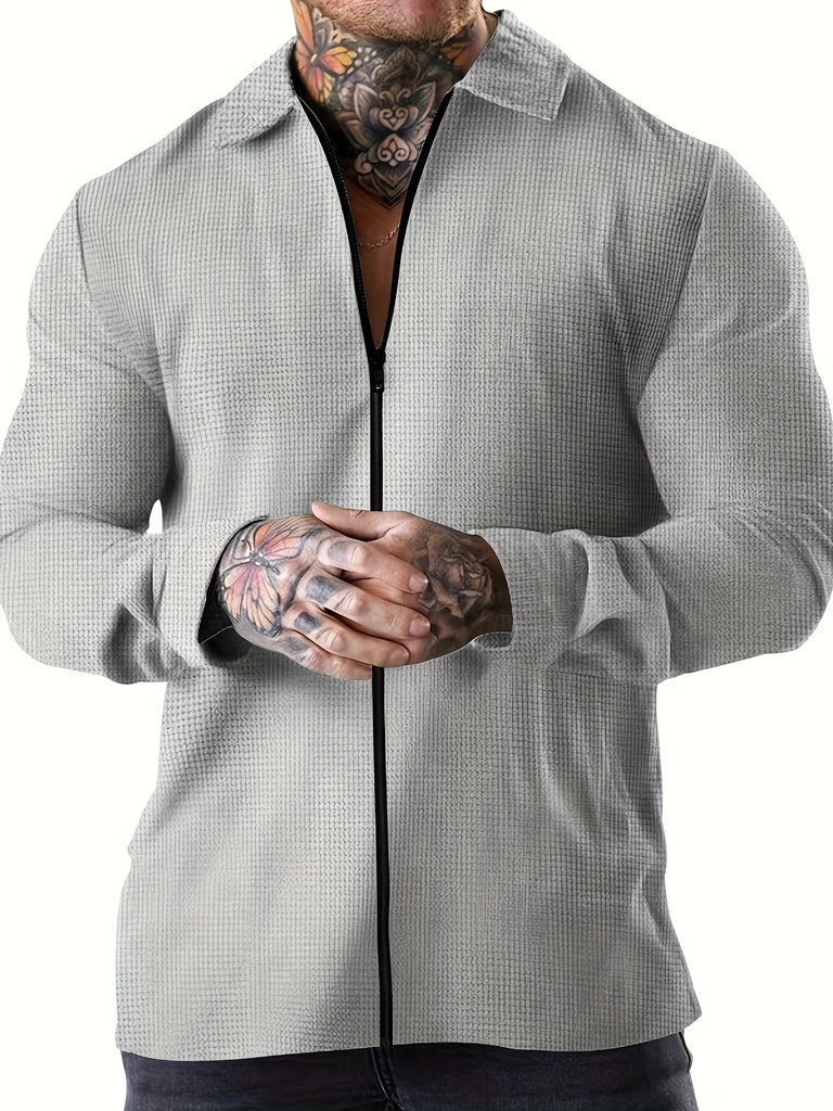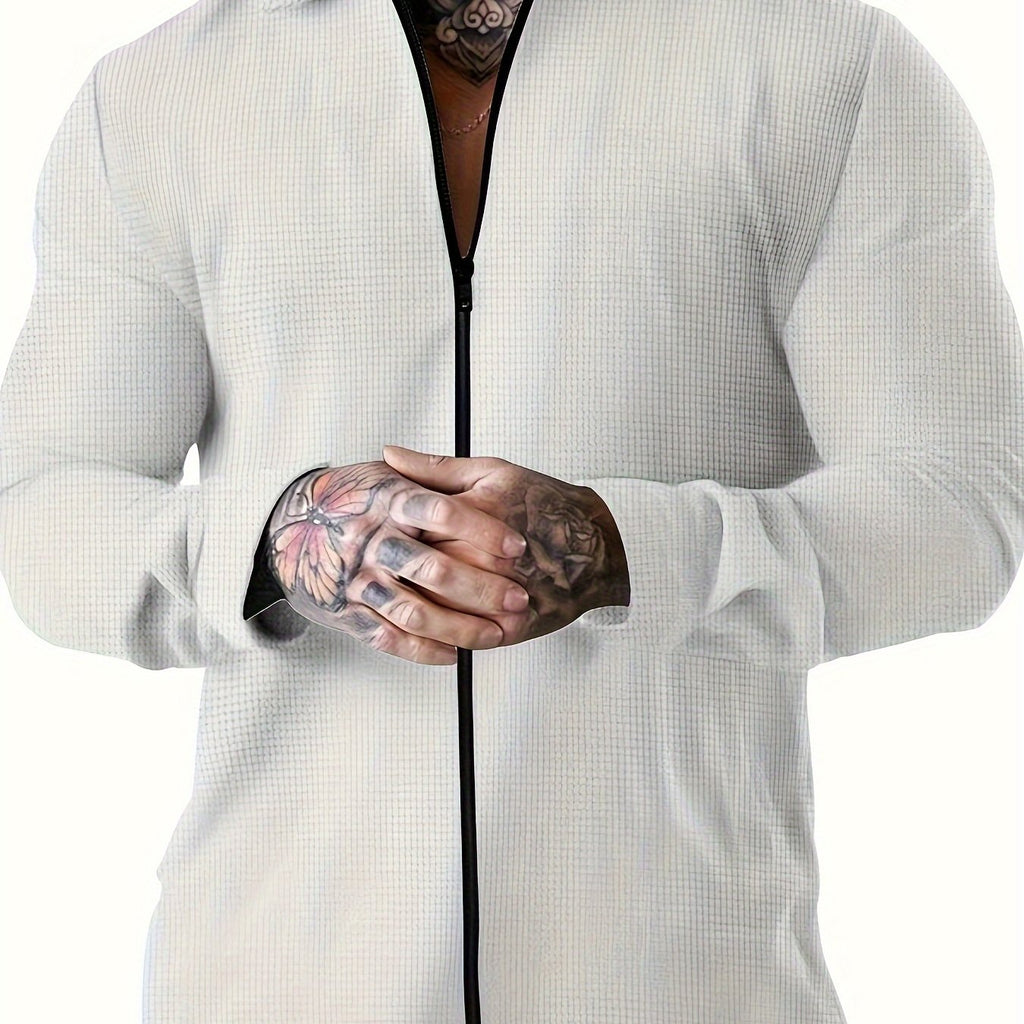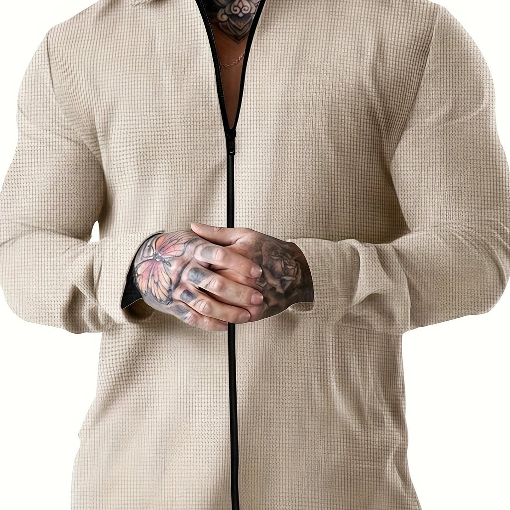 Vintage Waffle Pattern Jacket, Men's Casual Zip Up Jacket Coat College Hipster Windbreaker For Spring Fall