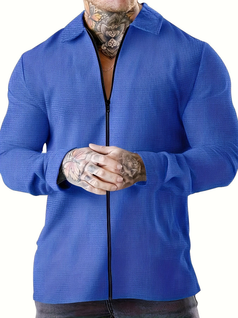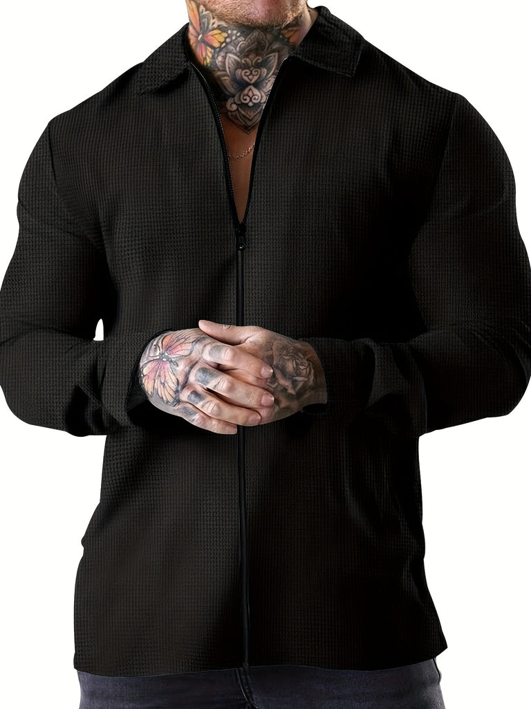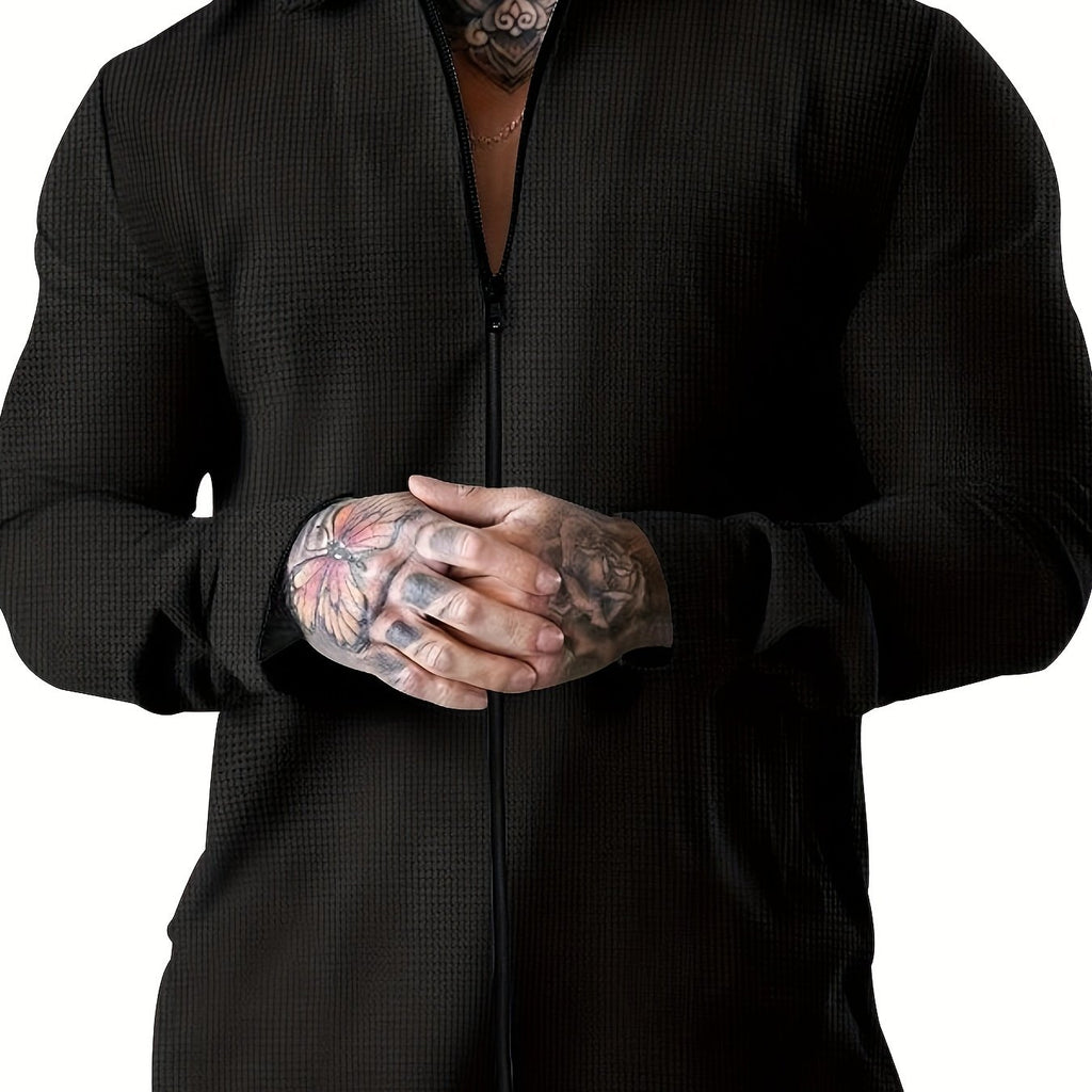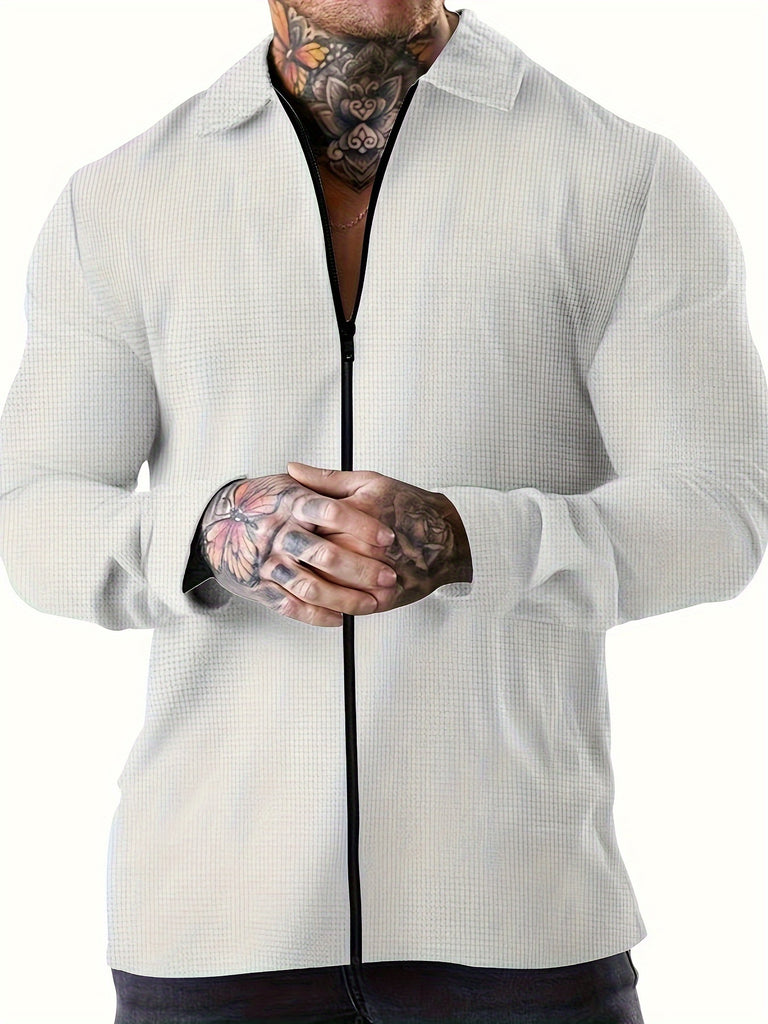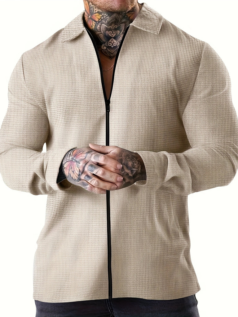 Vintage Waffle Pattern Jacket, Men's Casual Zip Up Jacket Coat College Hipster Windbreaker For Spring Fall